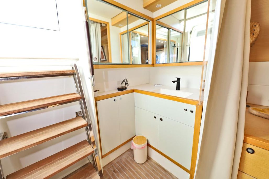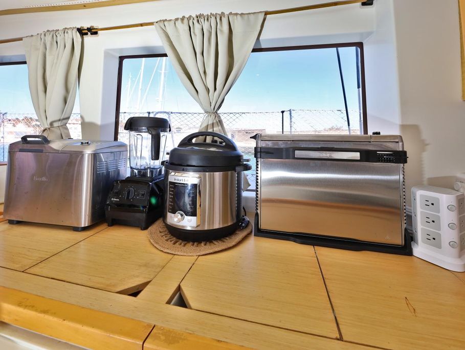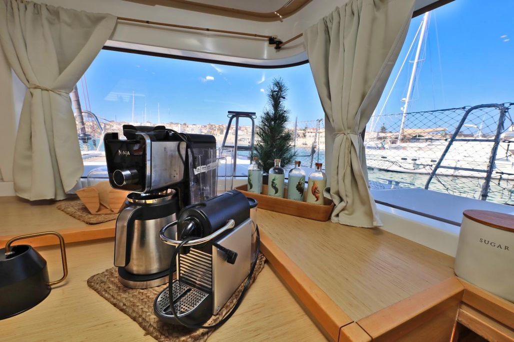 | Inside | Generator, Kaffeemaschine, Klimaanlage (ohne Landstrombedarf), Kühlschrank, Radio mit CD, TV, Watermaker, WC (elektr.) |