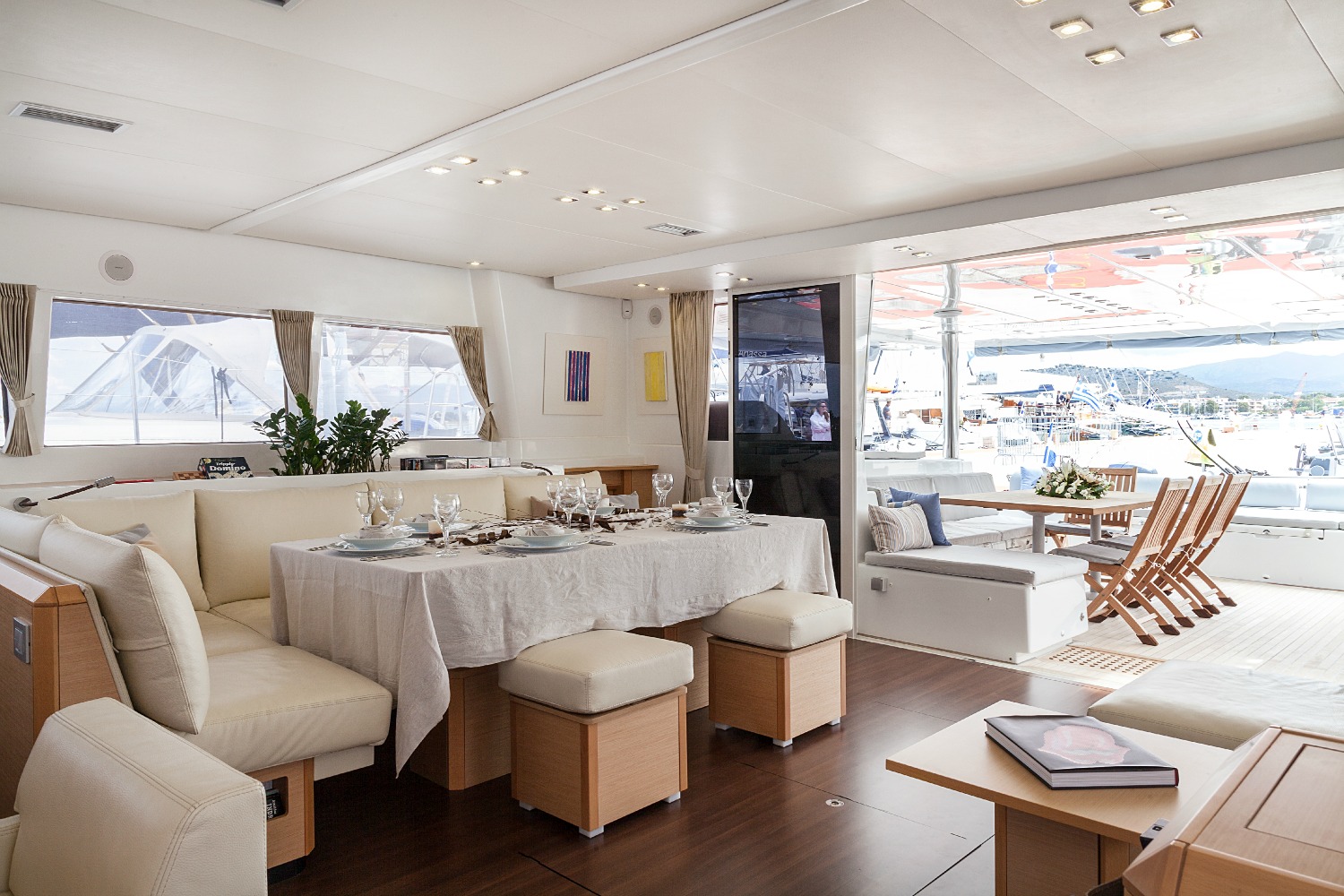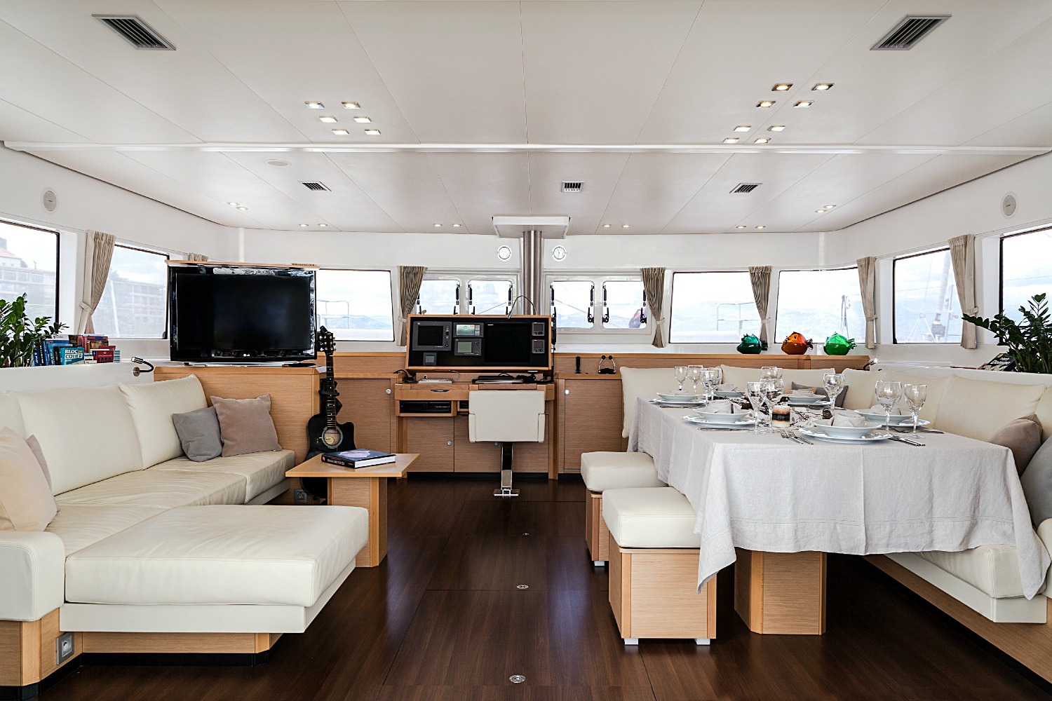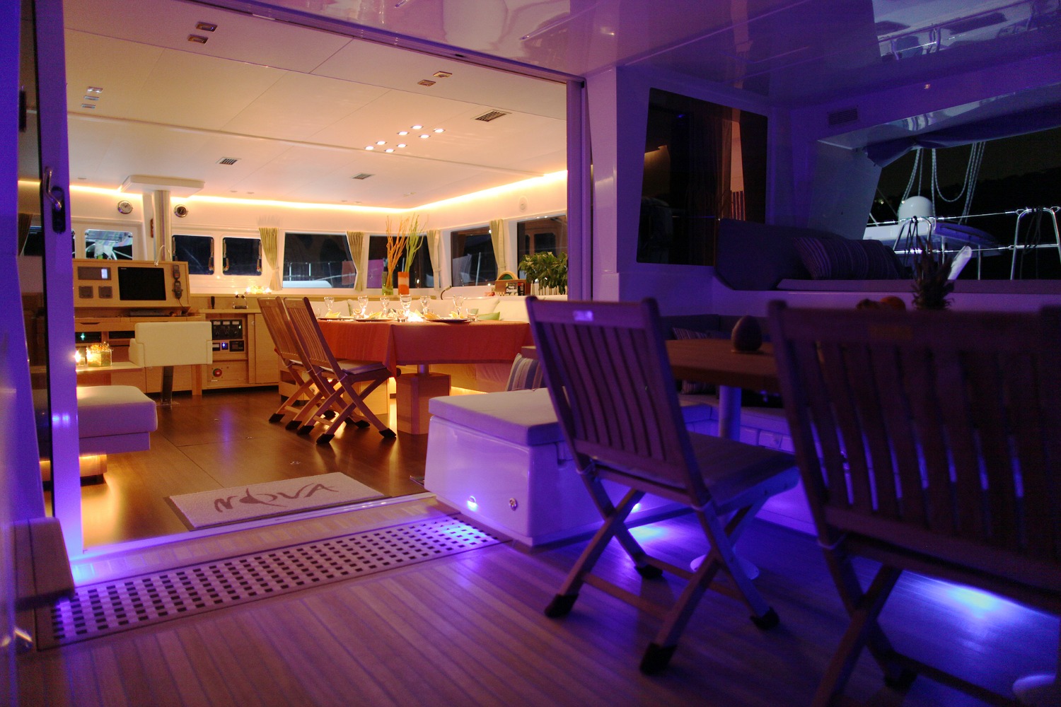 | Inside | 220V Steckdosen, Backofen, DVD-Player, Eisbox, Eiswürfelmaschine, Gefrierschrank, Generator, Geschirrspüler, Inverter 12V/220V, Klimaanlage (ohne Landstrombedarf), Kühlschrank, Ladegerät, Mikrowelle, Pantryausstattung, TV, Warmwasser, Watermaker |