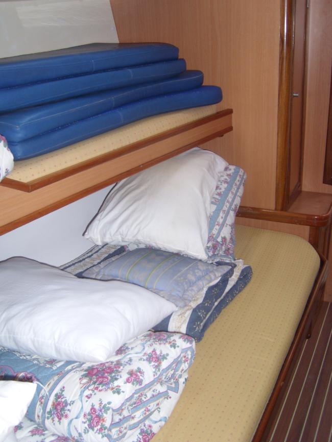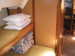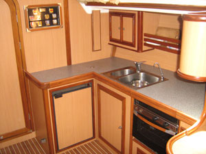 | Safety | Bootsmannstuhl, Bordapotheke, Bordwerkzeug, elektr. Bilgepumpe, Feststoffschwimmwesten, Feuerlöscher, Flaggen, Navigationslichter, Nebelhorn, Notpinne, Notsignale, Radarreflektor, Reparaturset für Beiboot, Rettungsinsel, Sicherheitsgurt, UKW-Funk |