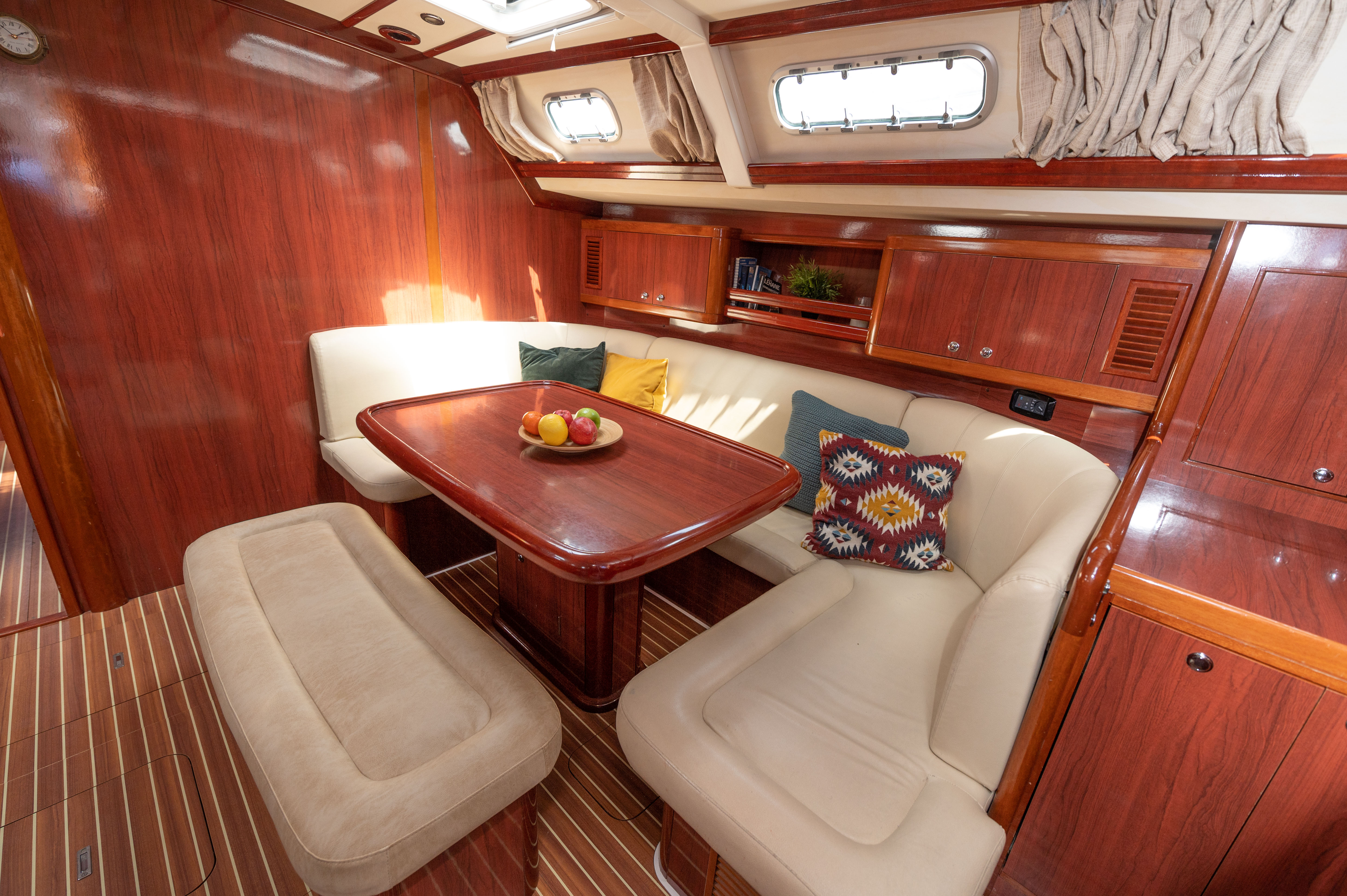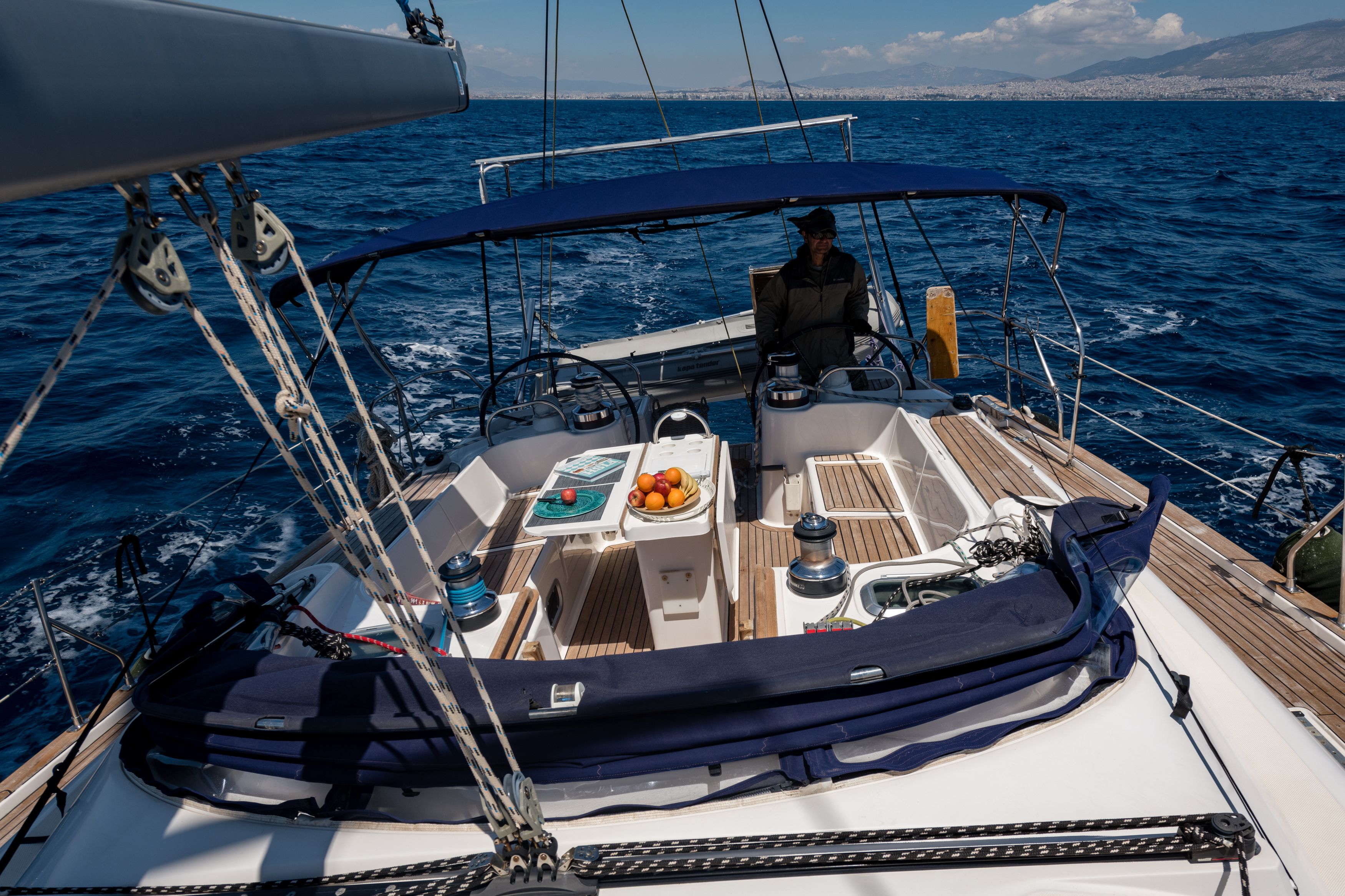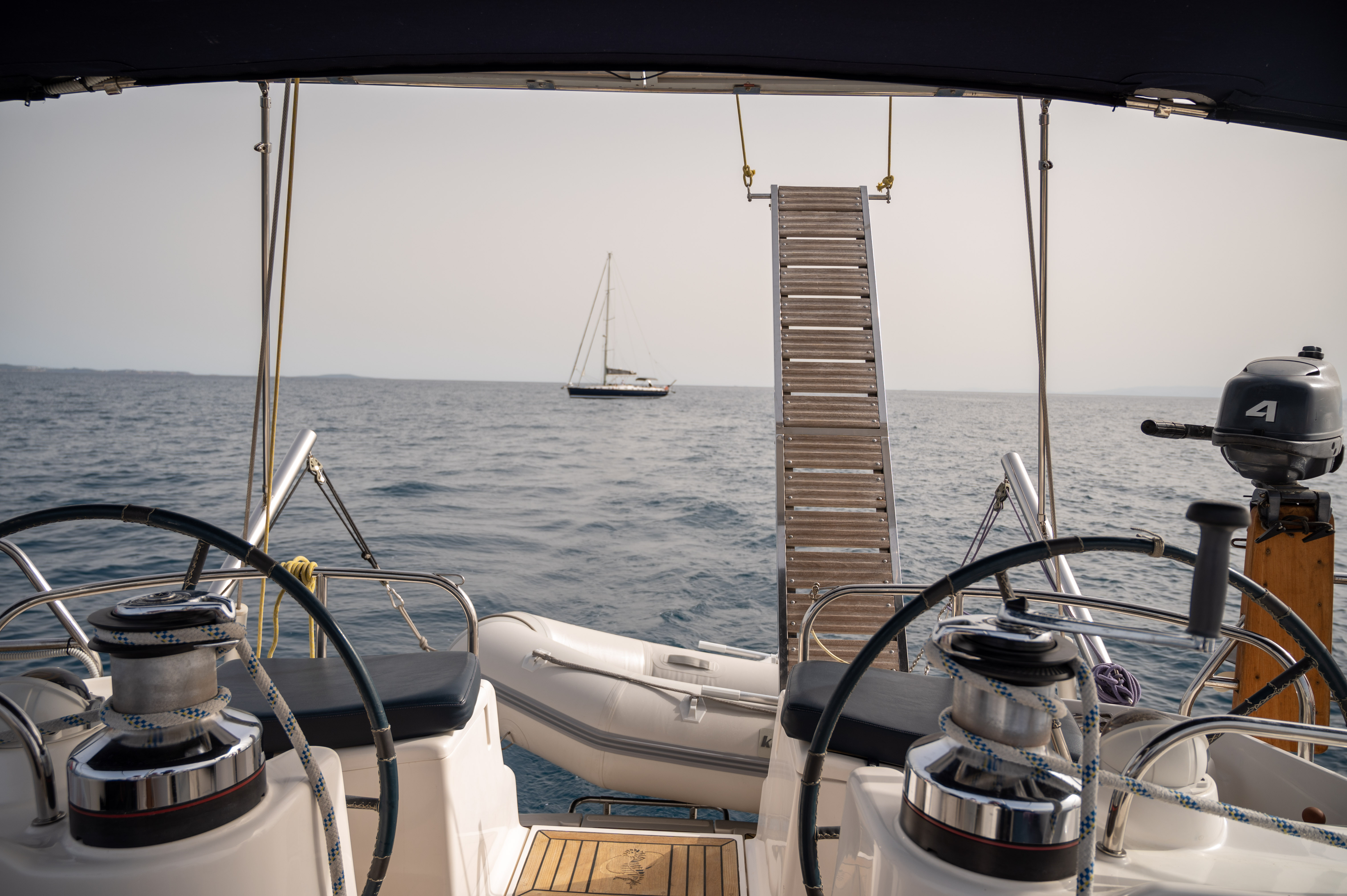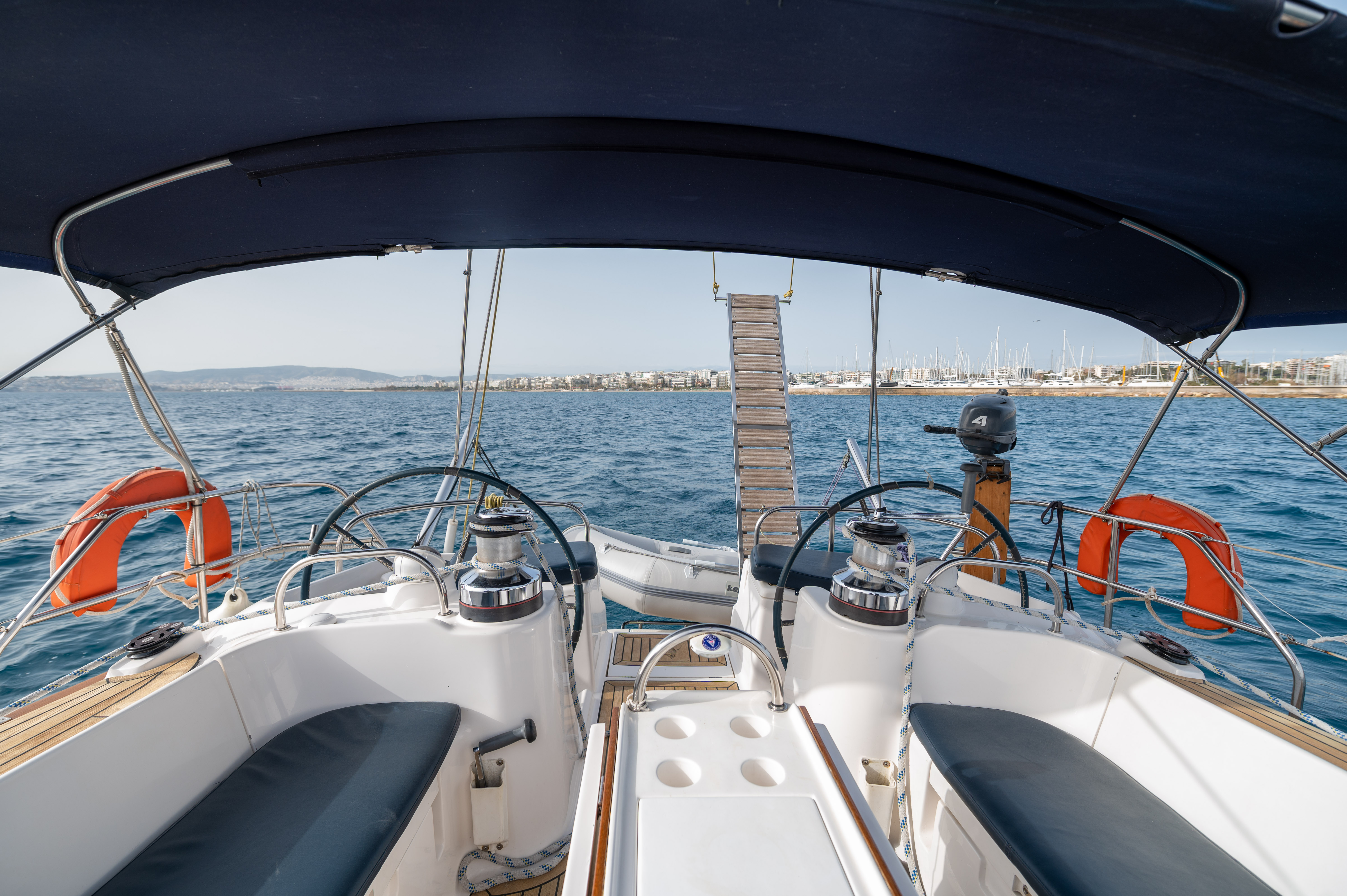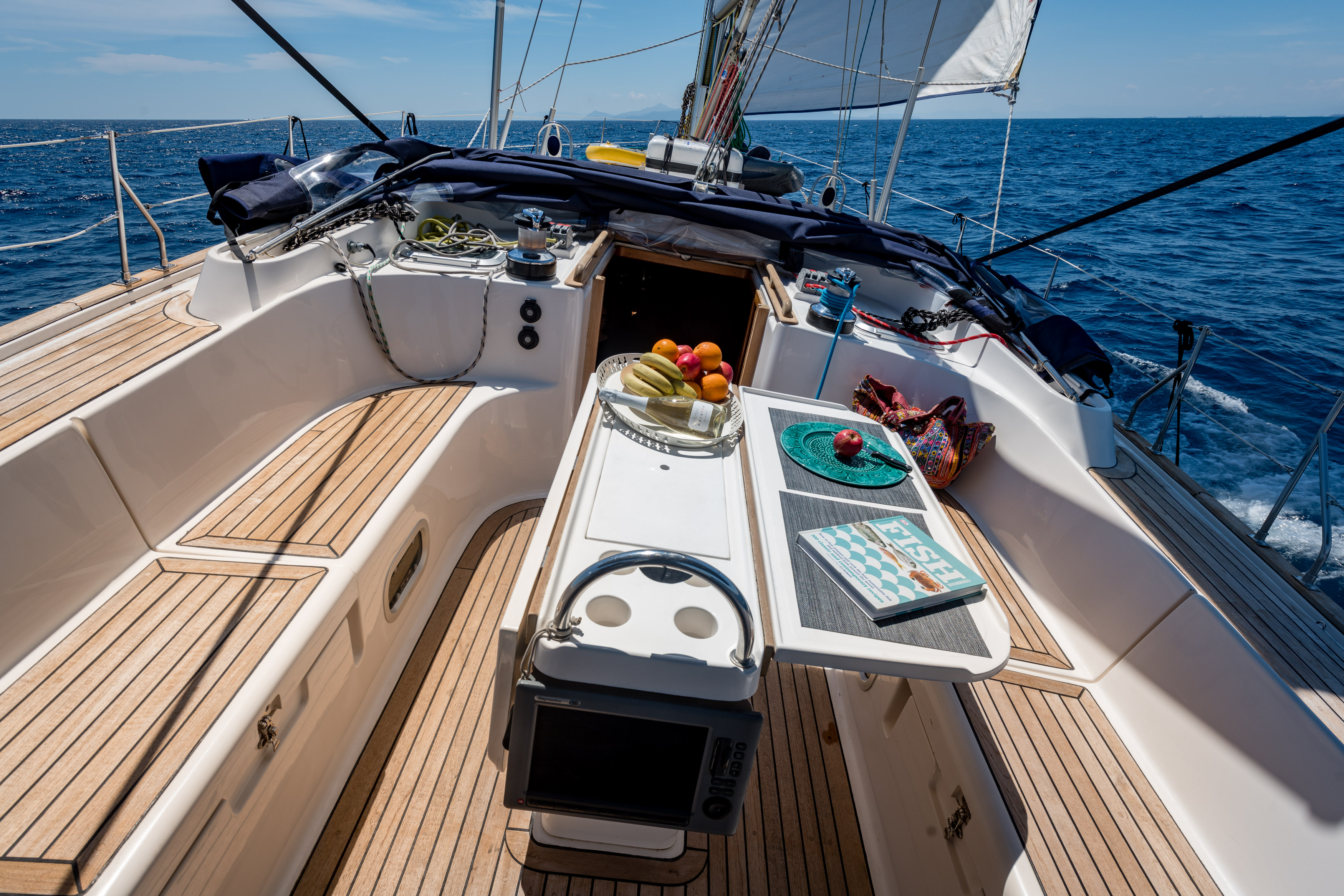 | Outside | 220 V-Landanschluss, Biminitop, Cockpitdusche, Cockpitlautsprecher, Cockpittisch mit Eisbox, elektr. Ankerwinsch, Solaranlage, Sprayhood, Teakdeck |