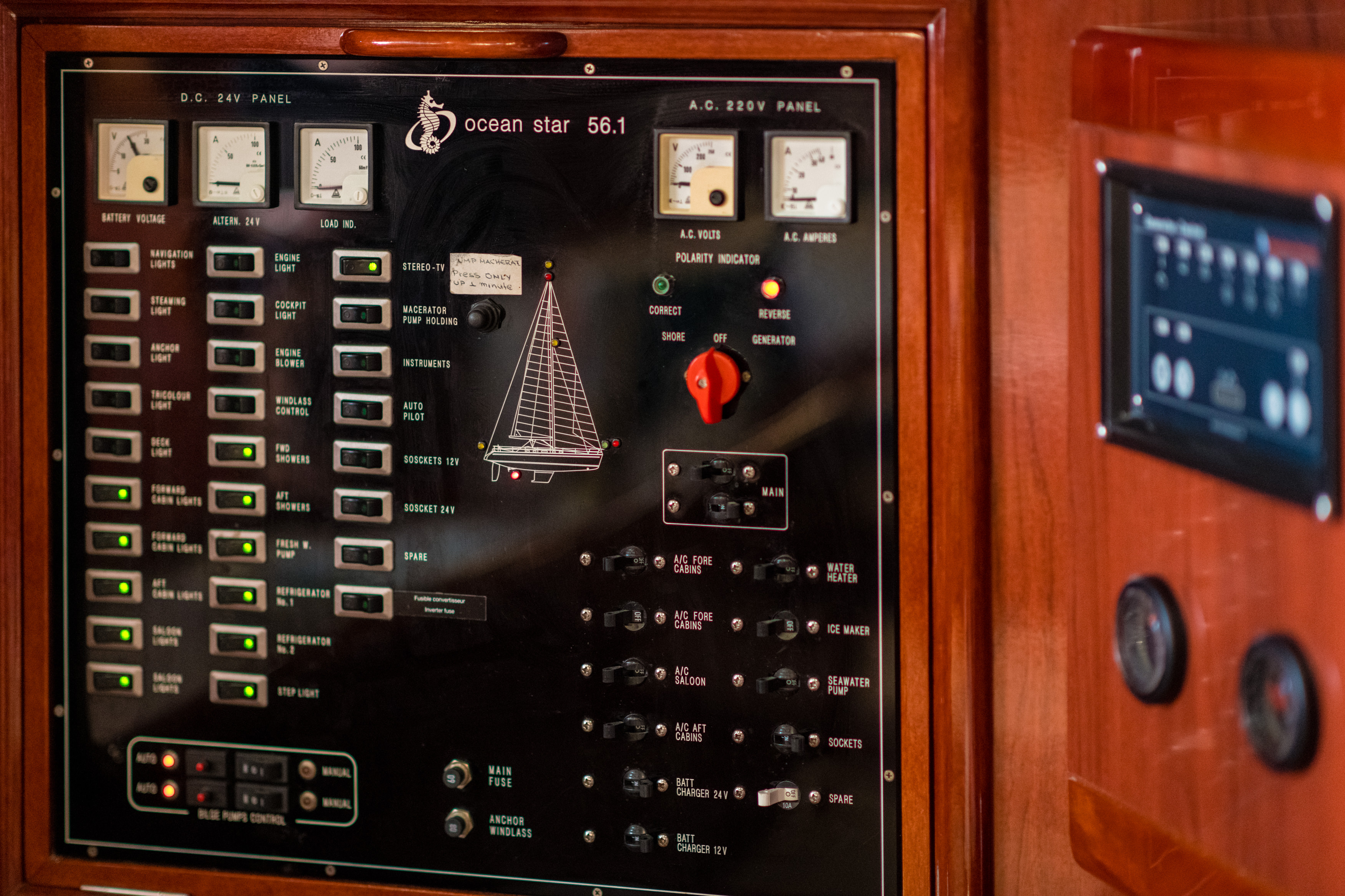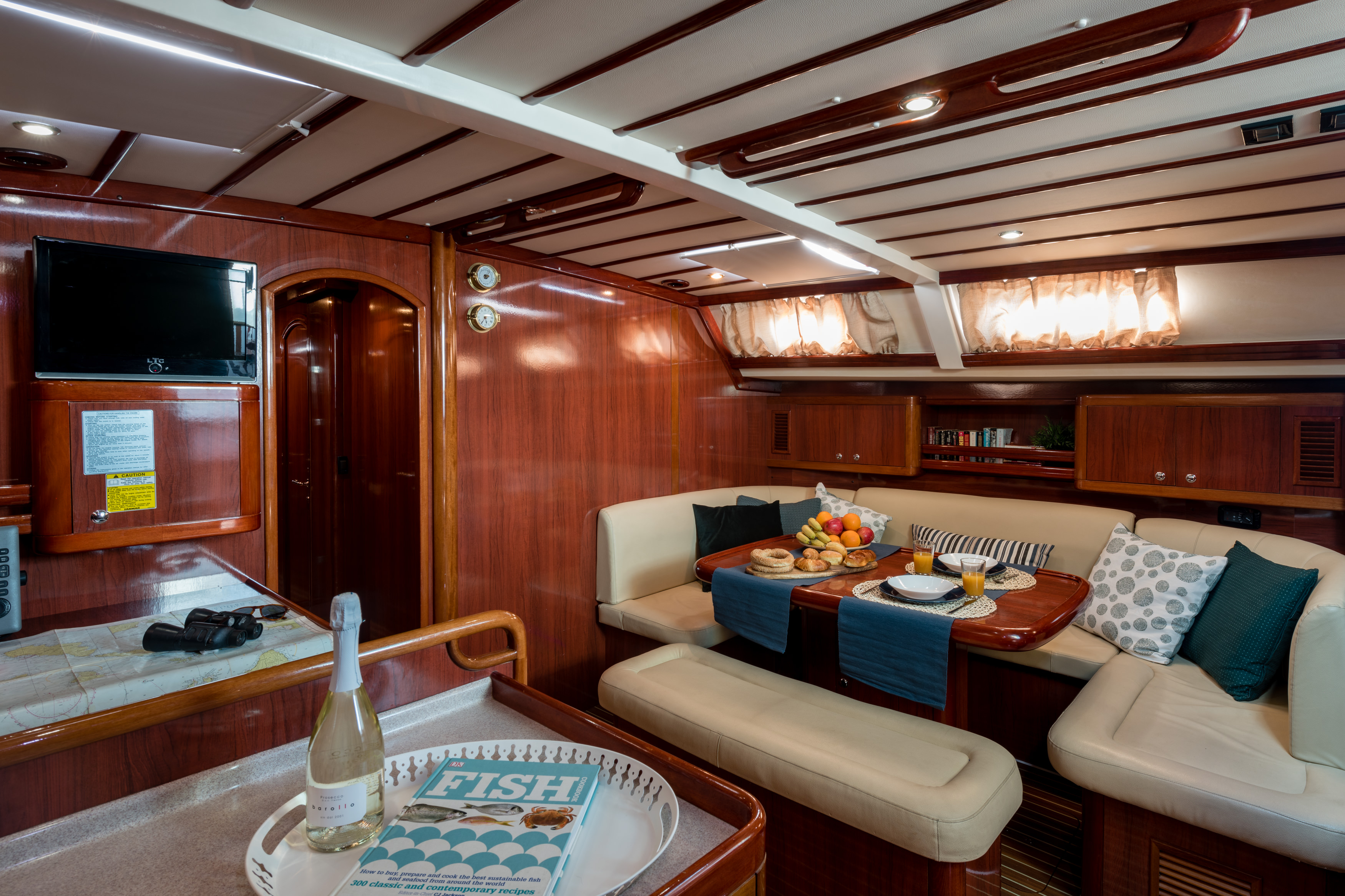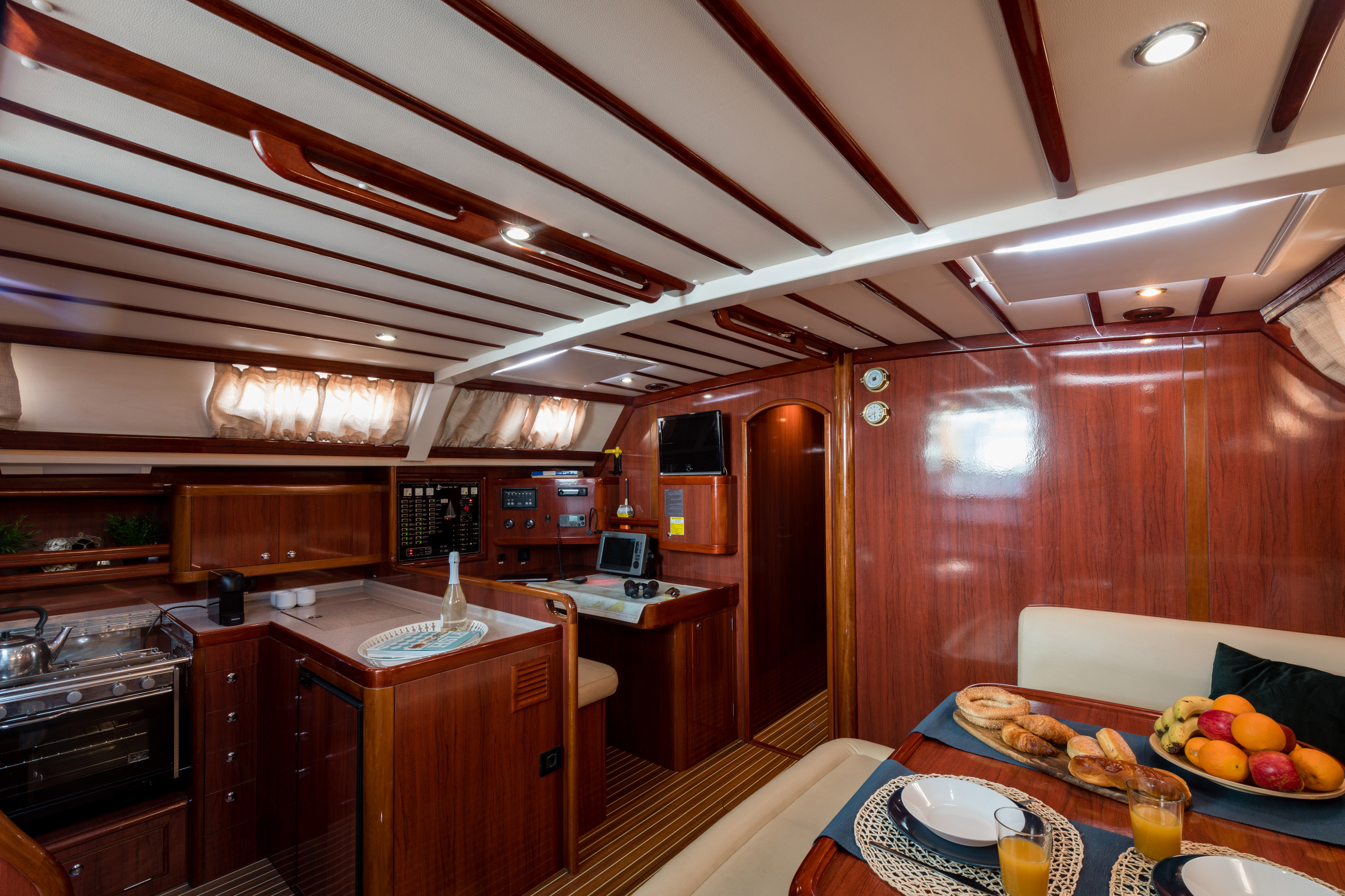 | Inside | 12V Steckdose, Generator, Klimaanlage (ohne Landstrombedarf), Kühlschrank, Radio mit CD, TV, Warmwasser, Watermaker |
