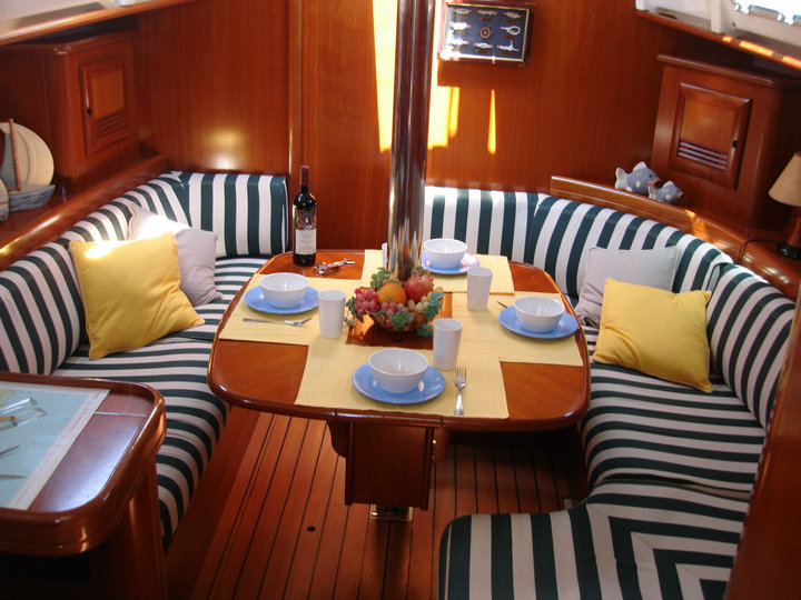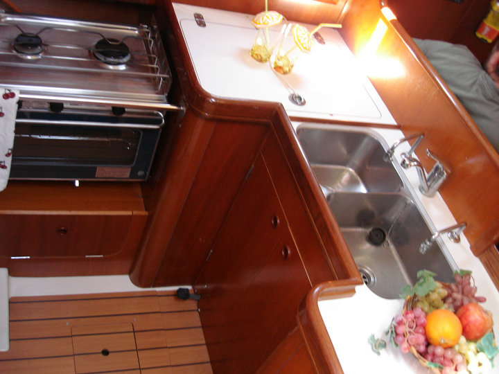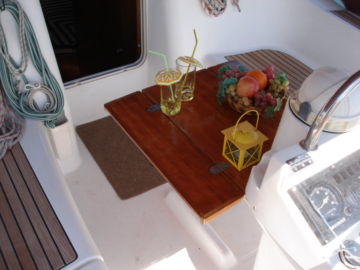 | Outside | Anker mit Kette, Badeleiter, Biminitop, Bootshaken, Cockpitpolster, Deckbürste, Dieselkanister , elektr. Ankerwinsch, Fender, Festmacherleinen, Gangway, Kunststoff-Eimer (Pütz), Sprayhood, Wantenschneider, Winschen |