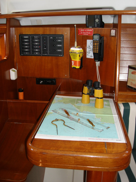 | Navigation | Barometer, Echolot, Fernglas, GPS mit Kartenplotter, Handpeilkompass, Kompass, Seekarten, Sumlog |