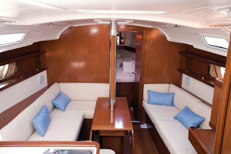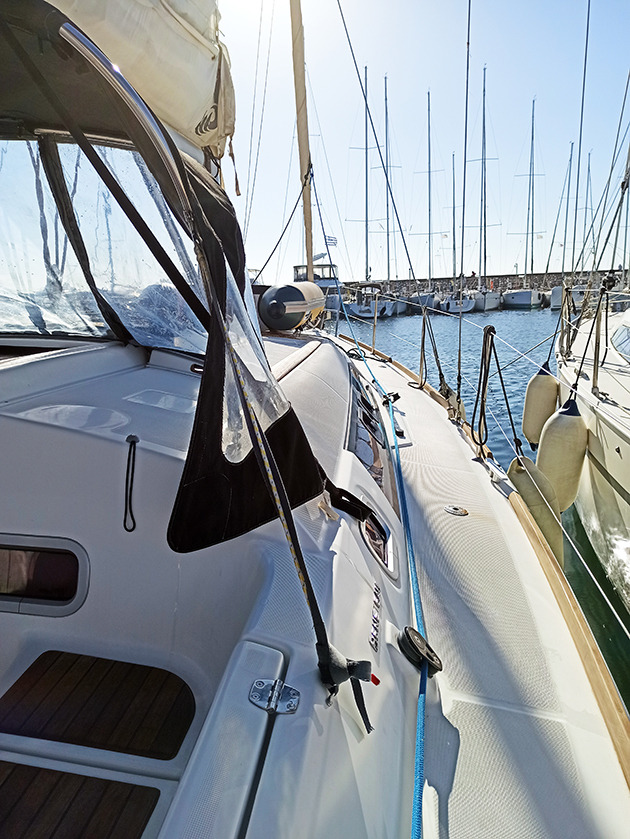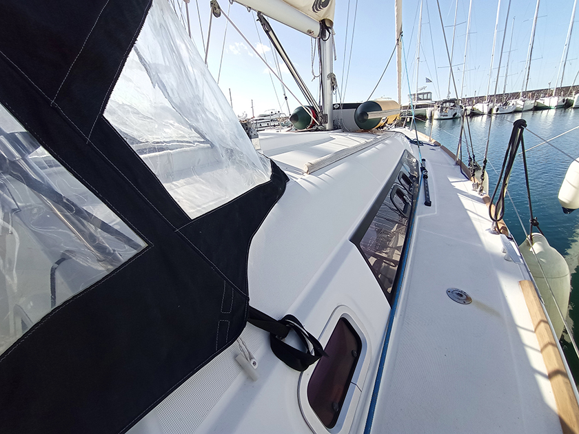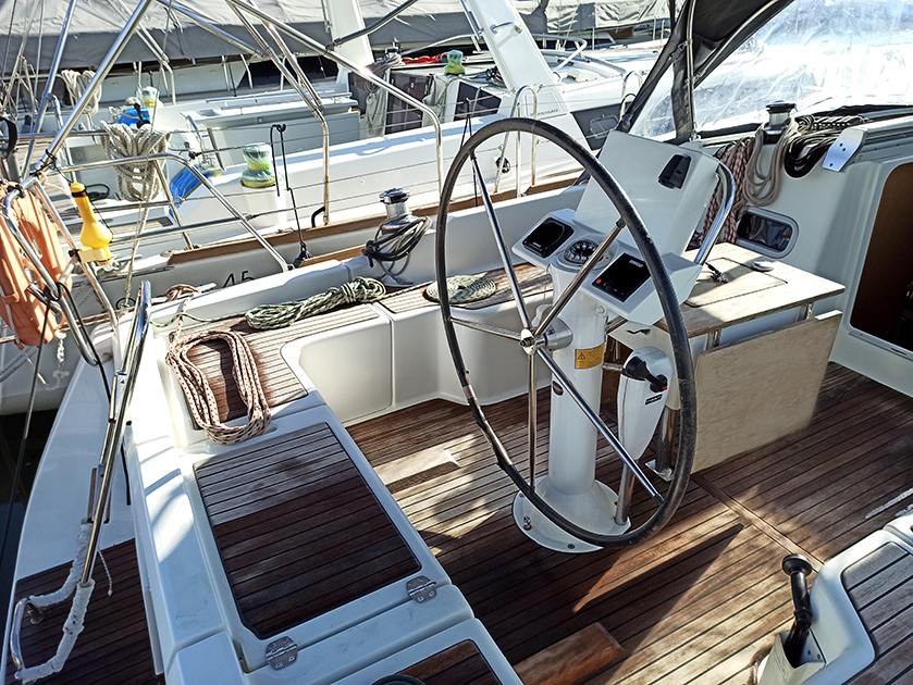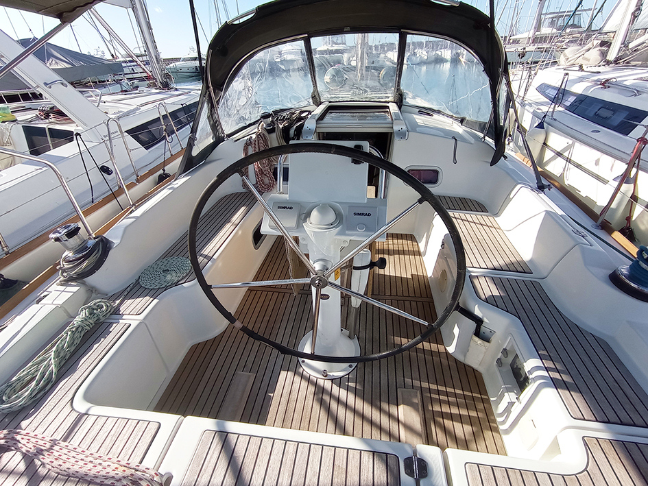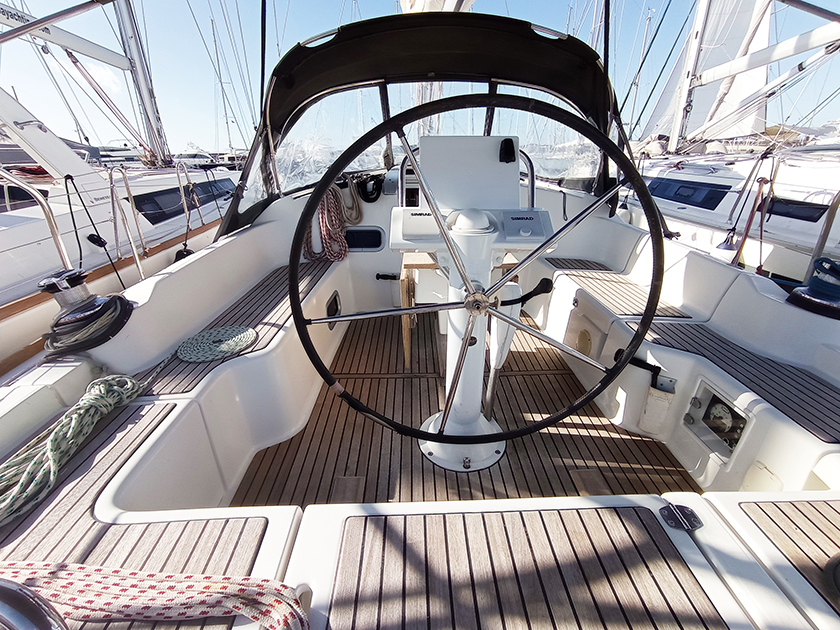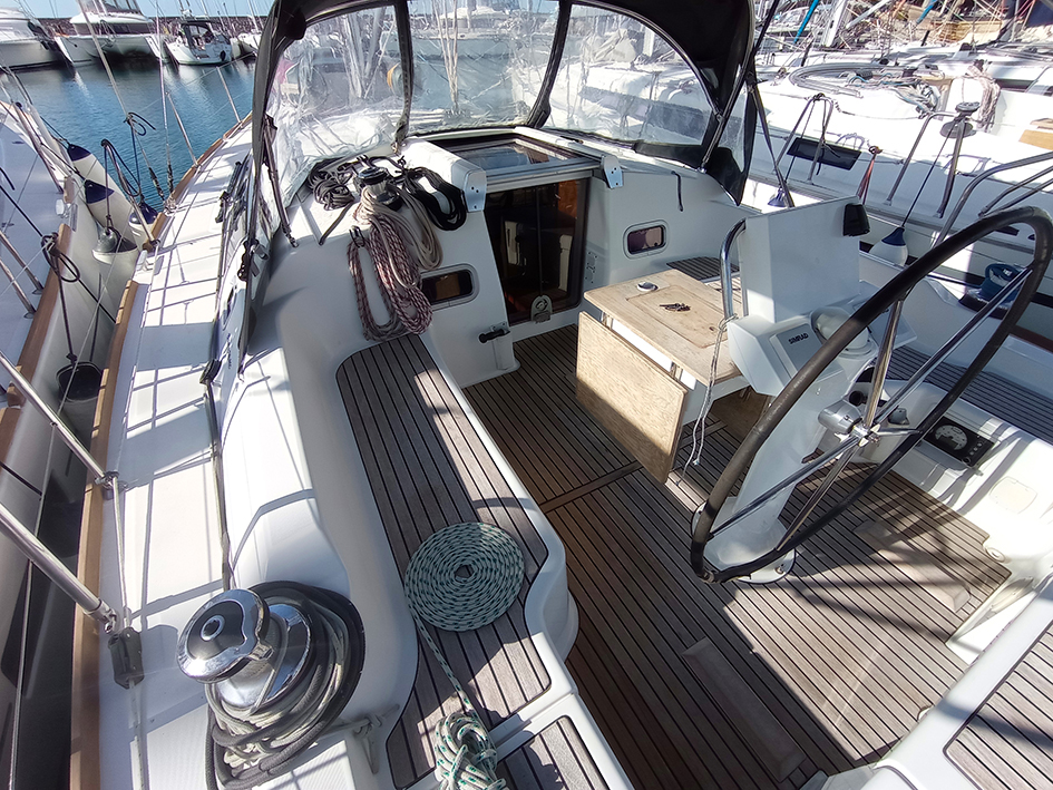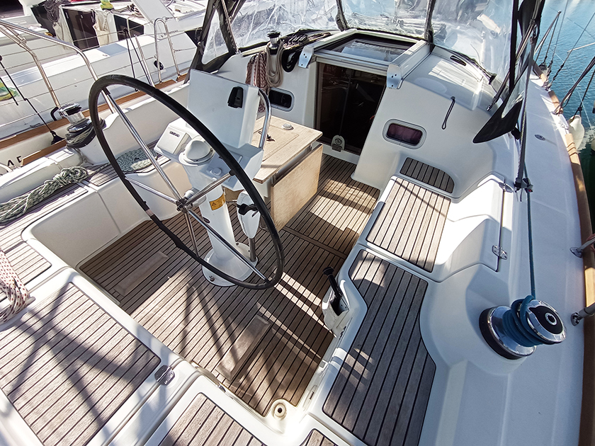 | Outside | Badeleiter, Biminitop, Cockpitdusche, Cockpitpolster, Cockpittisch, elektr. Ankerwinsch, Gangway, Sprayhood, Teak im Cockpit |