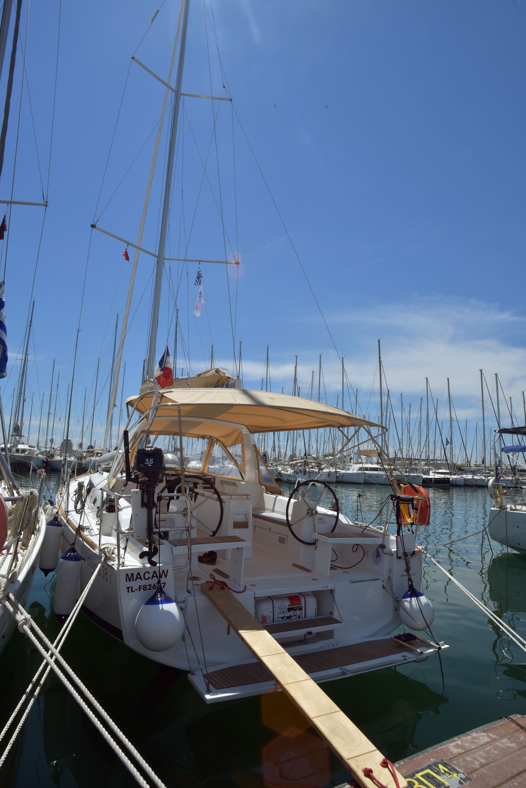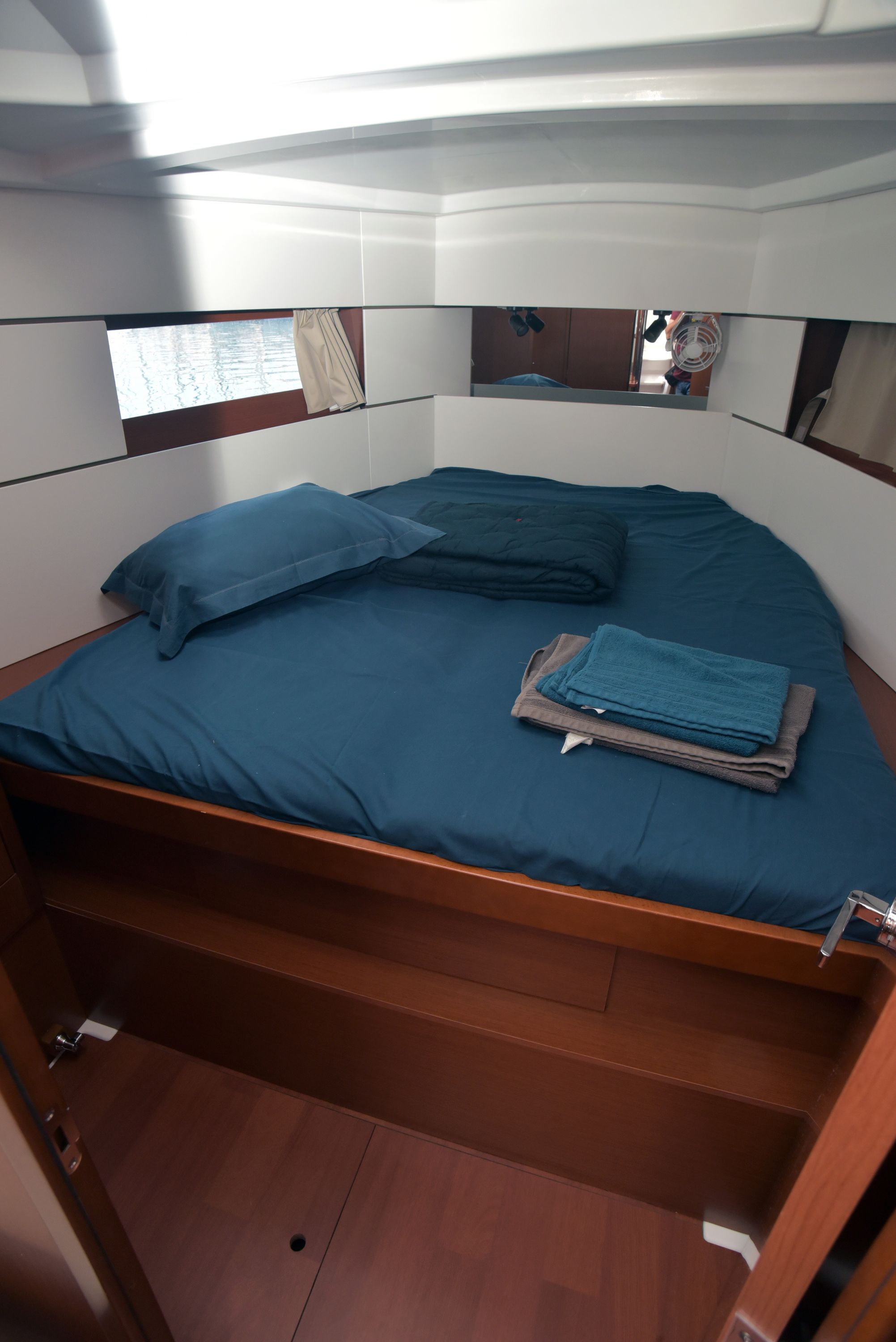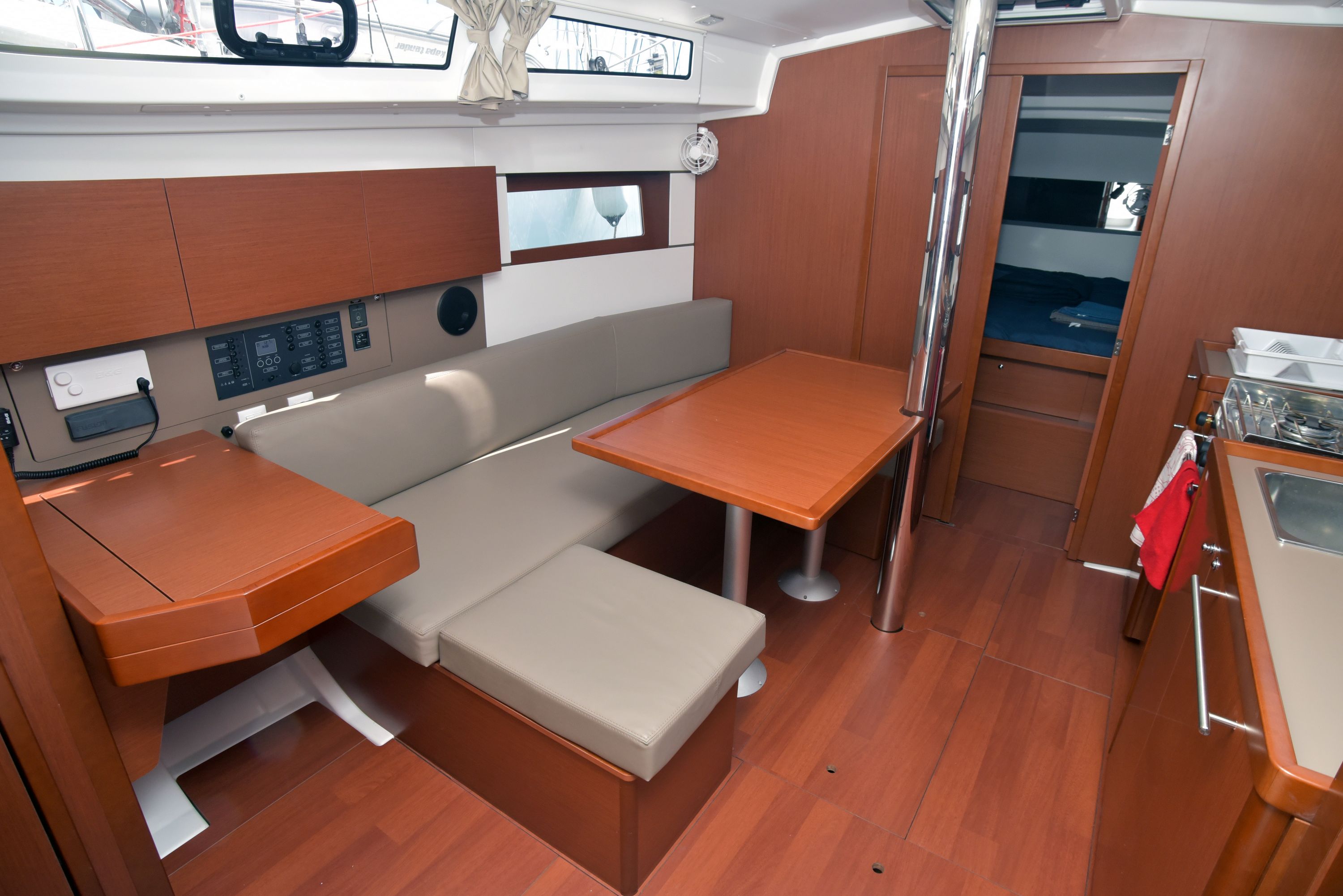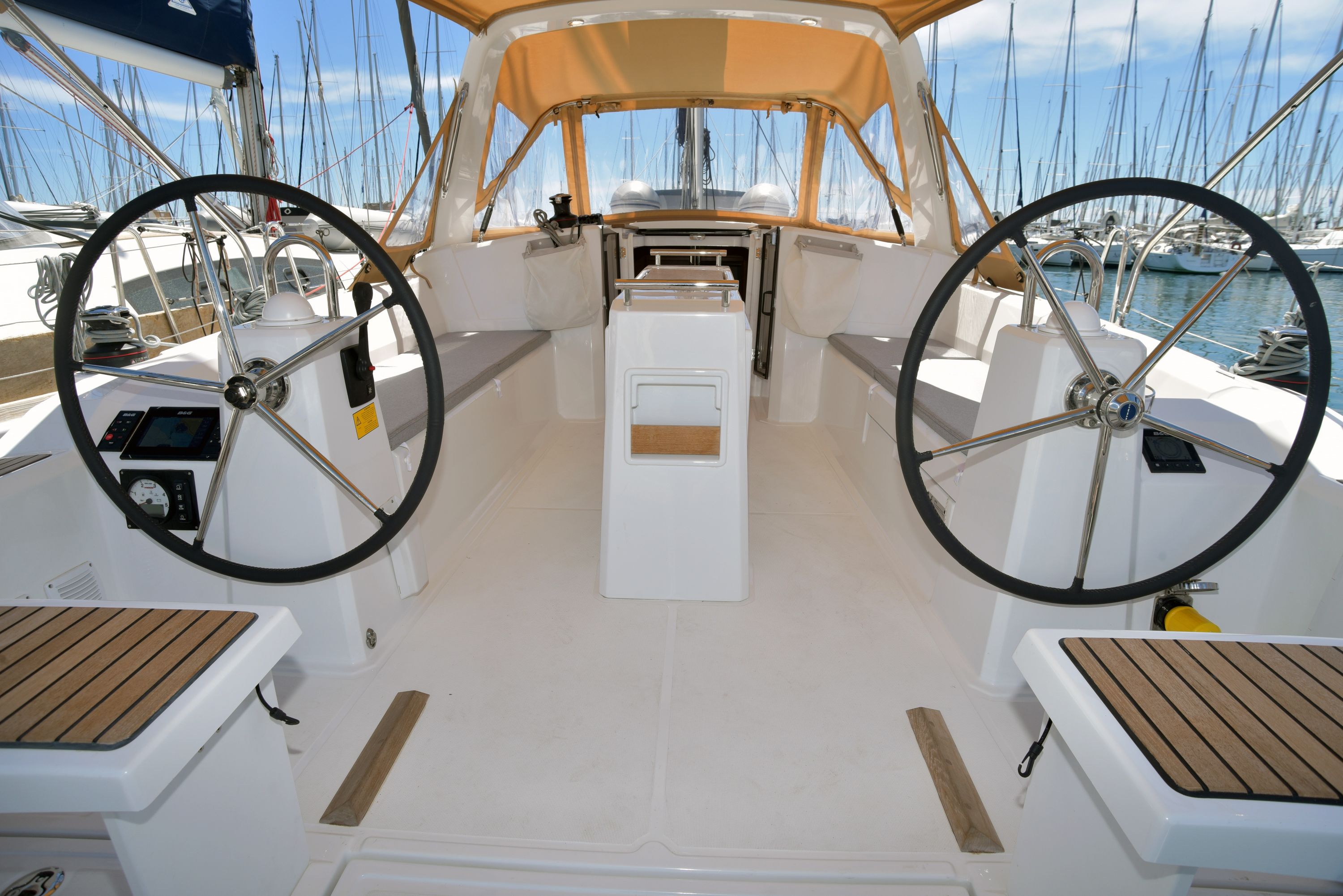 | Outside | Badeleiter, Biminitop, Cockpitdusche warm/kalt, Cockpitlautsprecher, Cockpitpolster, Cockpittisch, elektr. Ankerwinsch, Selbstholende Winschen, Sprayhood |