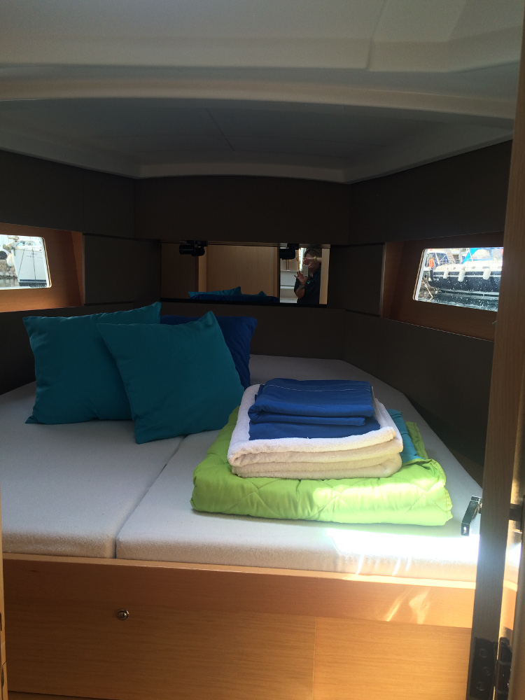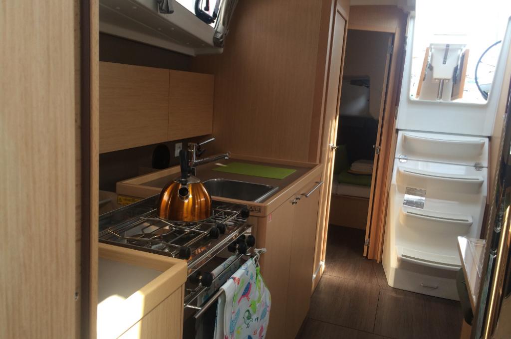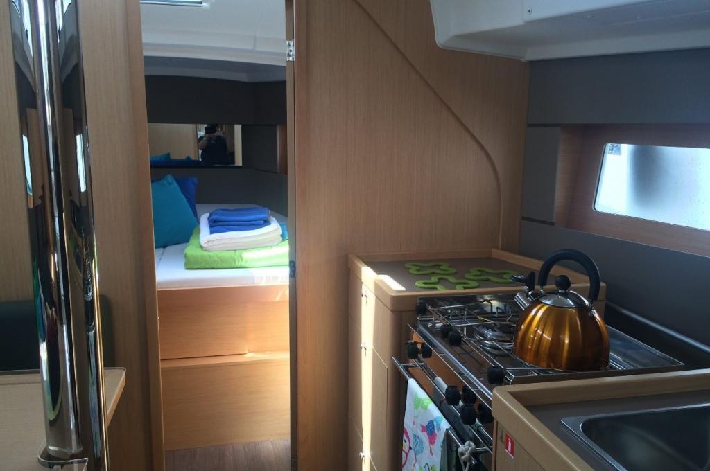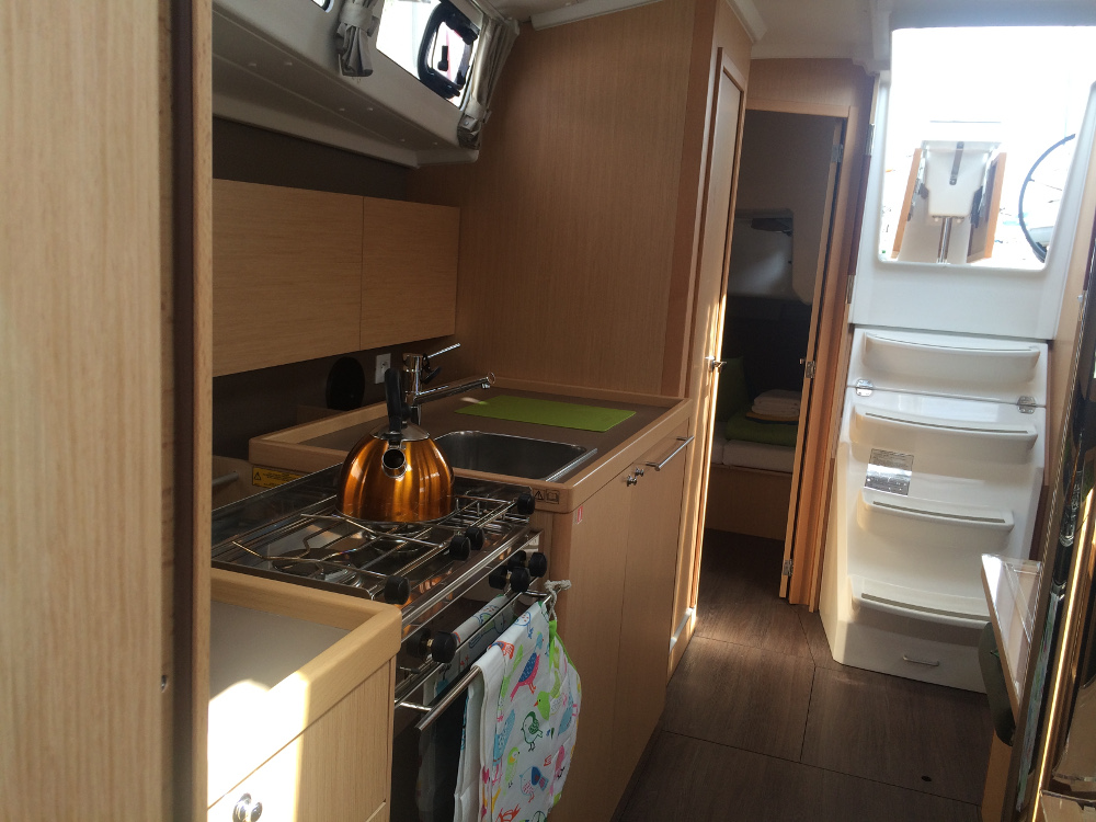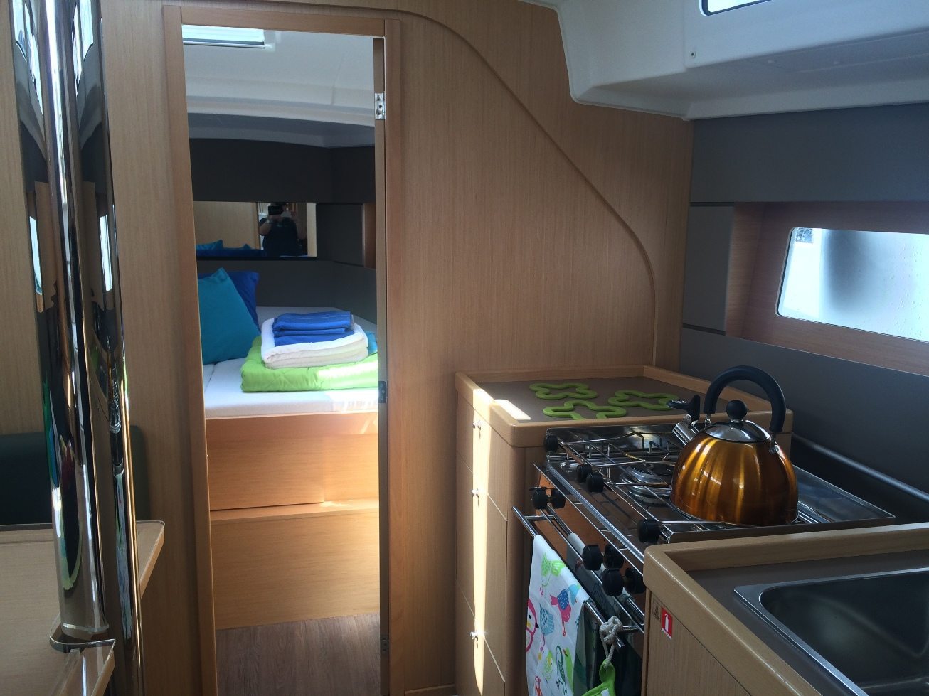 Backofen, Besen und Kehrblech, Gasherd, Gasherd mit Backofen, Küchenutensilien, Kühlschrank, Ladegerät, Landstromkabel, Luftpumpe für Beiboot, Pantryausstattung, Radio mit CD und iPod-Anschluss, Radio mit CD/MP3/USB, Salontisch absenkbar, Trichter, Ventilatoren in Kabinen |