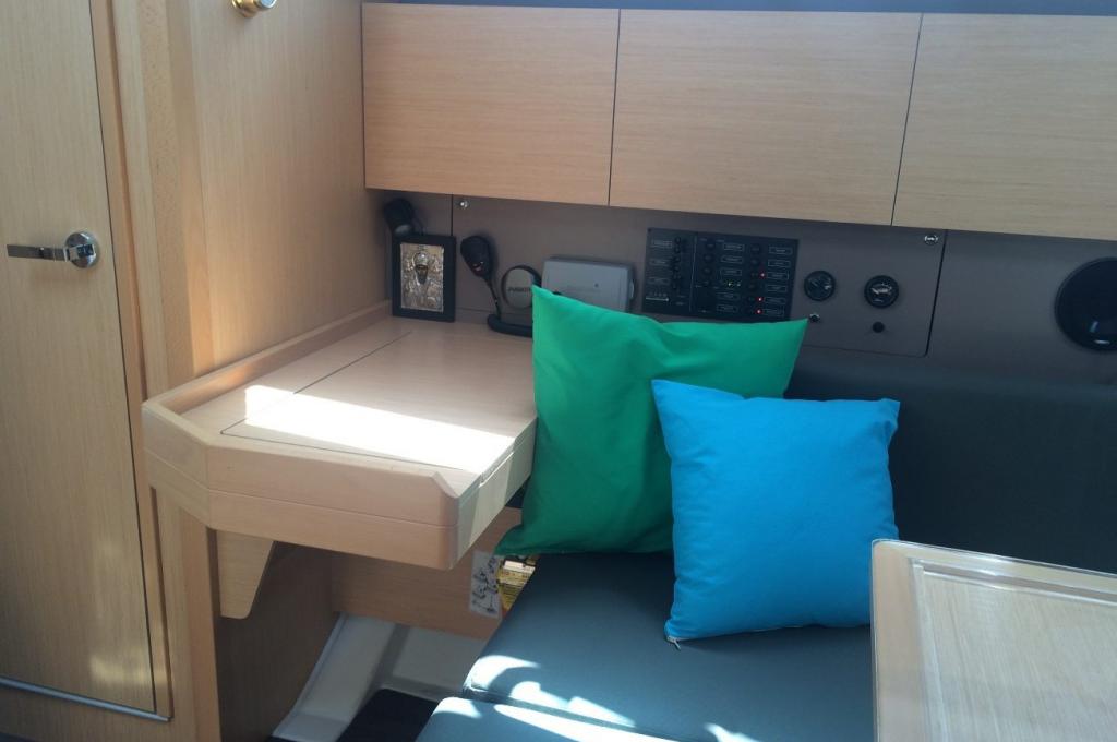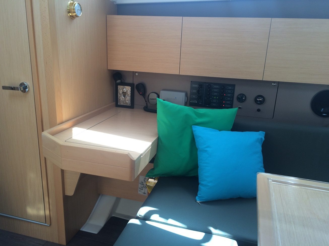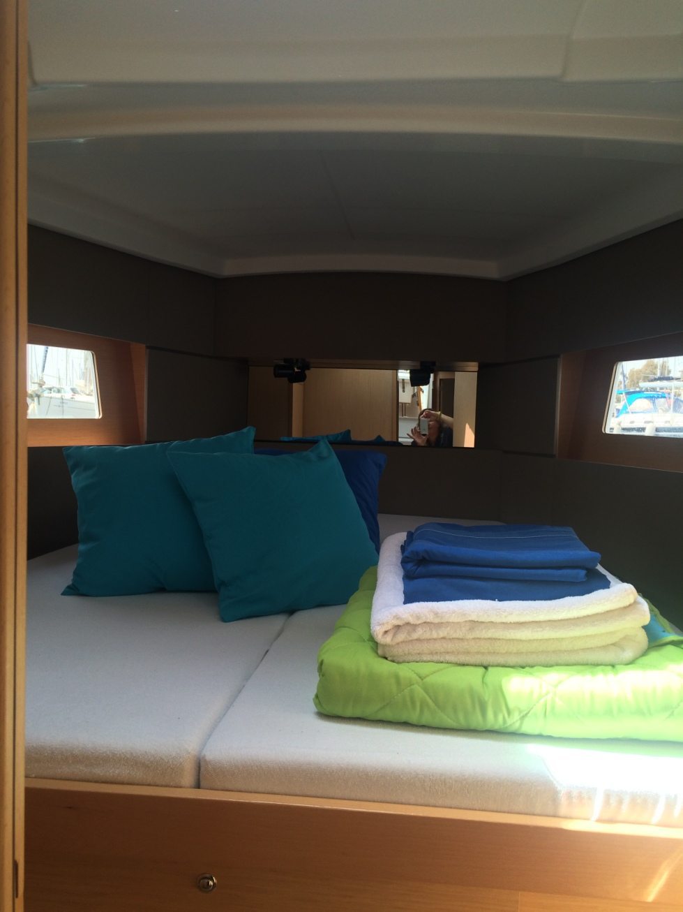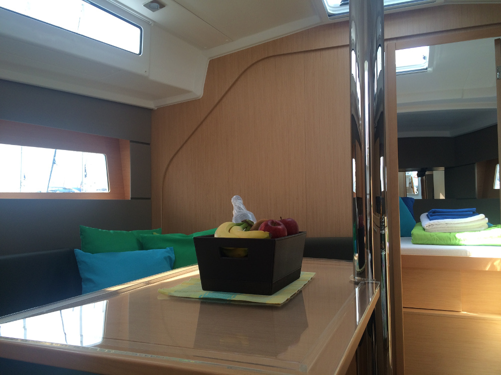 Backofen, Besen und Kehrblech, Gasherd, Gasherd mit Backofen, Küchenutensilien, Kühlschrank, Ladegerät, Landstromkabel, Luftpumpe für Beiboot, Pantryausstattung, Radio mit CD und iPod-Anschluss, Radio mit CD/MP3/USB, Salontisch absenkbar, Trichter, Ventilatoren in Kabinen |