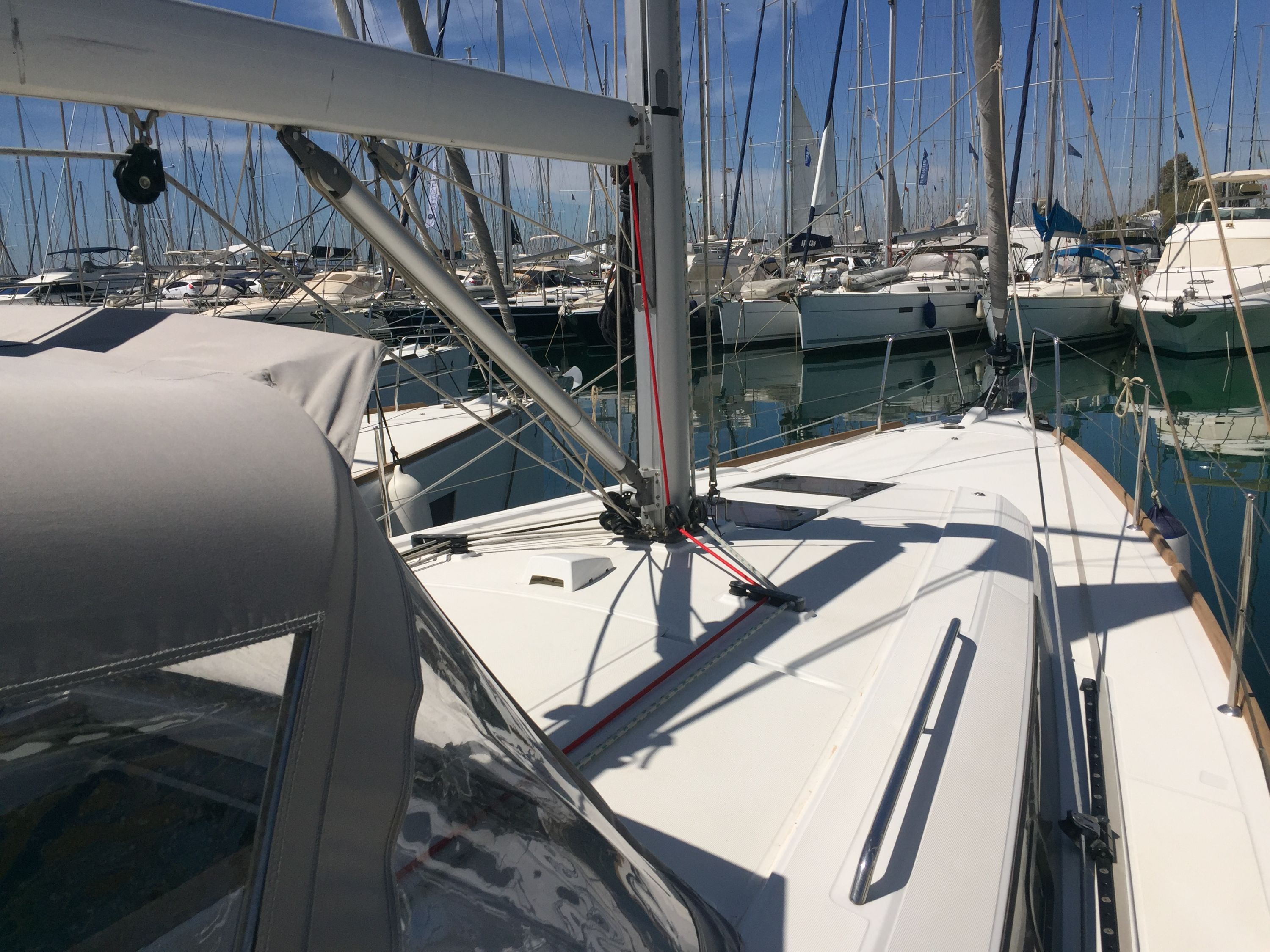 220 V-Landanschluss, Anker mit Kette, Badeplattform, Benzinkanister, Biminitop, Bootshaken, Cockpitlautsprecher, Deckbürste, Dieselkanister , elektr. Ankerwinsch, Fender, Festmacherleinen, Kunststoff-Eimer (Pütz), Rodkicker, Solaranlage, Sprayhood, Teak im Cockpit, Wantenschneider, Wasserkanister , Wasserschlauch, Winschen |