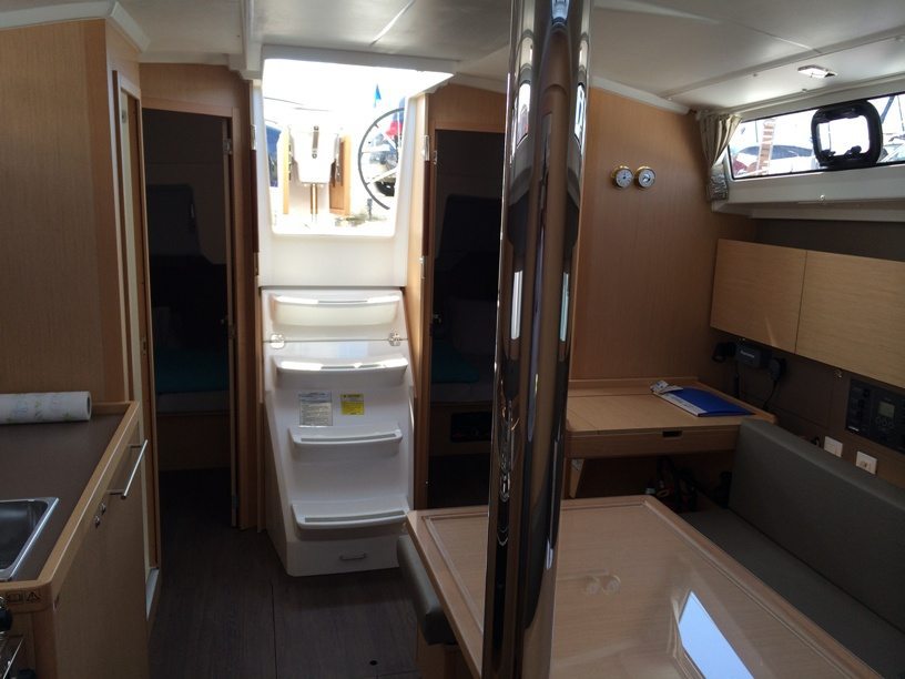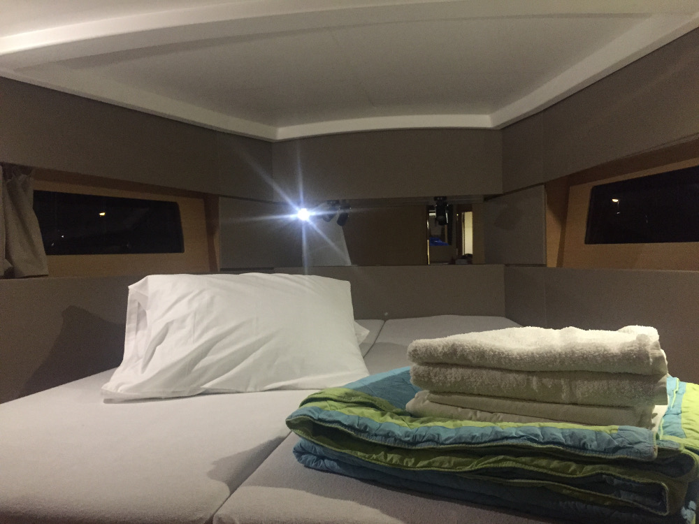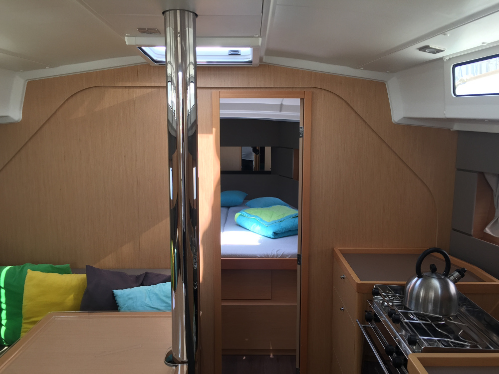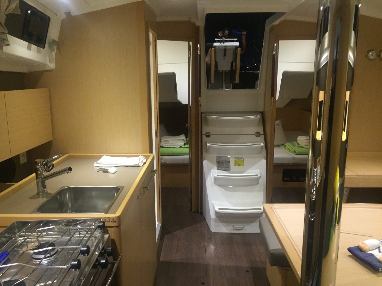 Backofen, Besen und Kehrblech, Gasherd, Gasherd mit Backofen, Küchenutensilien, Kühlschrank, Ladegerät, Landstromkabel, Luftpumpe für Beiboot, Pantryausstattung, Radio mit CD und iPod-Anschluss, Radio mit CD/MP3/USB, Salontisch absenkbar, Trichter, Ventilatoren in Kabinen |