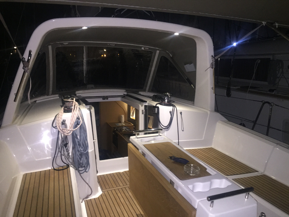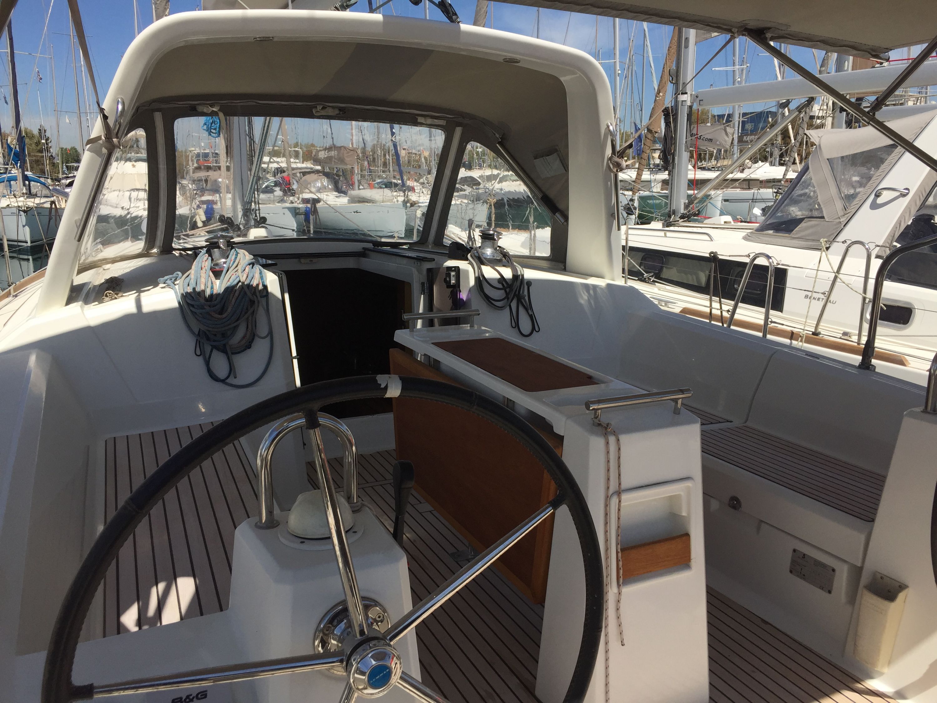 220 V-Landanschluss, Anker mit Kette, Badeplattform, Benzinkanister, Biminitop, Bootshaken, Cockpitlautsprecher, Cockpitpolster, Deckbürste, Dieselkanister , elektr. Ankerwinsch, Fender, Festmacherleinen, Kunststoff-Eimer (Pütz), Rodkicker, Solaranlage, Sprayhood, Wantenschneider, Wasserkanister , Wasserschlauch, Winschen |