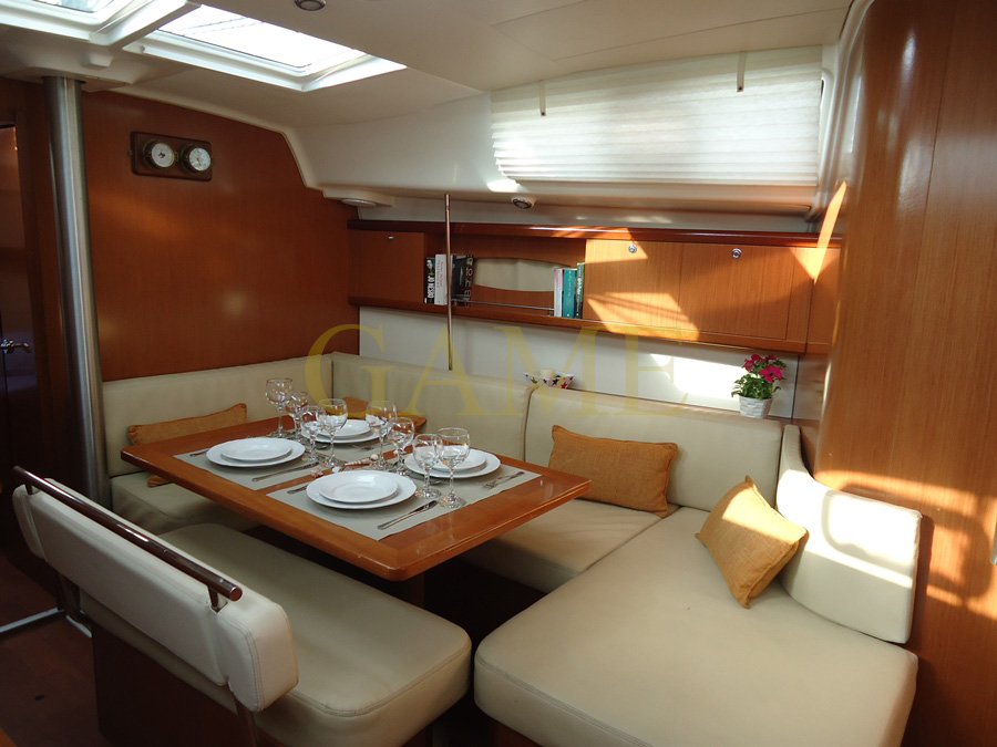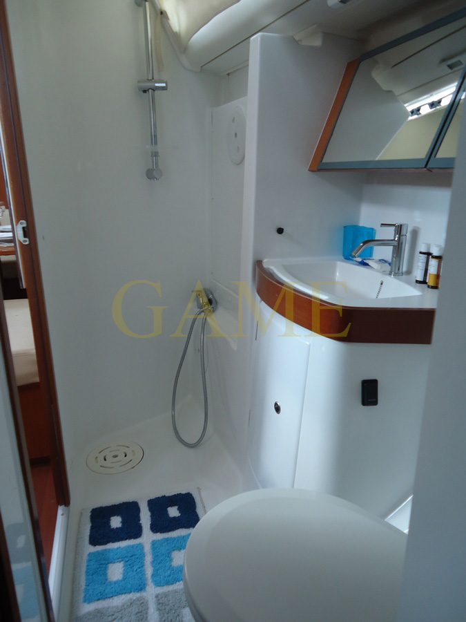 | Outside | 220 V-Landanschluss, Anker mit Kette, Biminitop, Cockpitdusche, Cockpitlautsprecher, Cockpitleuchte, Cockpitpolster, elektr. Ankerwinsch, Gangway, Schnorchelausrüstung, Solaranlage, Sprayhood, Winschen |