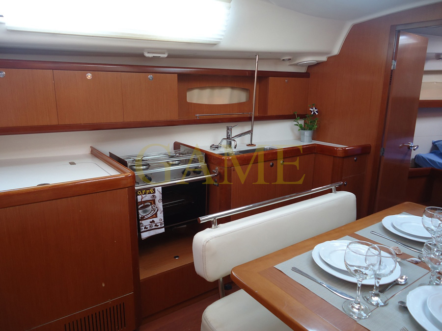 | Inside | Fäkalientank, Gasherd, Gasherd mit Backofen, Gefrierschrank, Inverter 12V/220V, Kaffeemaschine, Kühlschrank, Lautsprecher im Salon, LED-Innenleuchten, Moskitonetze, Pantryausstattung, Radio mit CD und MP3, Radio mit CD/MP3/USB/AUX-In, Salontisch absenkbar, USB Steckdosen in den Kabinen, Ventilator, Wasserkocher, WC (elektr.) |