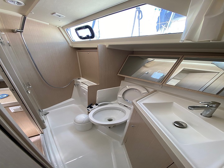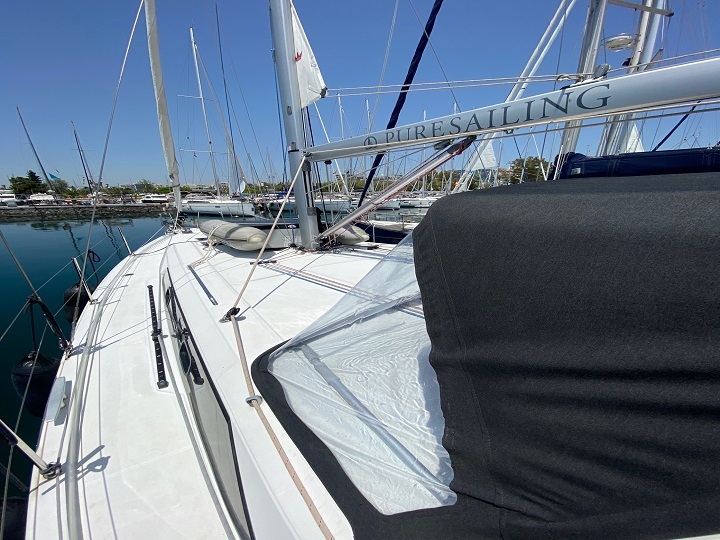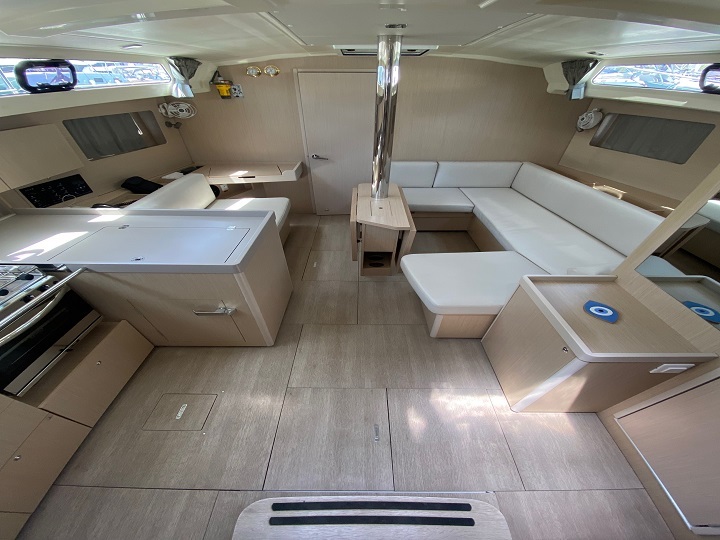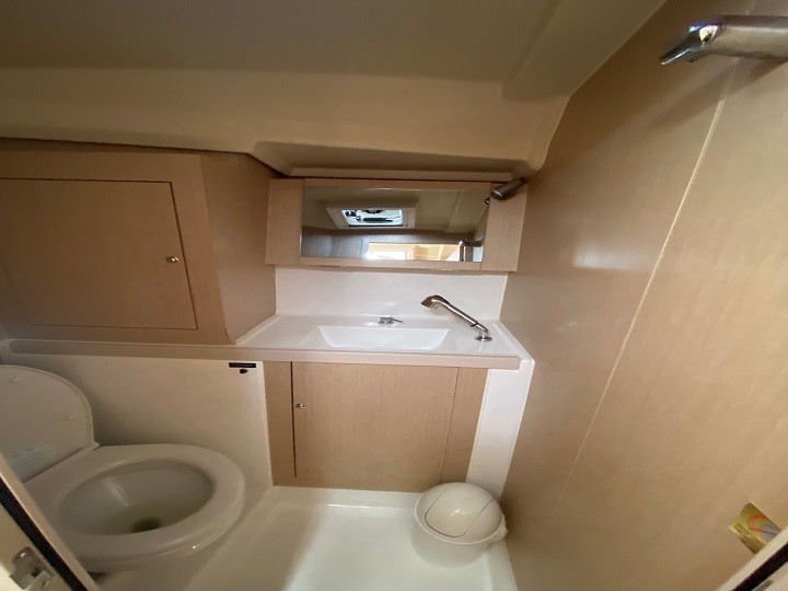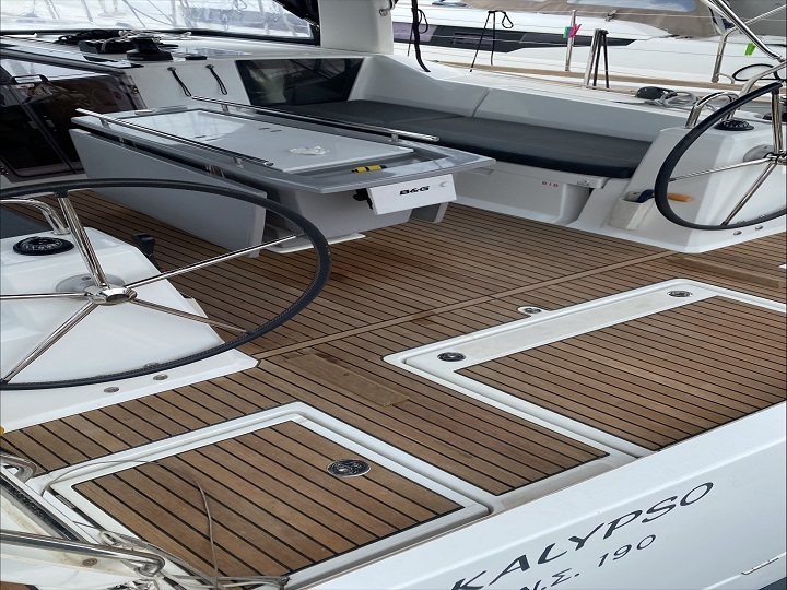 | Outside | 220 V-Landanschluss, Badeplattform, Biminitop, Cockpitdusche, Cockpitlautsprecher, Cockpitpolster, Cockpittisch, elektr. Ankerwinsch, Festmacherleinen, Schnorchelausrüstung, Solaranlage, Sprayhood, Teak im Cockpit |