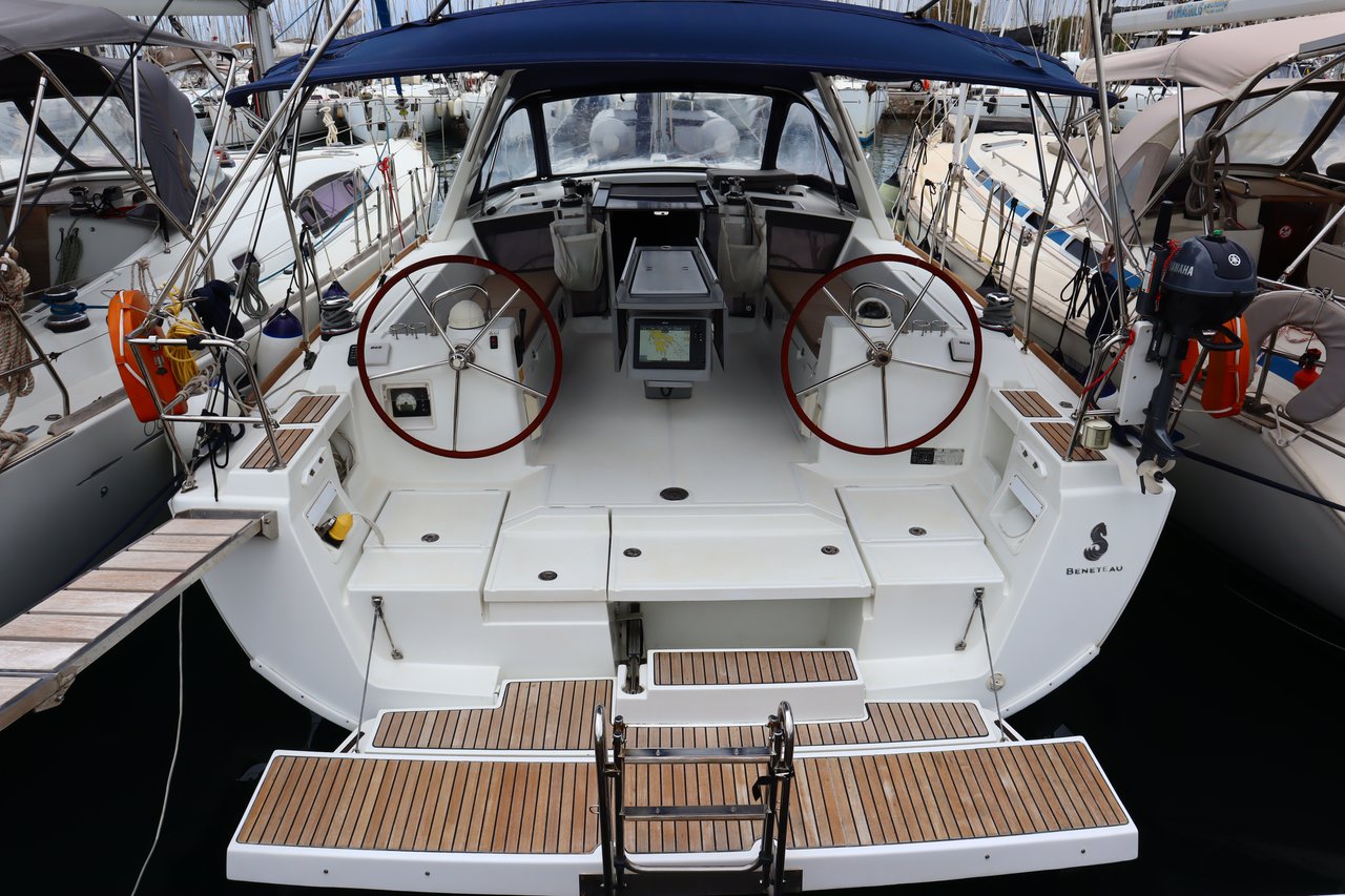 | Outside | Anker mit Kette, Badeleiter, Badeplattform (hydr.), Biminitop, Cockpitpolster, elektr. Ankerwinsch, Fender, Schnorchelausrüstung, Solaranlage, Sprayhood, Wantenschneider, Wasserschlauch |