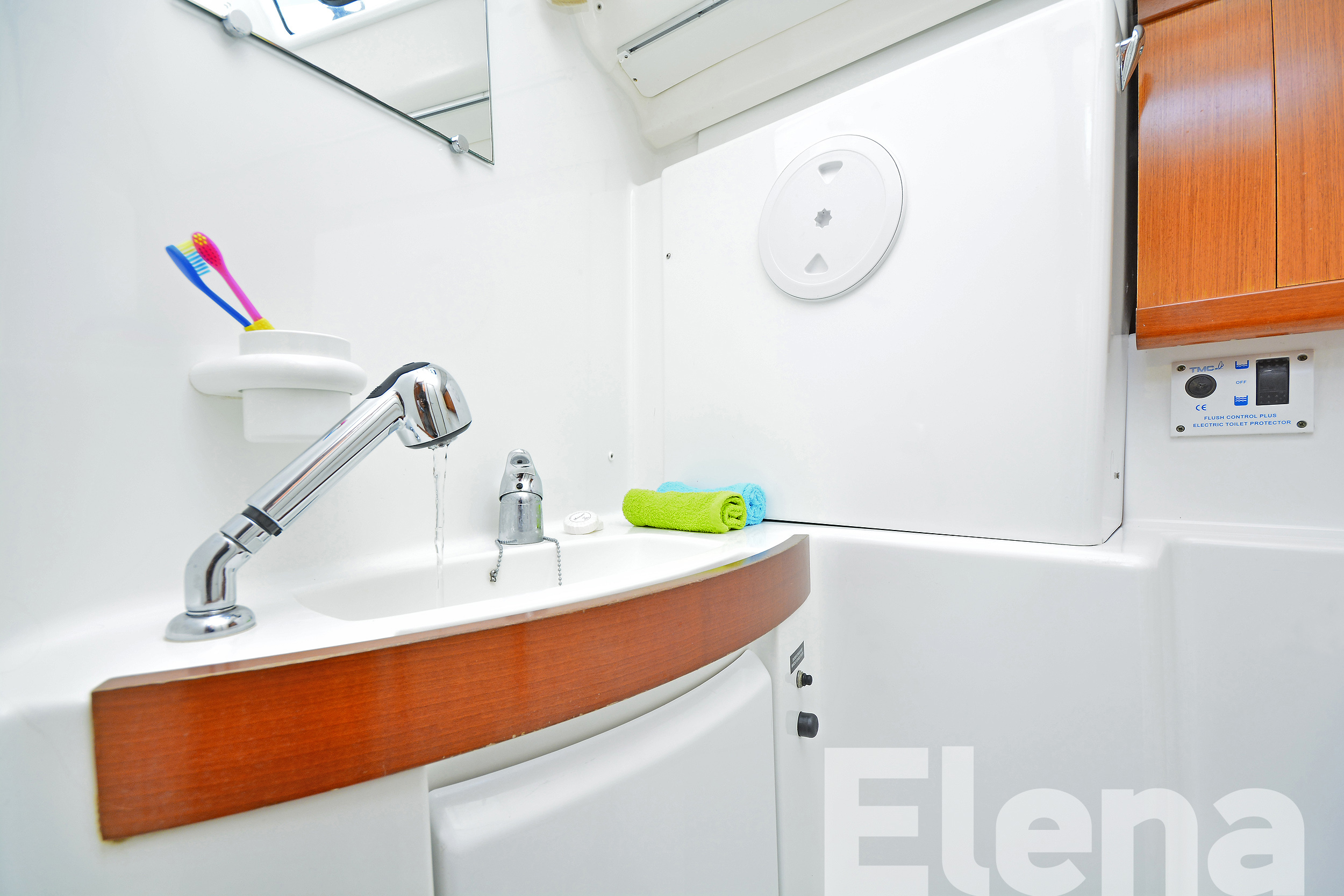 | Outside | 220 V-Landanschluss, Anker mit Kette, Badeleiter, Biminitop, Bootshaken, Cockpitpolster, elektr. Ankerwinsch, Fender, Gangway, Schnorchelausrüstung, Solaranlage, Sprayhood, Wantenschneider, Wasserschlauch, Winschen |