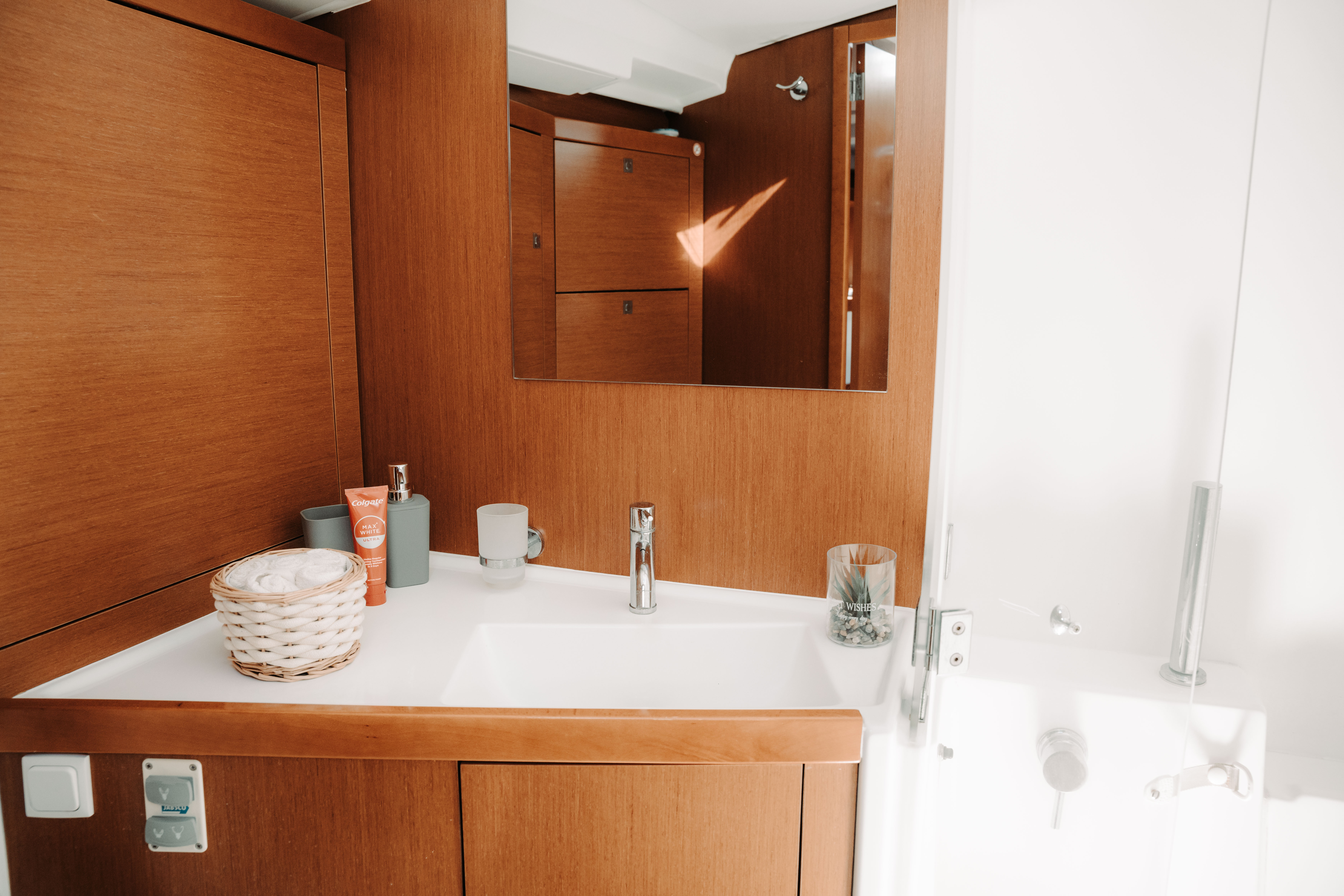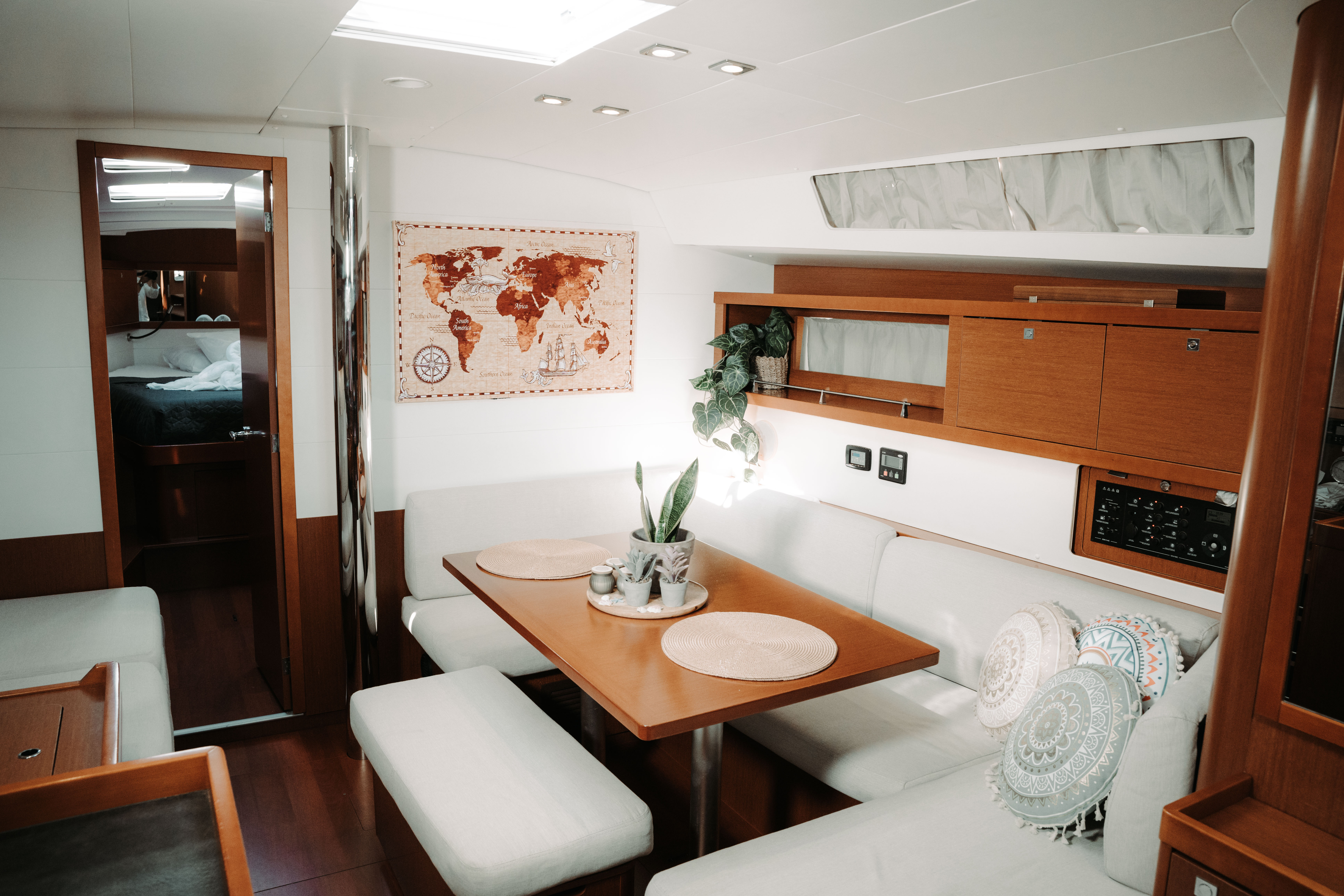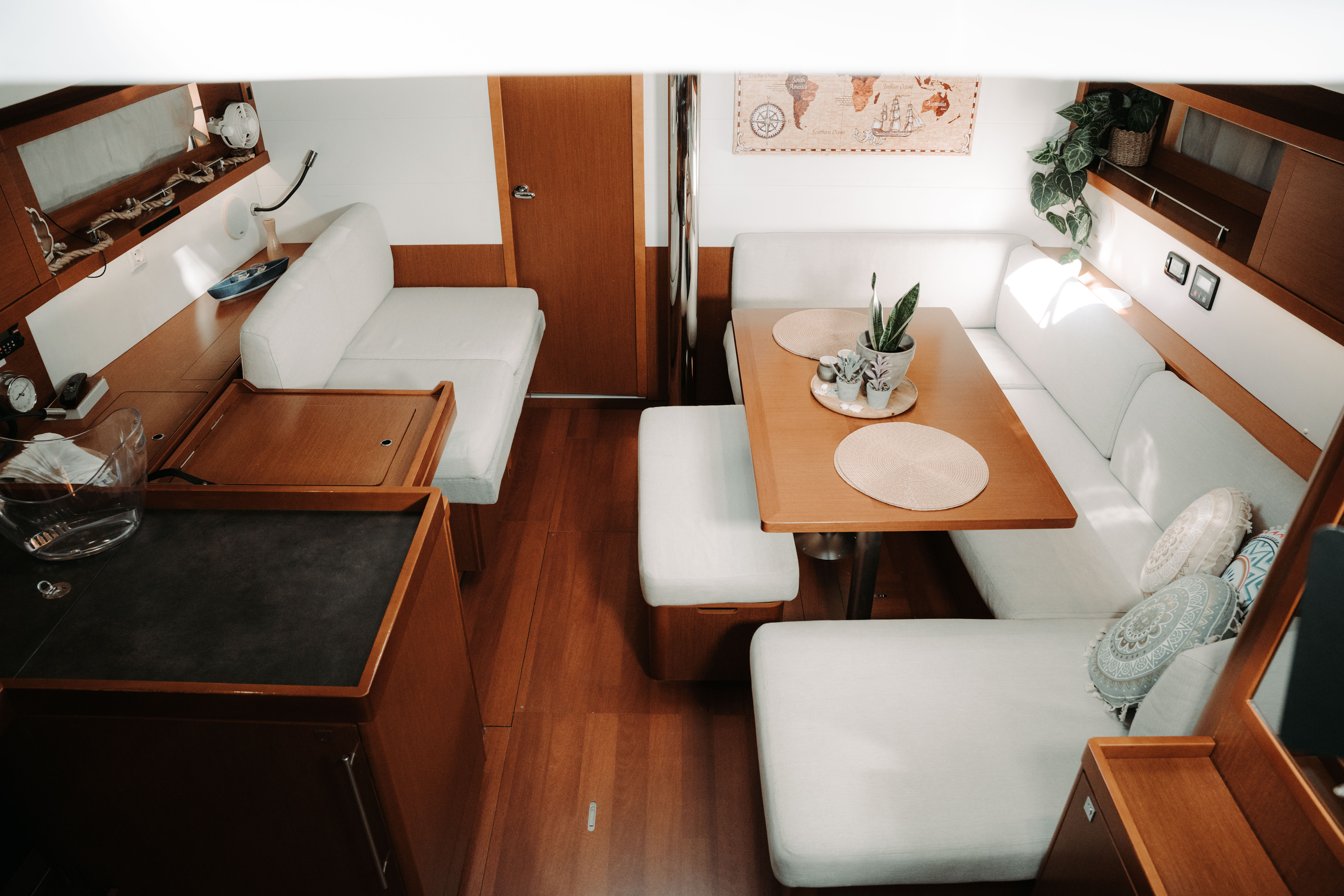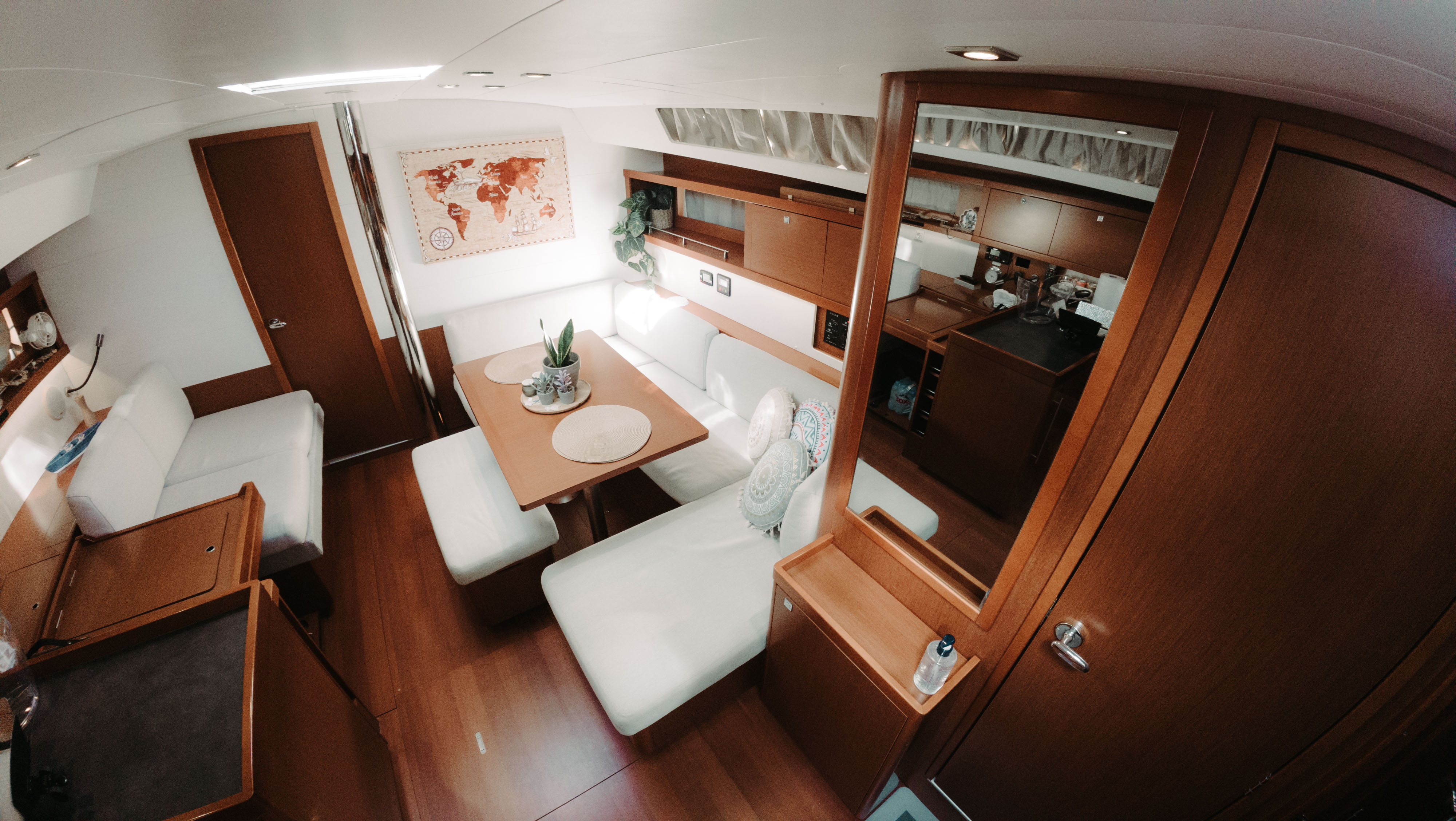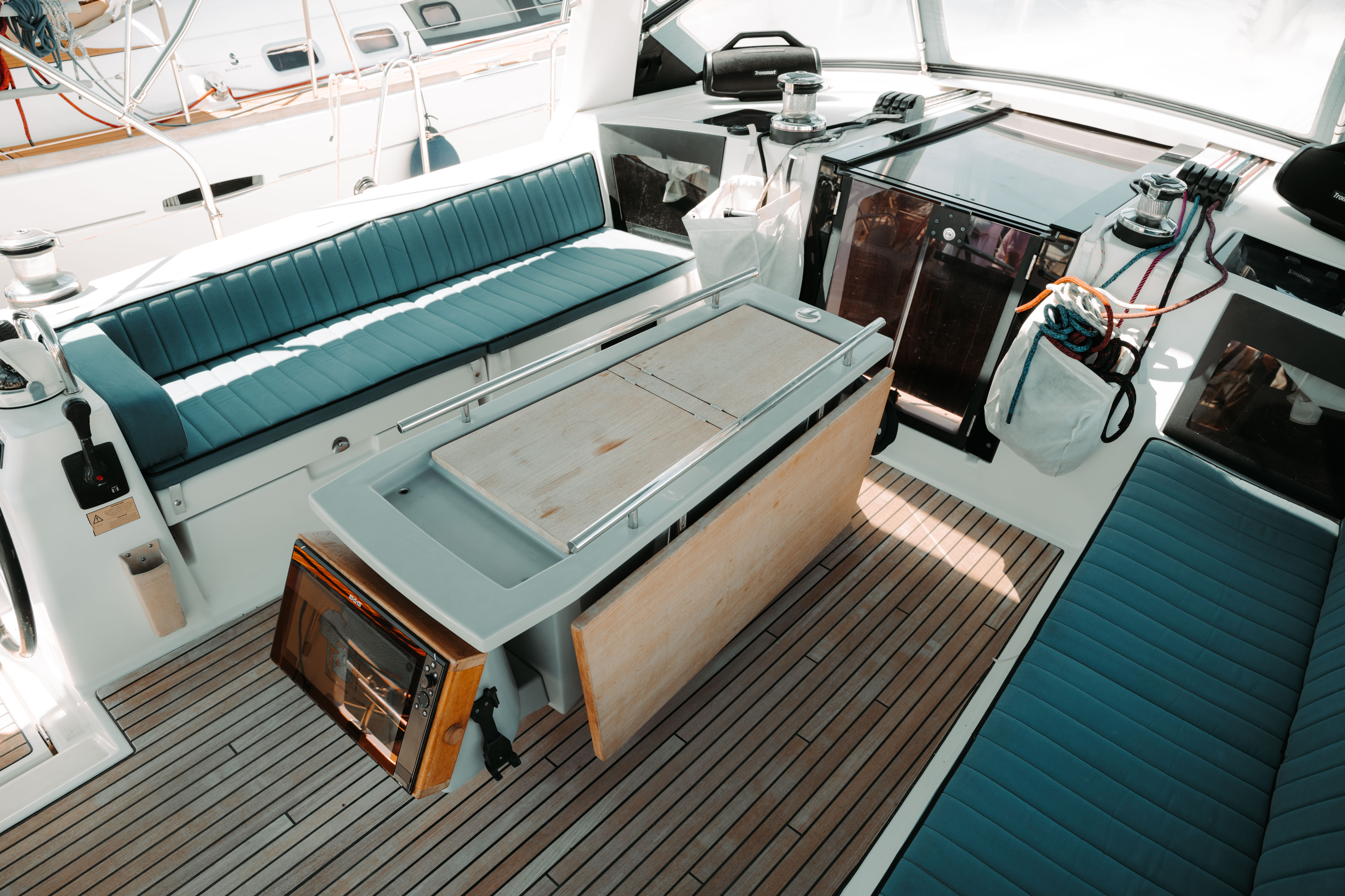 | Outside | Badeleiter, Biminitop, Cockpitdusche, Cockpitlautsprecher, Cockpitpolster, Cockpittisch, elektr. Ankerwinsch, Fender, Schnorchelausrüstung, Solaranlage, Sprayhood |