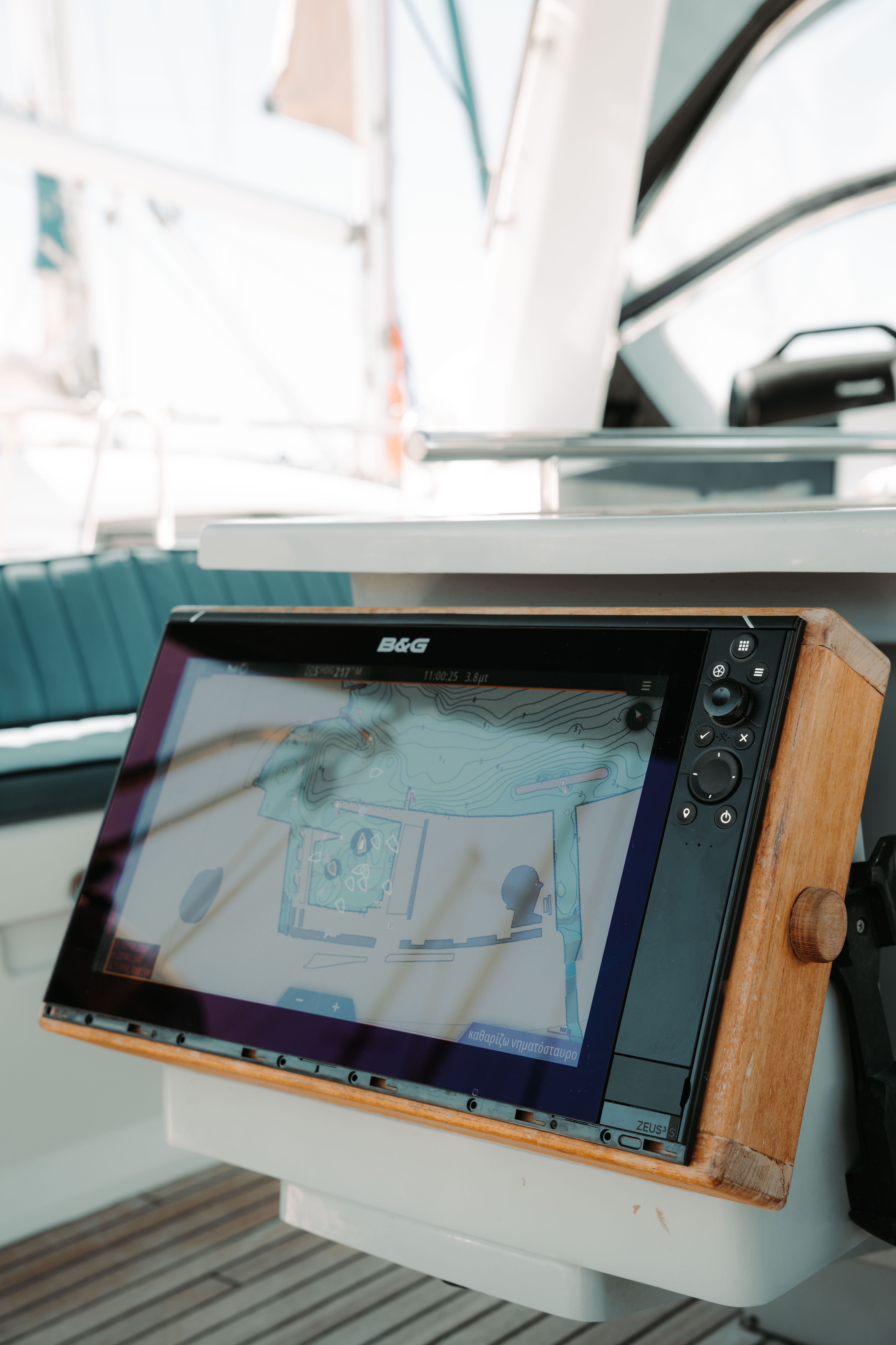 | Navigation | Echolot, Hafenhandbücher, Kartenplotter im Cockpit, Seekarten, Sumlog, Windmesser |
