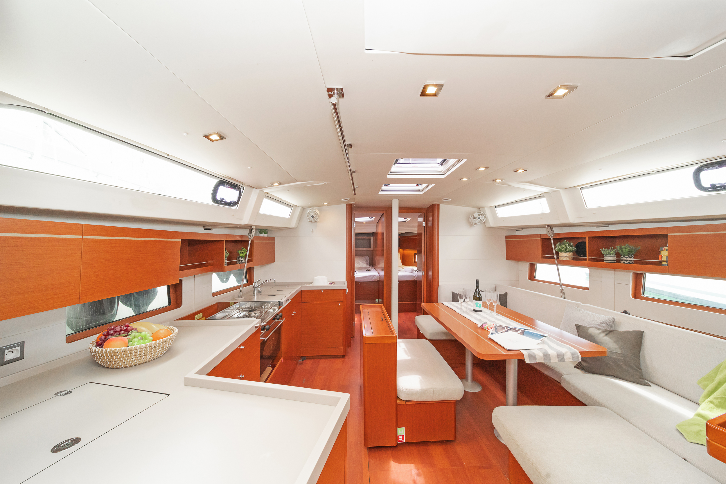 | Inside | 220V Steckdosen, Gasherd, Ladegerät, Lautsprecher im Salon, Pantryausstattung, Radio mit CD/MP3/USB/AUX-In, USB-Ladegerät für Mobilgeräte, Ventilatoren in Kabinen, WC (elektr.) |
