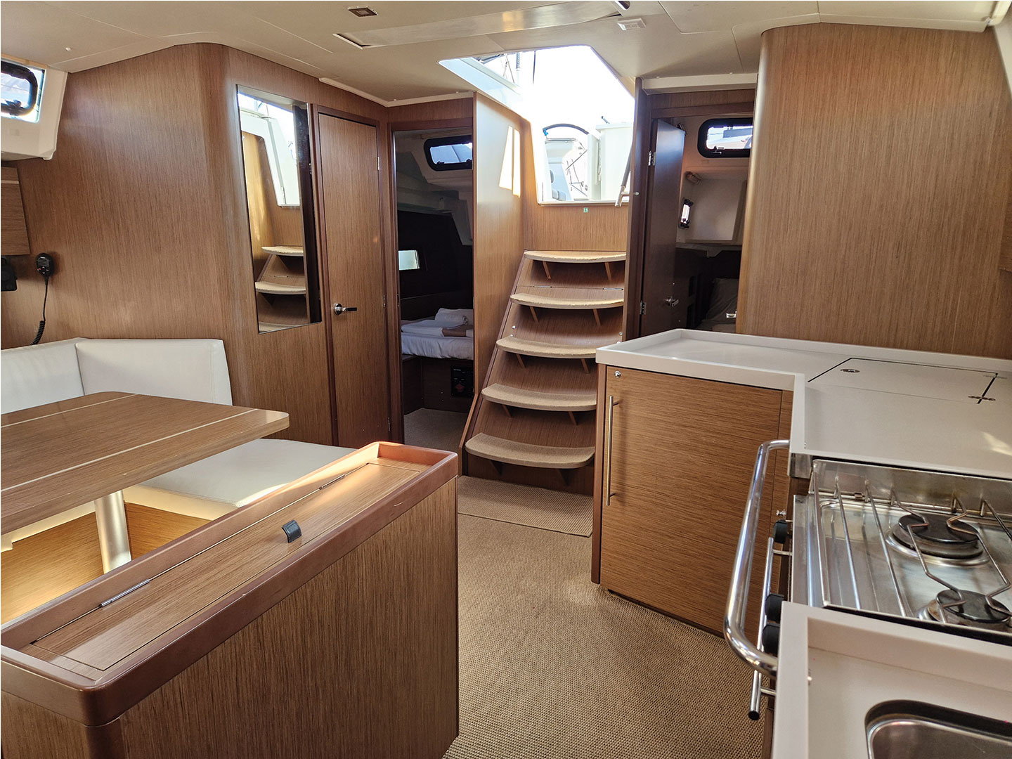 | Outside | 220 V-Landanschluss, Biminitop, Cockpitlautsprecher, elektr. Winsch, Solaranlage, Sprayhood |