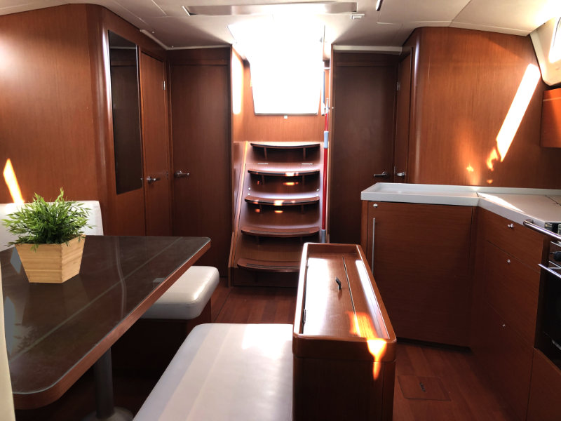 | Navigation | Echolot, GPS mit Kartenplotter im Cockpit, GPS mit Kartenplotter im Salon, Navigationsbesteck, Seekarten, Sumlog, Windmesser |