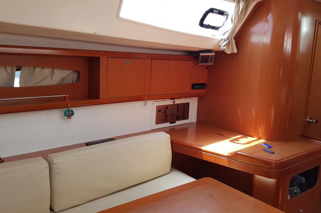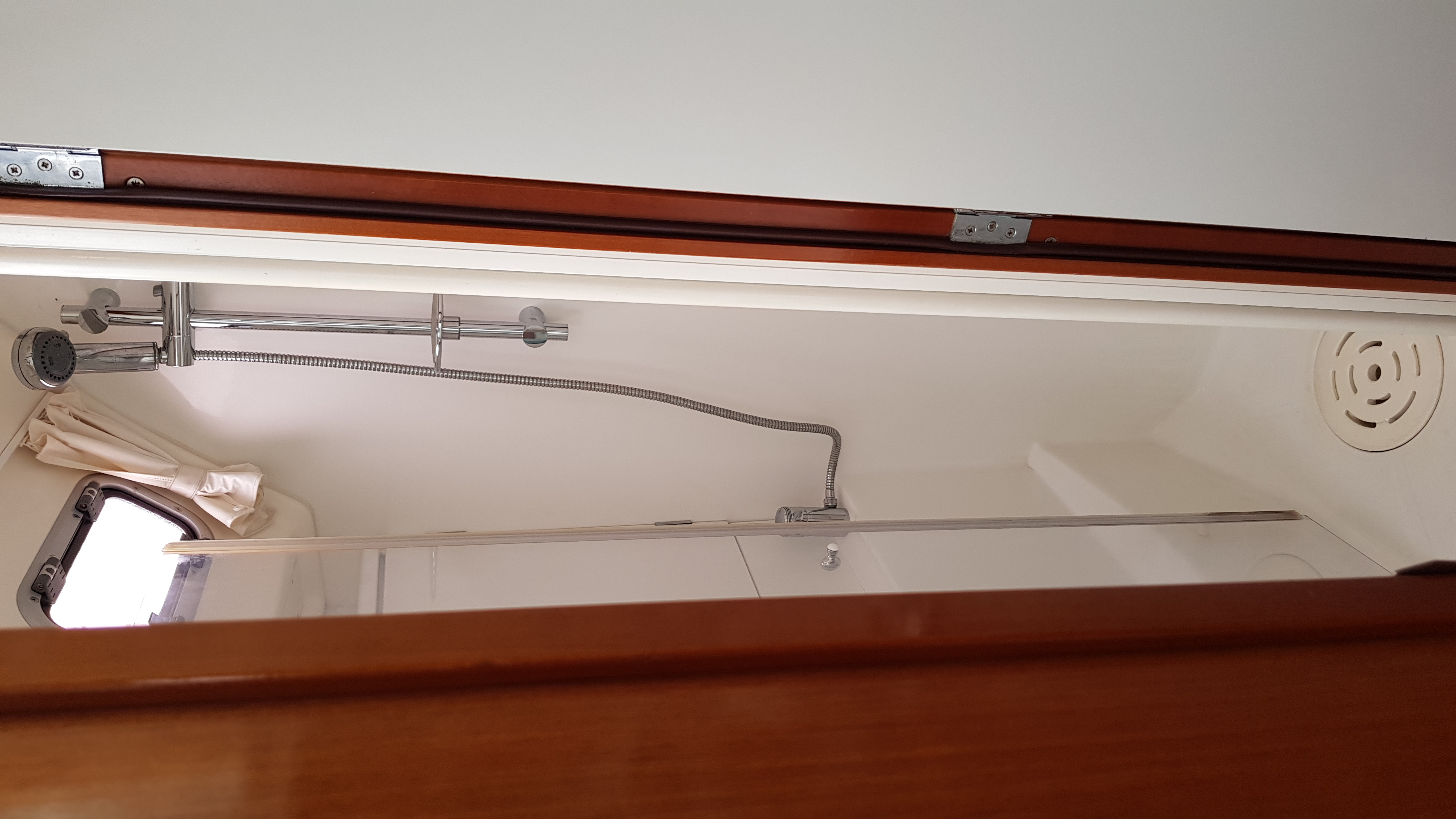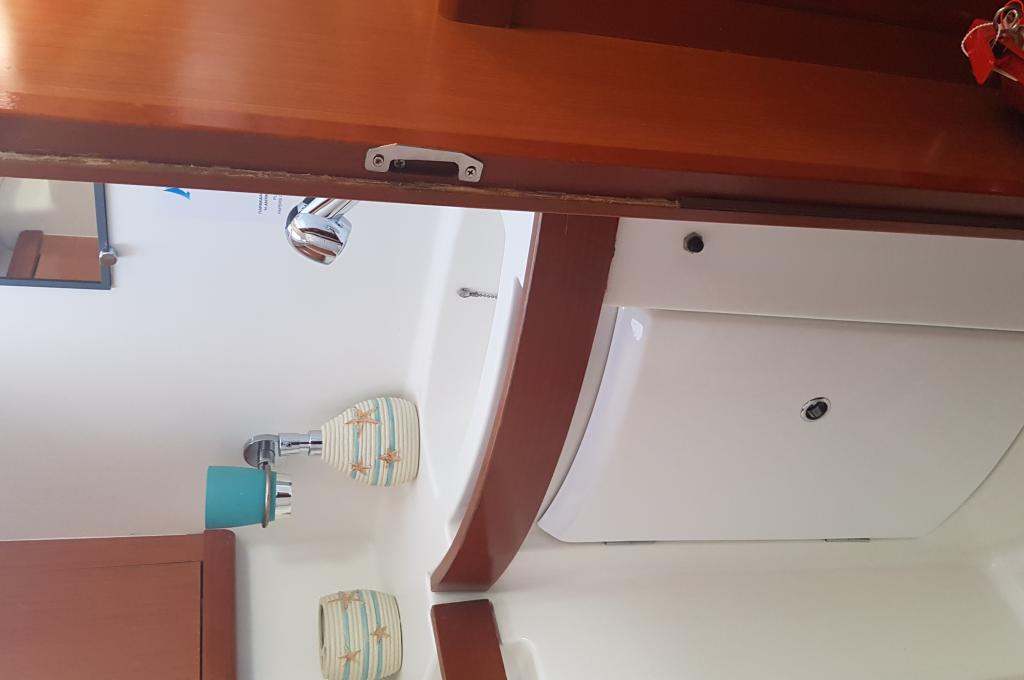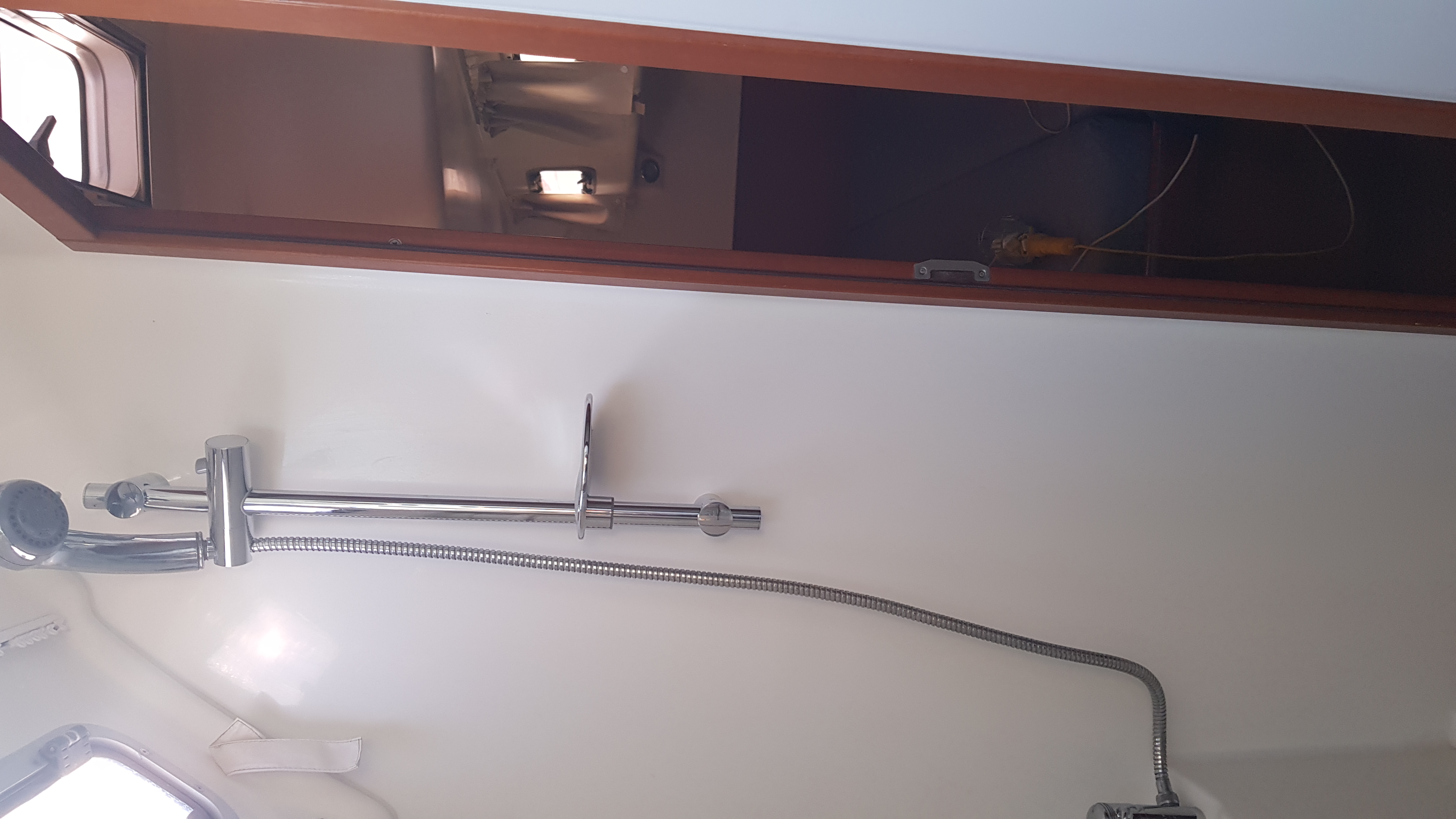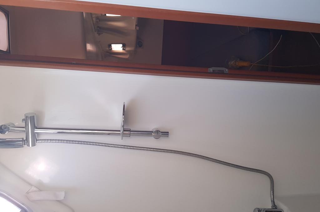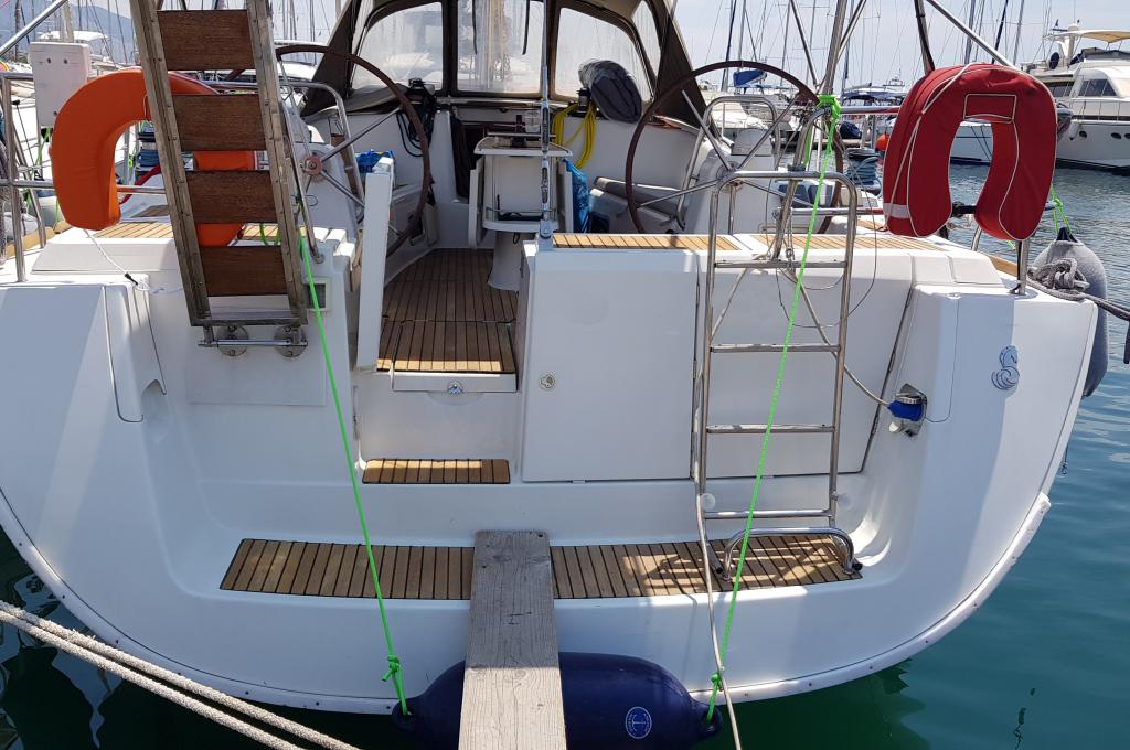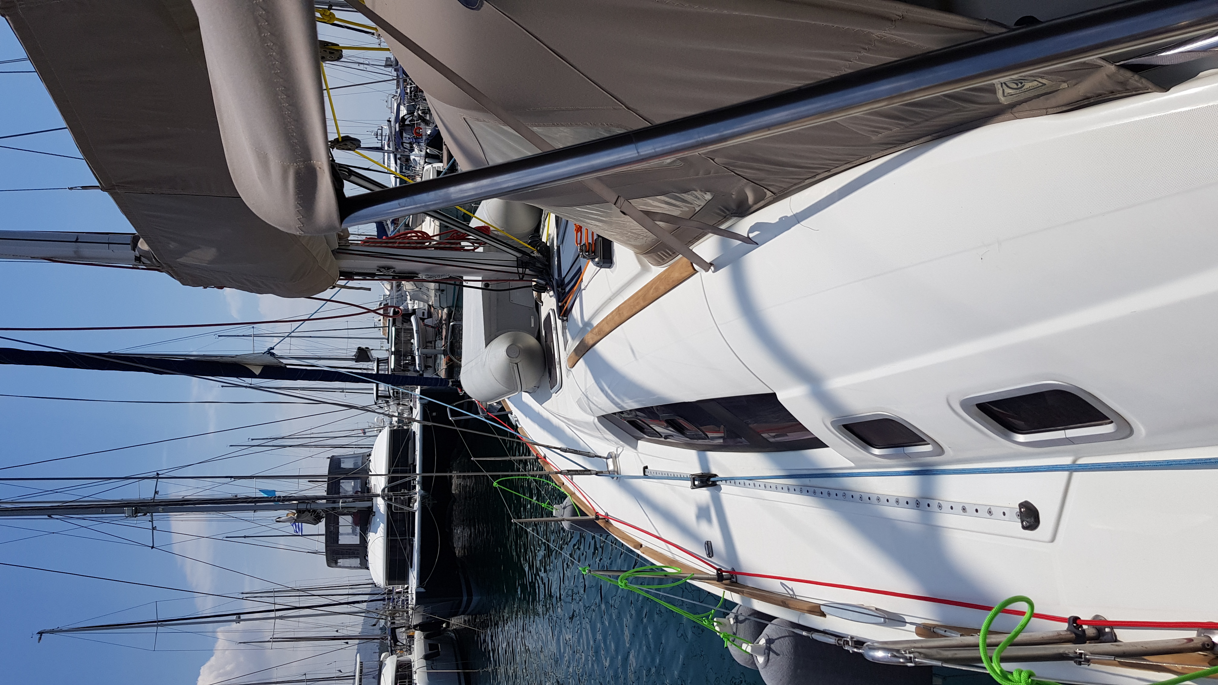 | Outside | 220 V-Landanschluss, Anker mit Kette, Biminitop, Bootshaken, Cockpitpolster, Cockpittisch, Davits, Deckbürste, Delta-Anker, Dieselkanister , elektr. Ankerwinsch, elektr. Winsch, Fender, Festmacherleinen, Gangway, Kunststoff-Eimer (Pütz), Schnorchelausrüstung, Solaranlage, Sprayhood, Teak auf Badeplattform, Teak im Cockpit, Wantenschneider, Wasserschlauch |