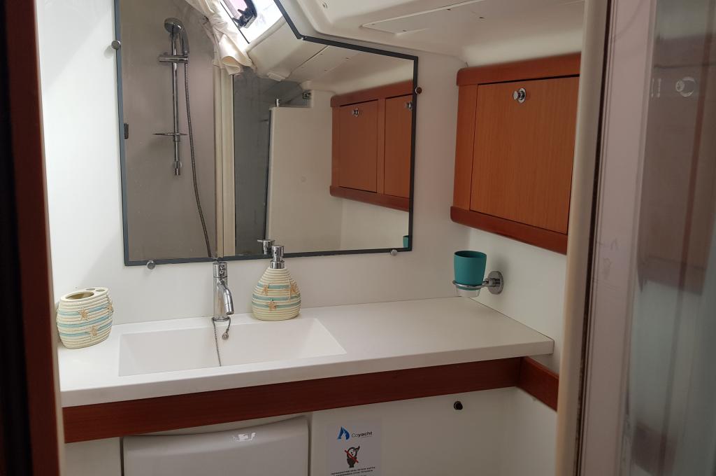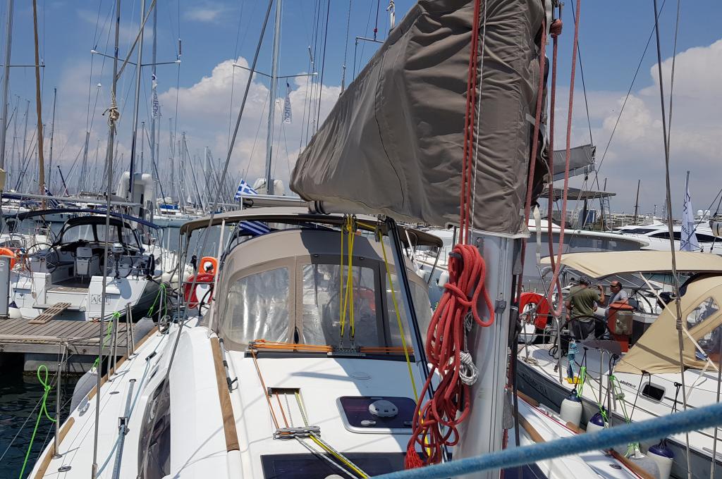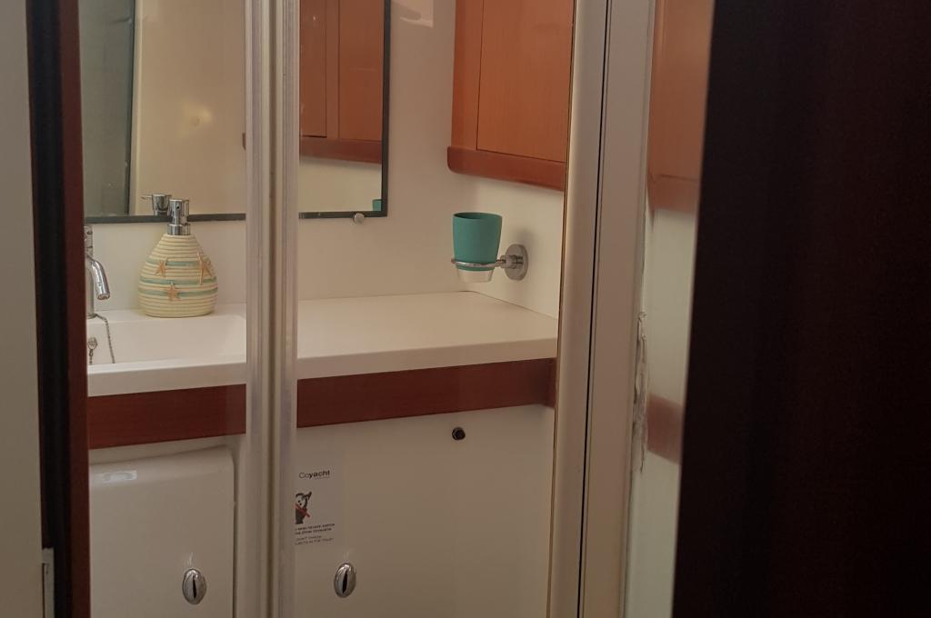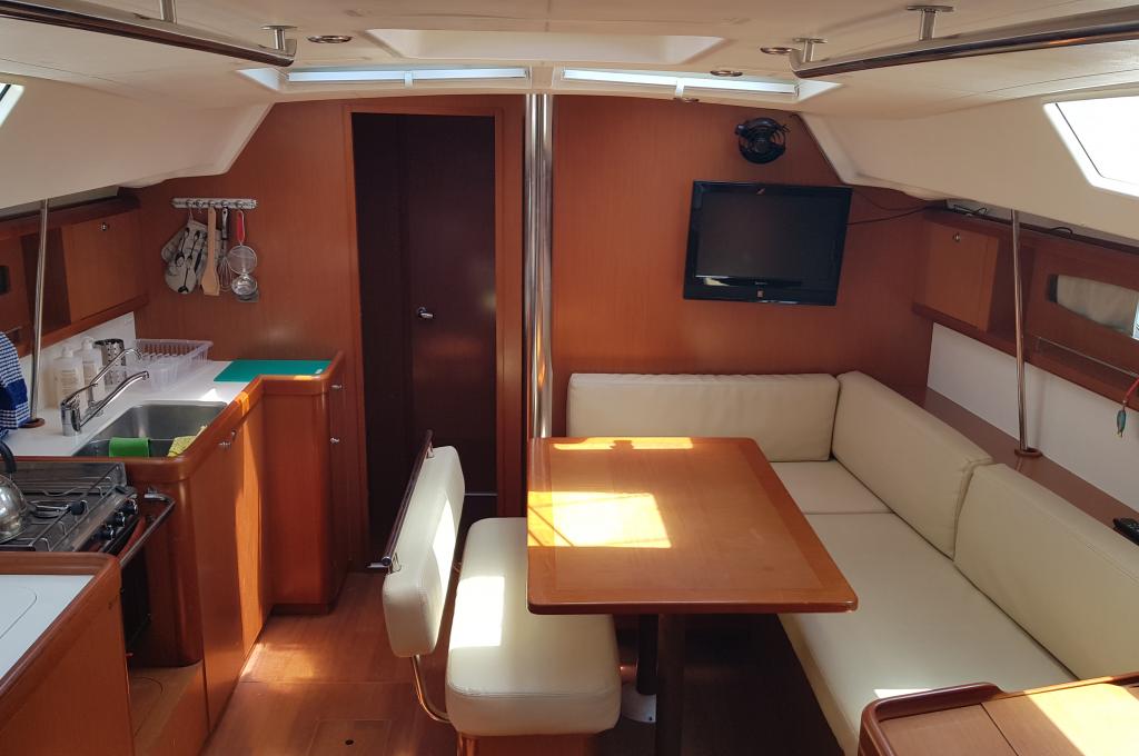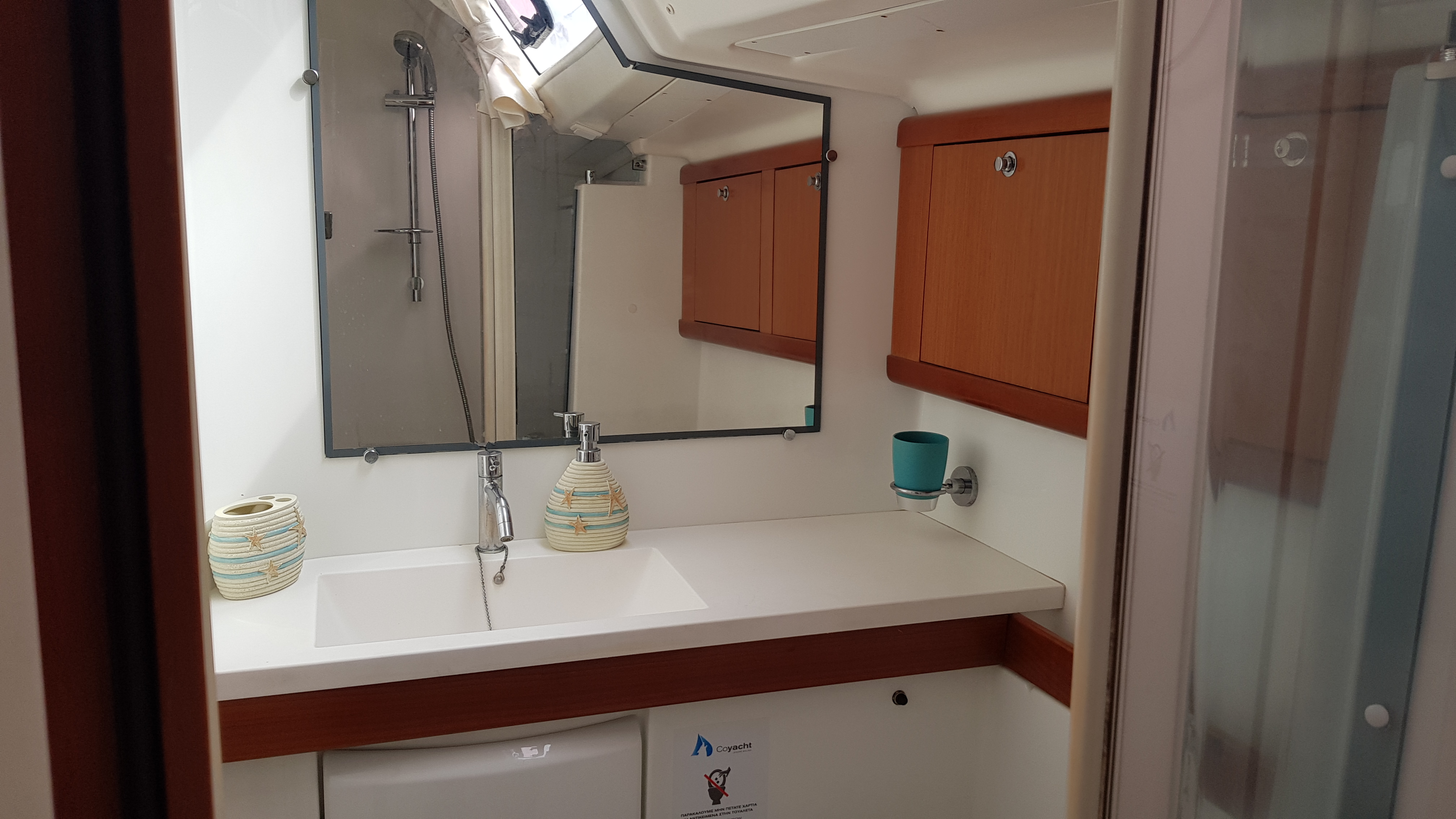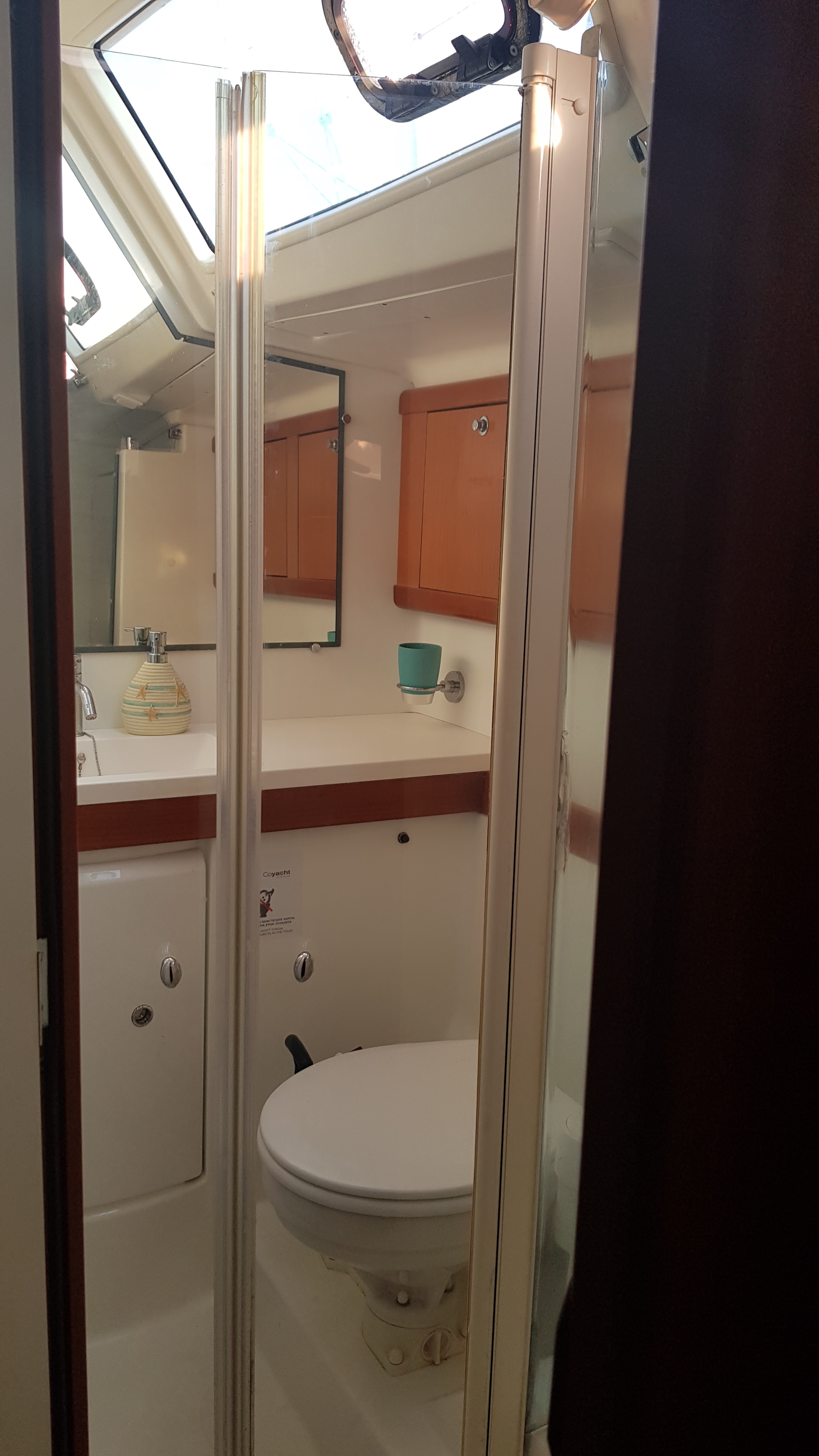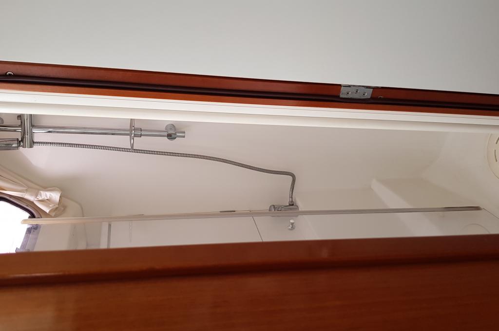 | Outside | 220 V-Landanschluss, Anker mit Kette, Biminitop, Bootshaken, Cockpitpolster, Cockpittisch, Davits, Deckbürste, Delta-Anker, Dieselkanister , elektr. Ankerwinsch, elektr. Winsch, Fender, Festmacherleinen, Gangway, Kunststoff-Eimer (Pütz), Schnorchelausrüstung, Solaranlage, Sprayhood, Teak auf Badeplattform, Teak im Cockpit, Wantenschneider, Wasserschlauch |