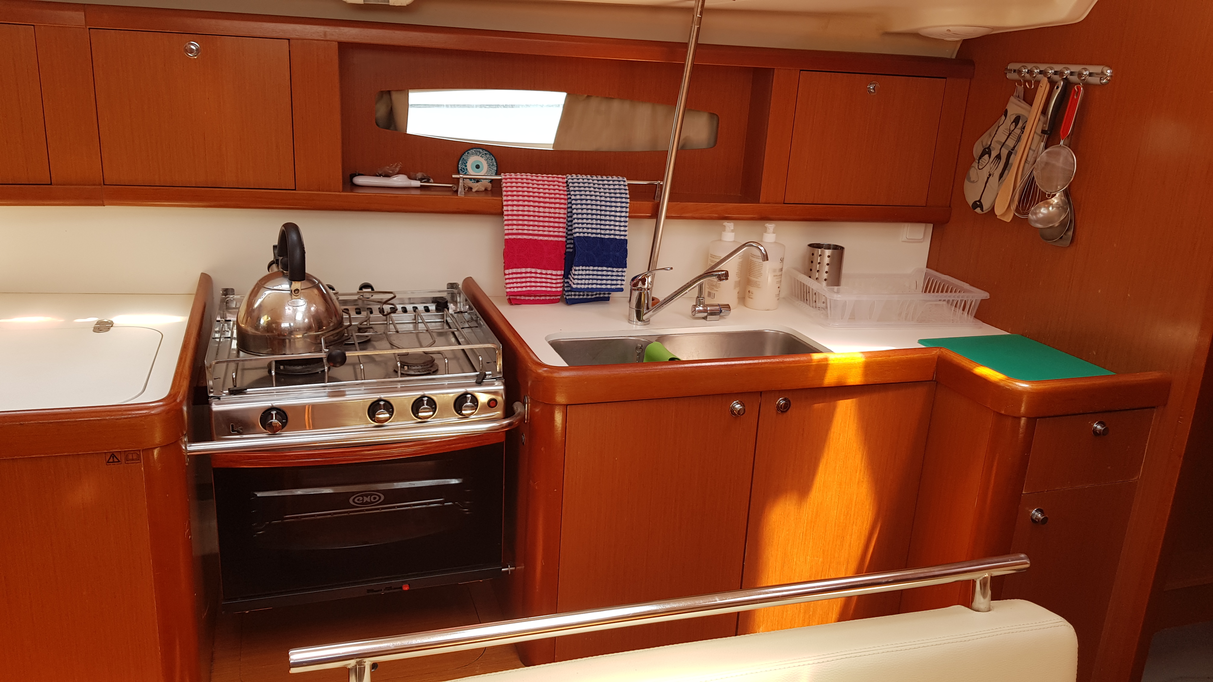 | Inside | Backofen, Gasherd, Klimaanlage, Kühlschrank, Landstromkabel, Pantryausstattung, Radio mit Bluetooth, Salontisch absenkbar, Sound System, USB Steckdosen in den Kabinen |