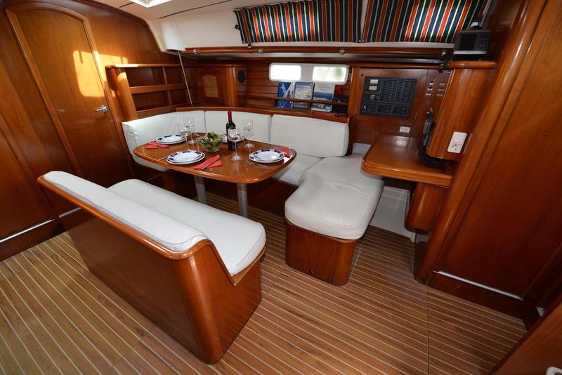 | Outside | Anker mit Kette, Aschenbecher, Badeleiter, Badeplattform, Biminitop, Bootshaken, Cockpitdusche, Cockpitlautsprecher, Cockpitpolster, Cockpittisch, Deckbürste, Dieselkanister , elektr. Ankerwinsch, Fender, Gangway, Segel-Flickwerkzeug, Solaranlage, Sprayhood, Vorhängeschloss, Wantenschneider, Wasserkanister , Wasserschlauch, Winschen |