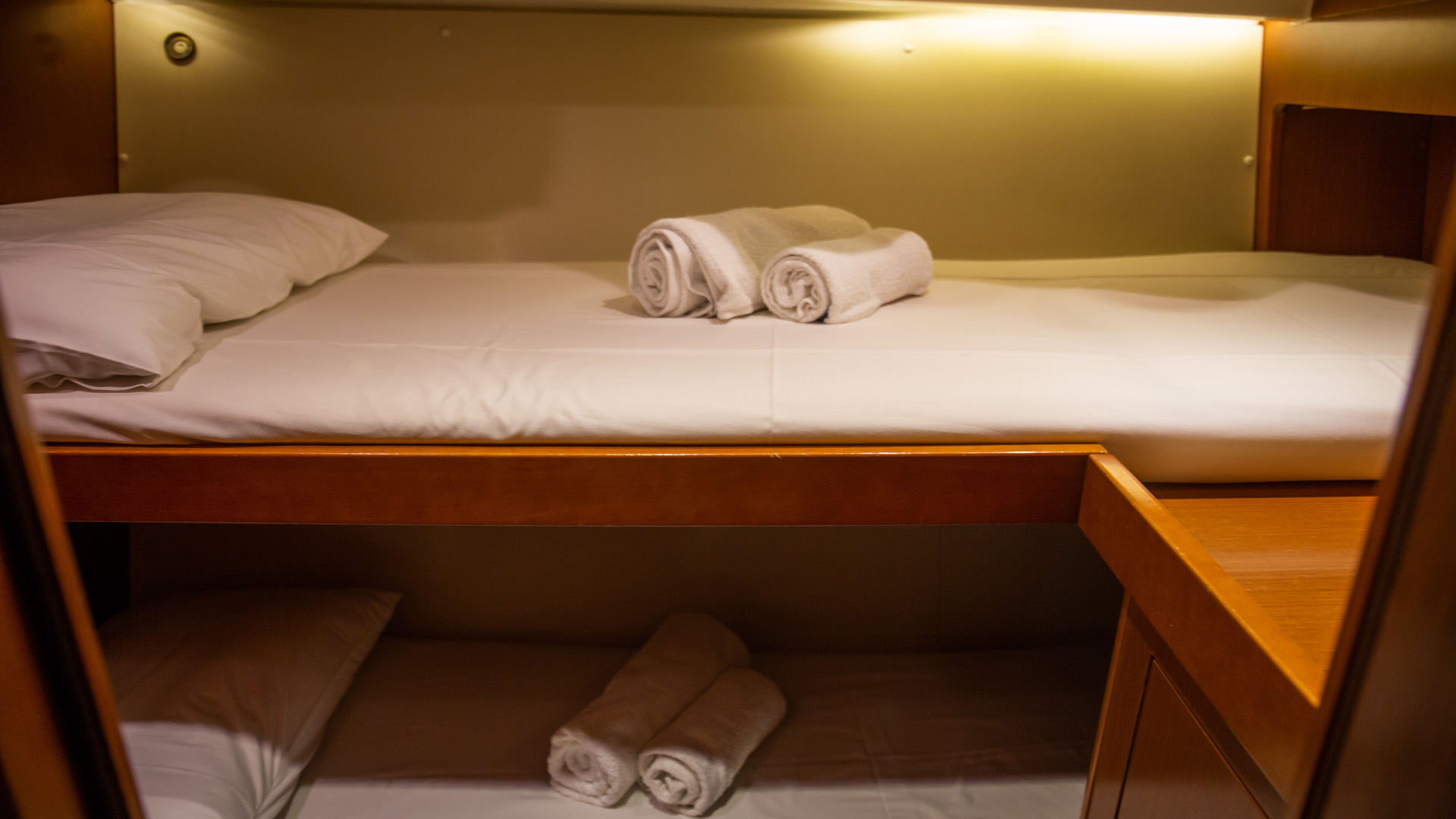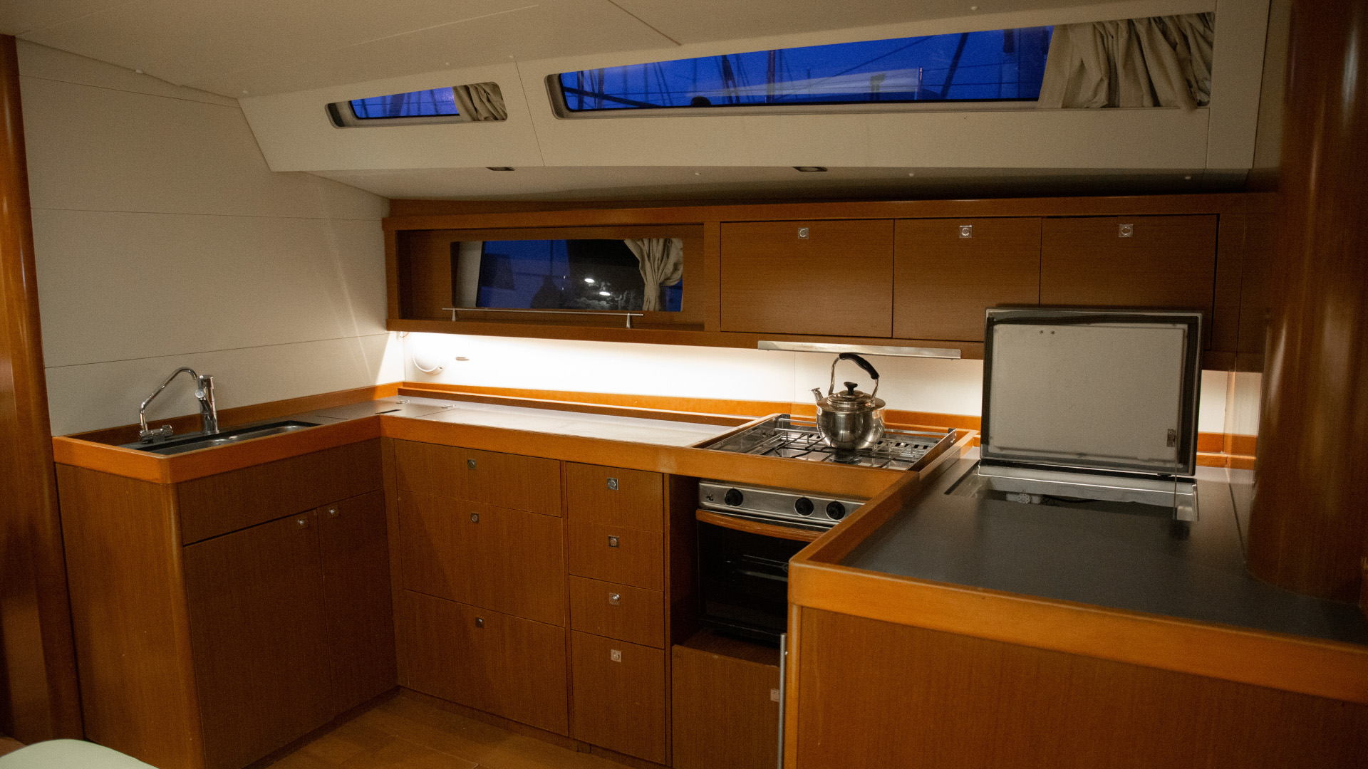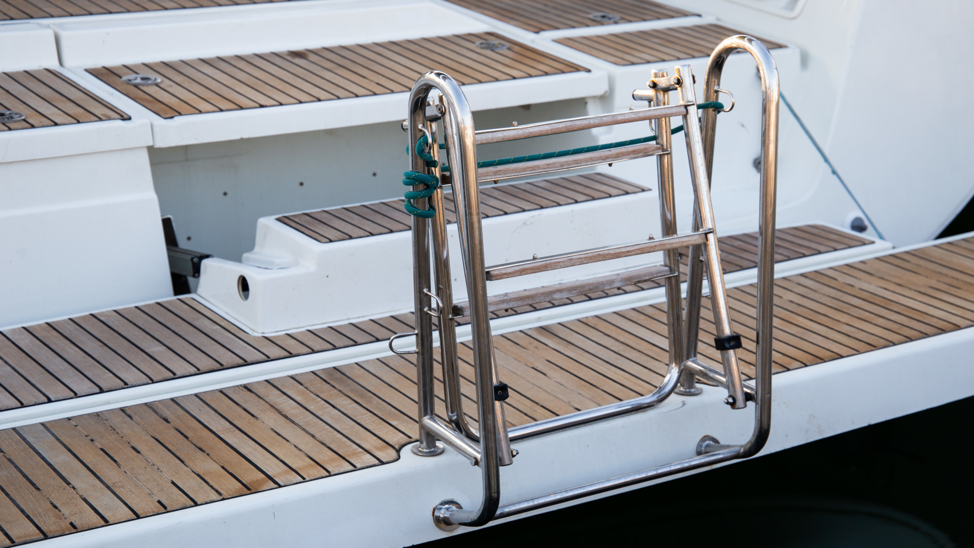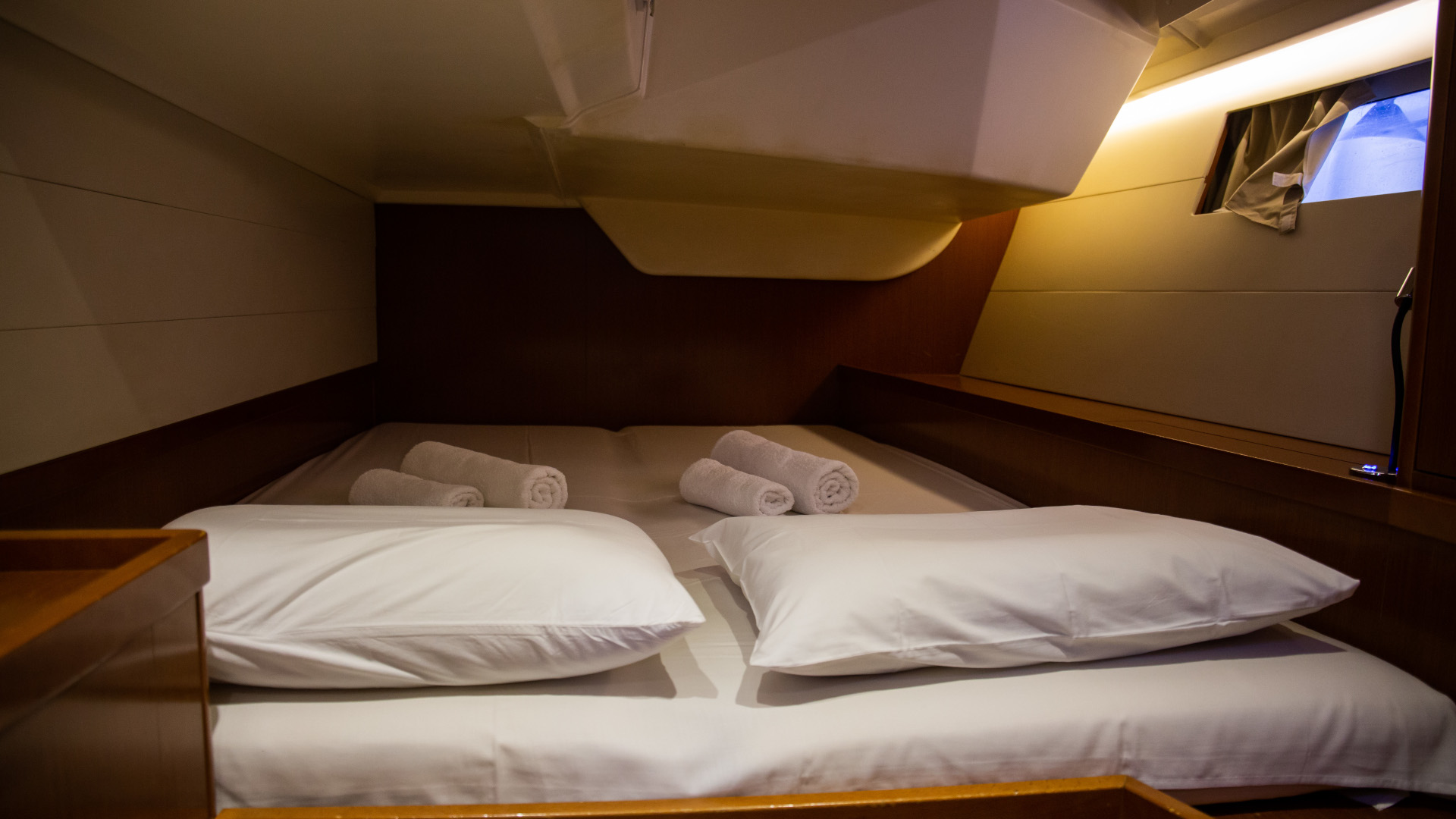 Outside 220 V-Landanschluss, Badeplattform, Biminitop, Cockpitdusche, Cockpitlautsprecher, Cockpitpolster, Cockpittisch, elektr. Ankerwinsch, Festmacherleinen, Gangway, Schnorchelausrüstung, Solaranlage, Sprayhood, Teak im Cockpit
