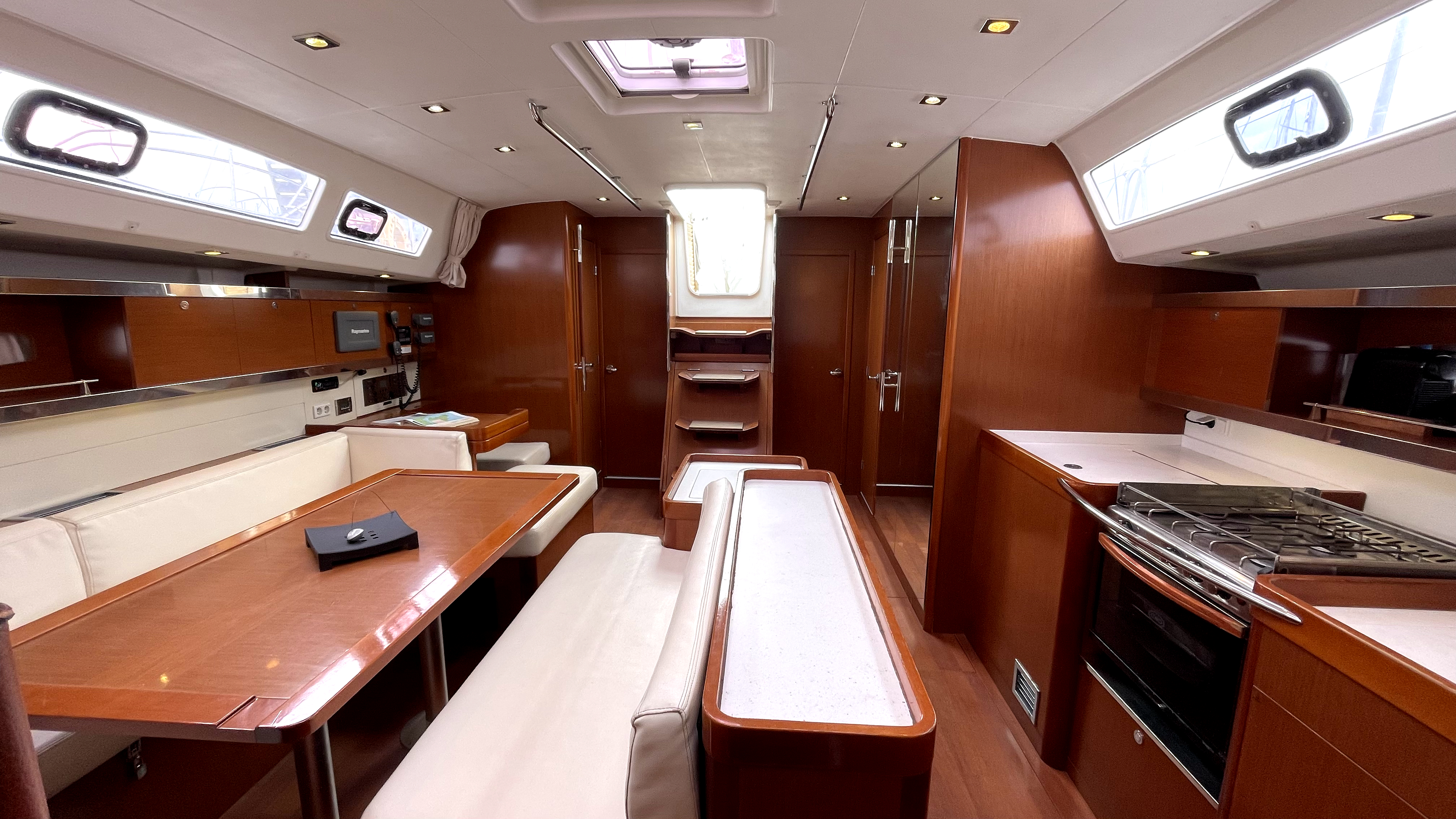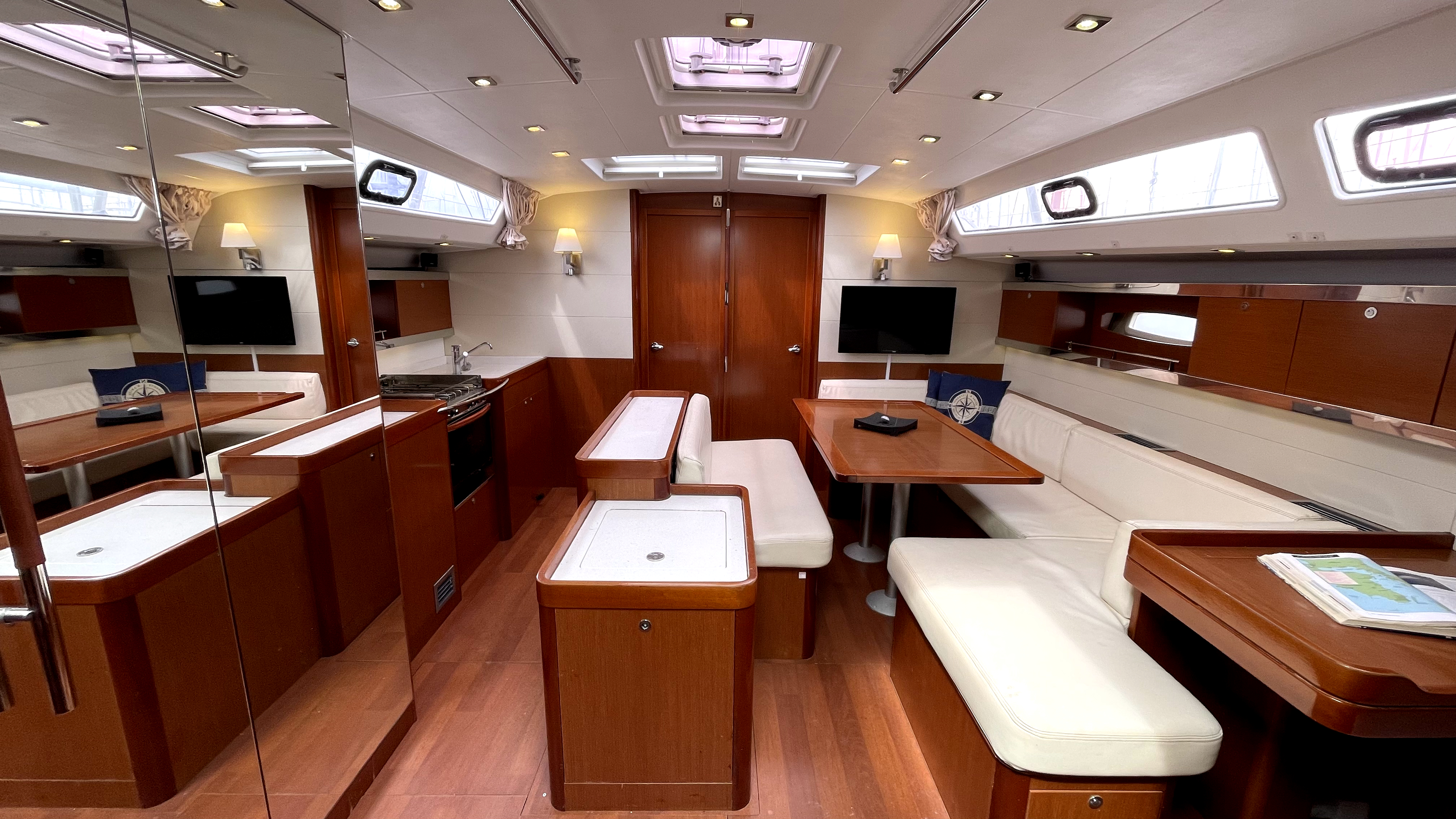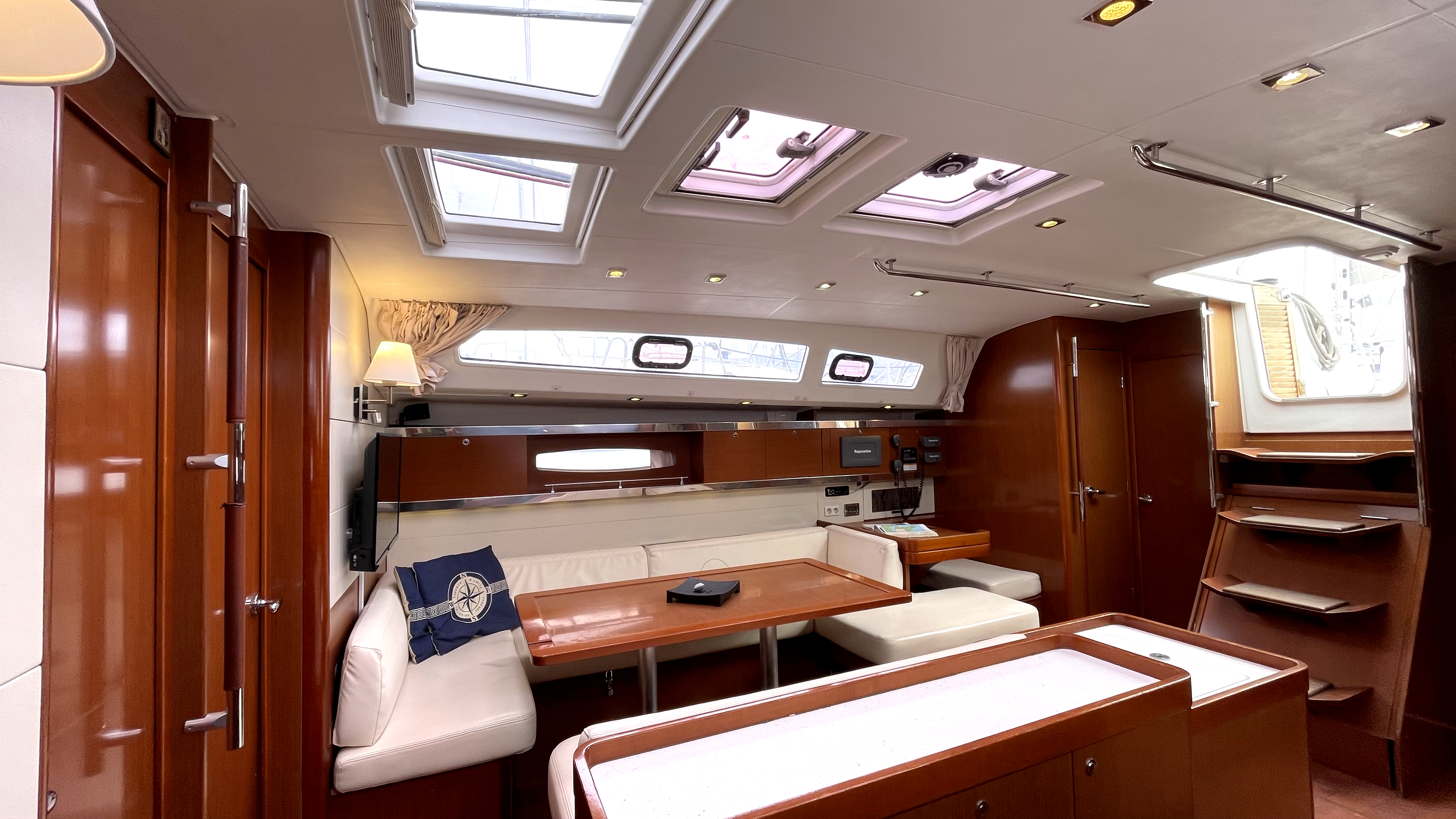 | Navigation | Echolot, GPS mit Kartenplotter im Cockpit, GPS mit Kartenplotter im Salon, Navigationsbesteck, Seekarten, Sumlog, Windmesser |