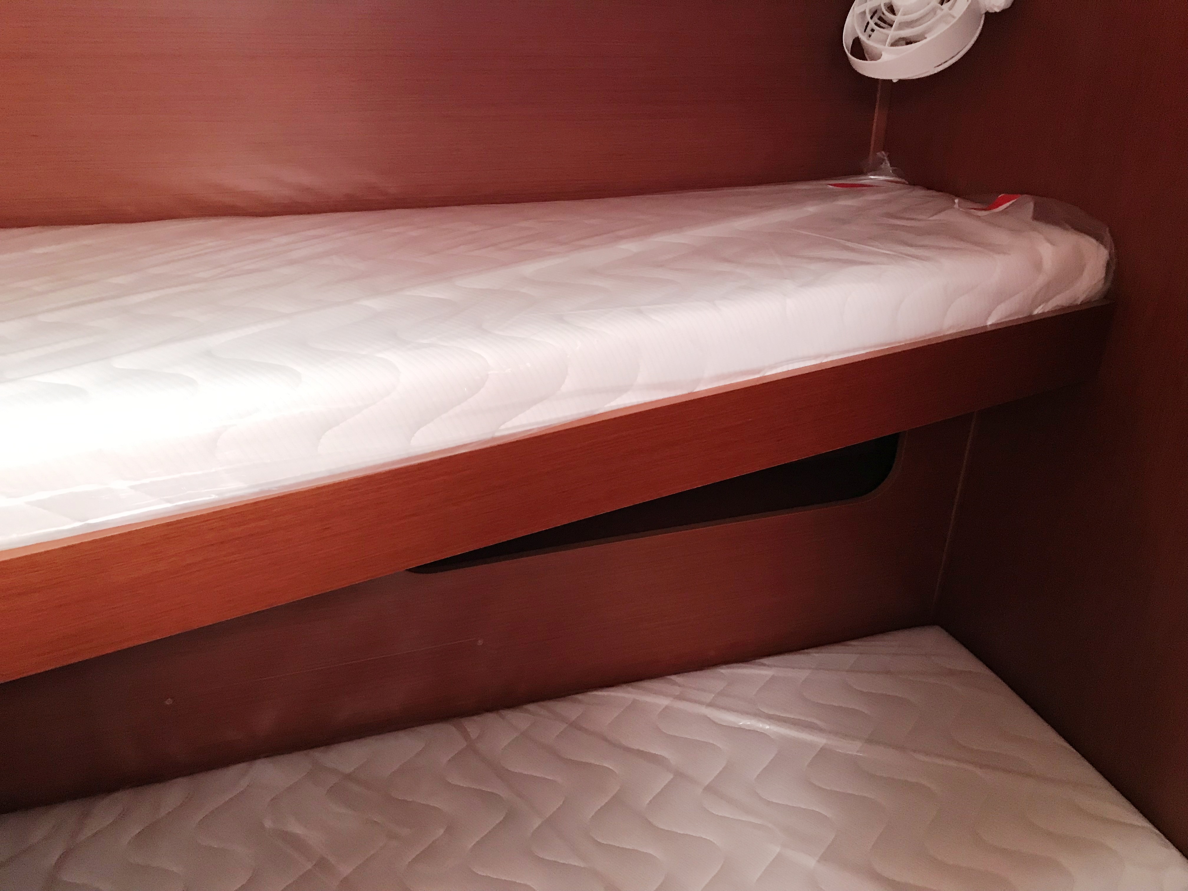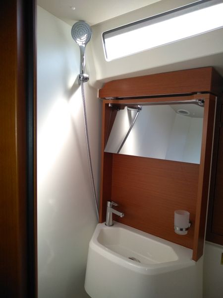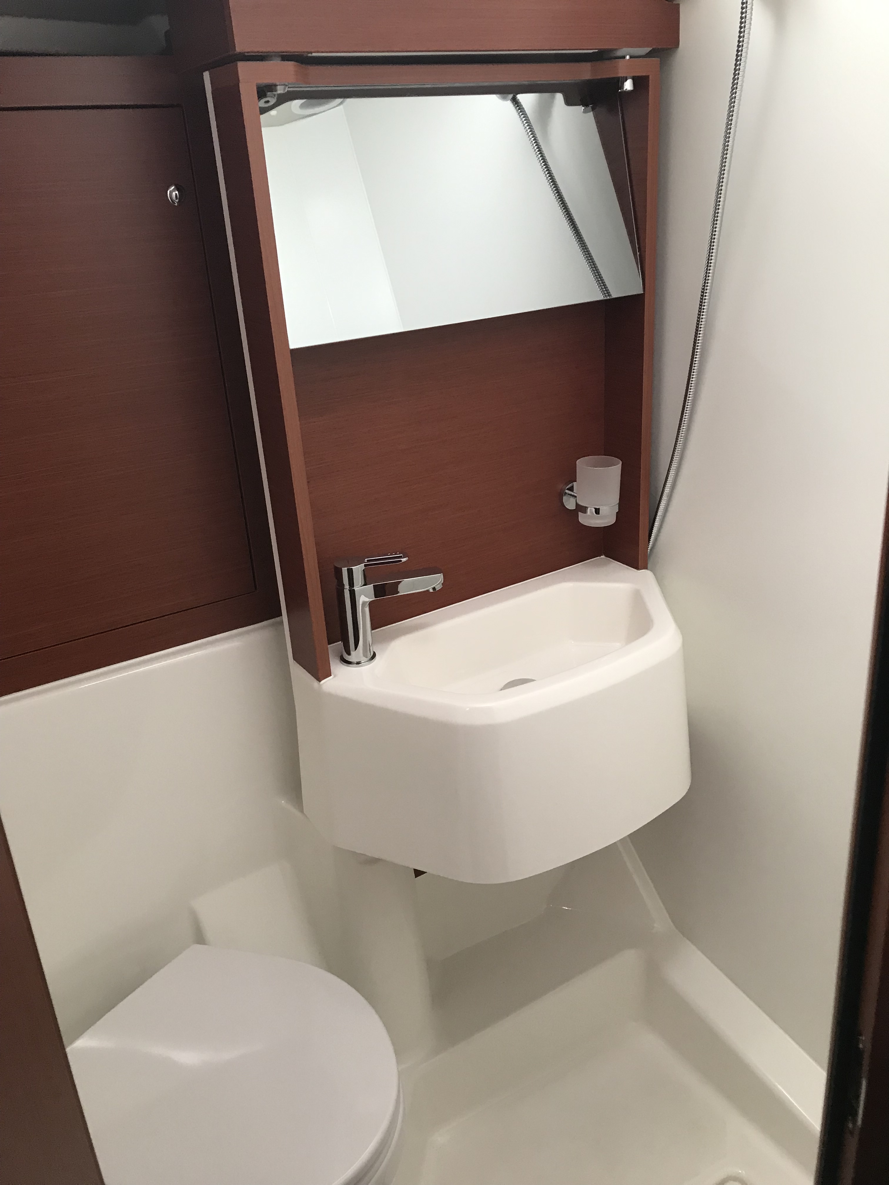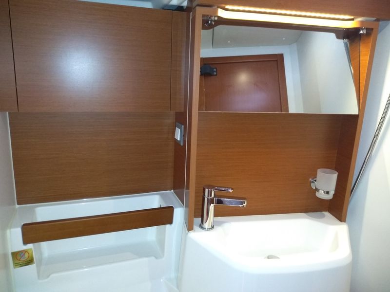 | Safety | Autopilot, Bootsmannstuhl, Bordapotheke, Bordwerkzeug, Bugstrahlruder, elektr. Bilgepumpe, Feststoffschwimmwesten, Feuerlöscher, Handbilgepumpe, Leuchtboje, Lifebelts, Nebelhorn, Notpinne, Notsignale, Radarreflektor, Reparaturset für Beiboot, Reserve-Motoröl, Rettungsinsel, Rettungskragen, Taschenlampe, UKW-Funk, Zweitanker |