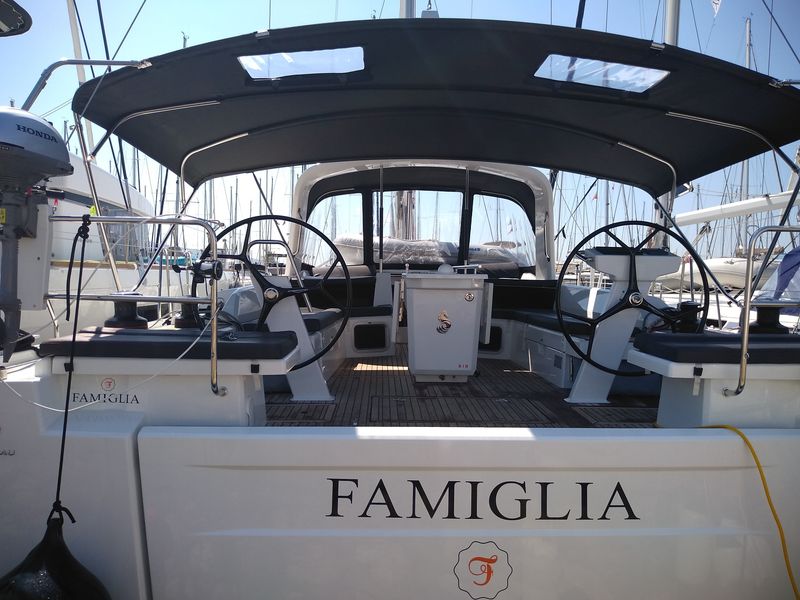 | Outside | Anker mit Kette, Badeleiter, Biminitop, Bootshaken, Cockpitdusche, Cockpitpolster, Deckbürste, Dieselkanister , elektr. Ankerwinsch, Fender, Festmacherleinen, Gangway, Kunststoff-Eimer (Pütz), Sprayhood, Wantenschneider, Winschen |