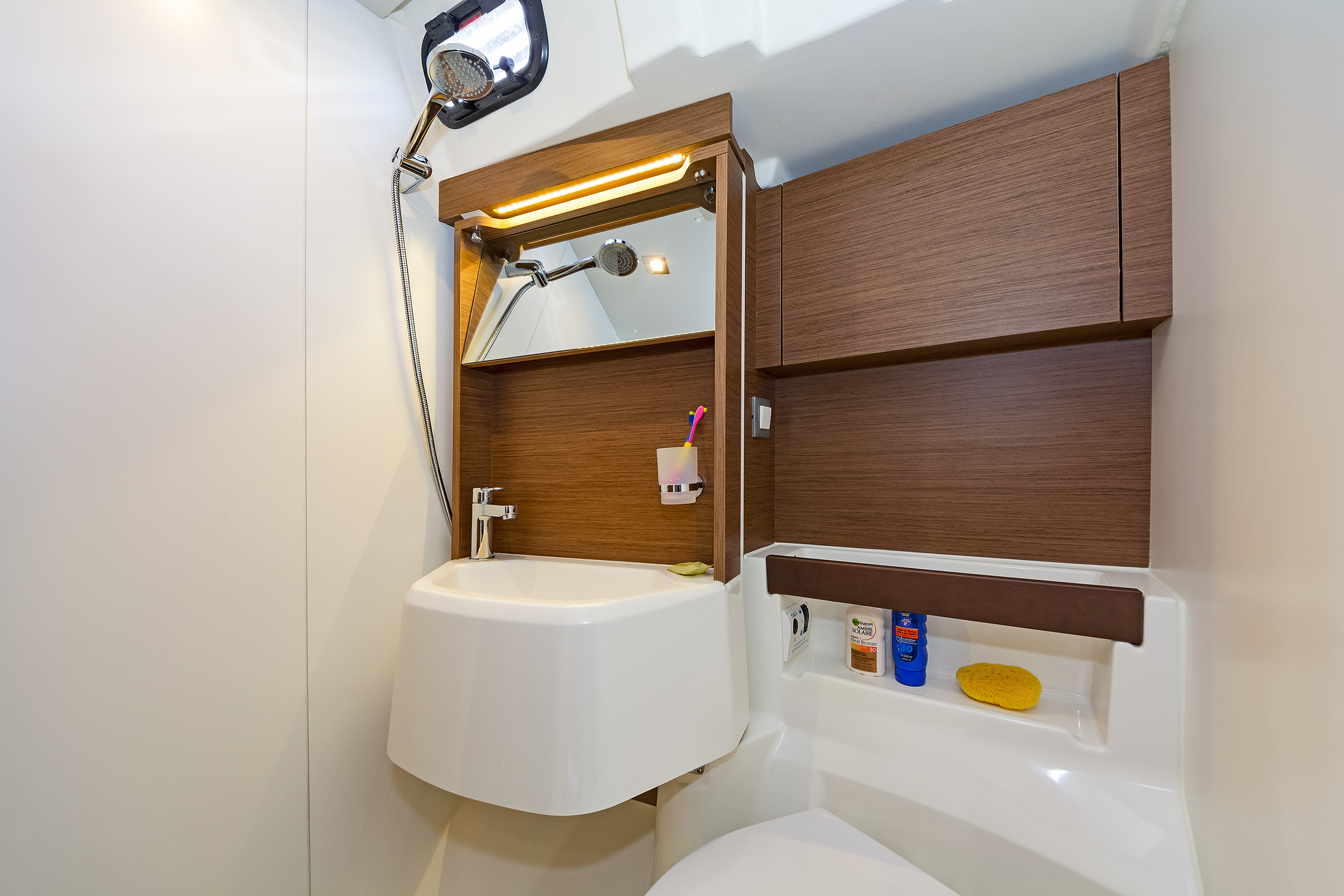 | Outside | Badeleiter, Badeplattform, Biminitop, Cockpitlautsprecher, Cockpitpolster, elektr. Winsch, Gangway, Solaranlage, Sprayhood |