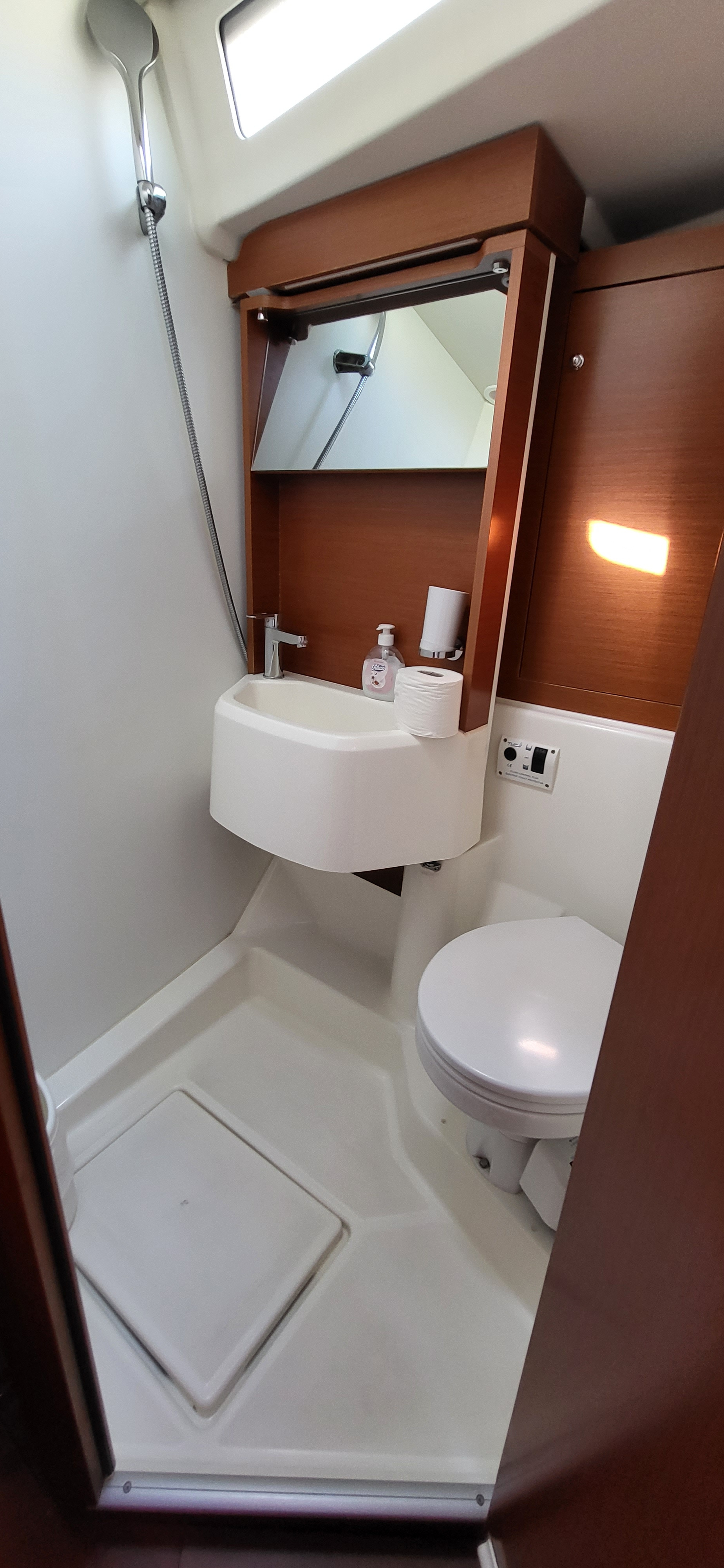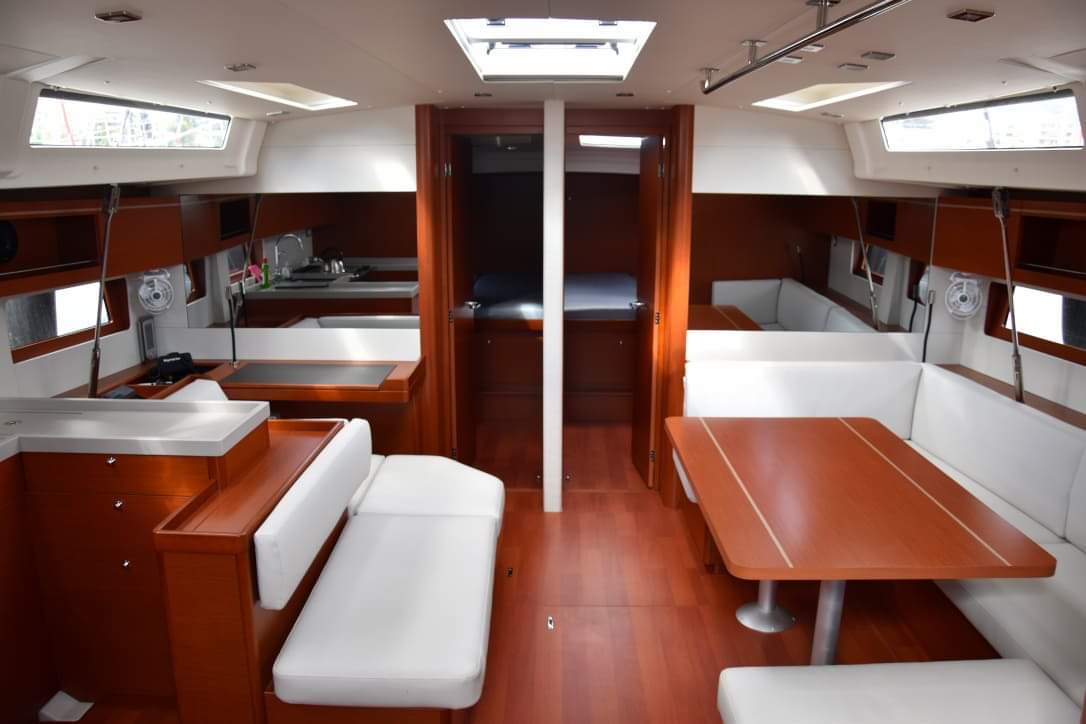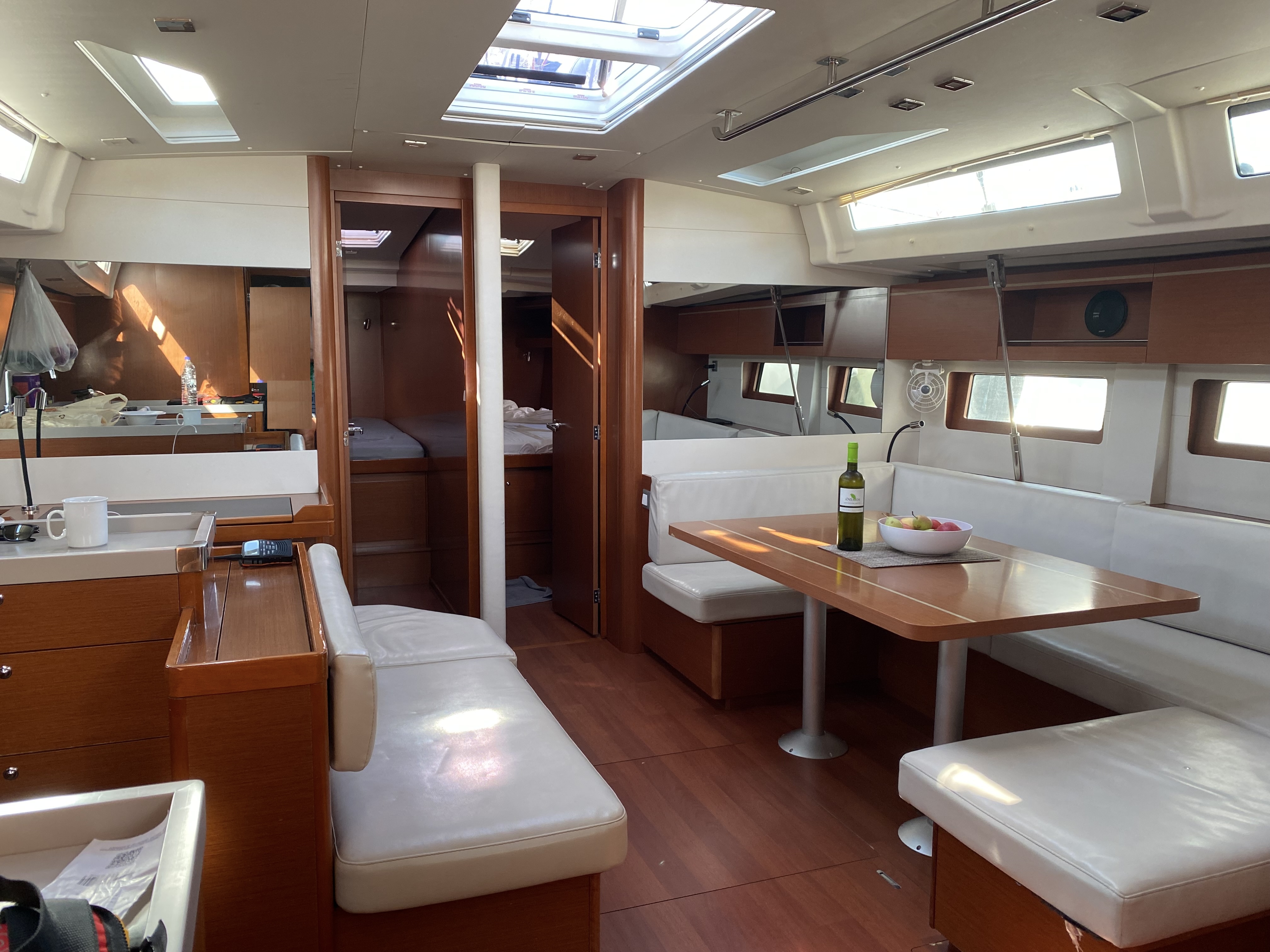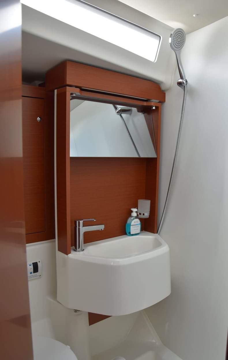 | Inside | Eisbox, Frischwasserpumpe, Inverter 12V/220V, Kühlbox, Kühlschrank, Ladegerät, Lautsprecher im Salon, LED-Innenleuchten, Pantryausstattung, Salontisch absenkbar, Spülbecken, Ventilatoren in Salon und Kabinen, Warmwasser, WC (elektr.) |