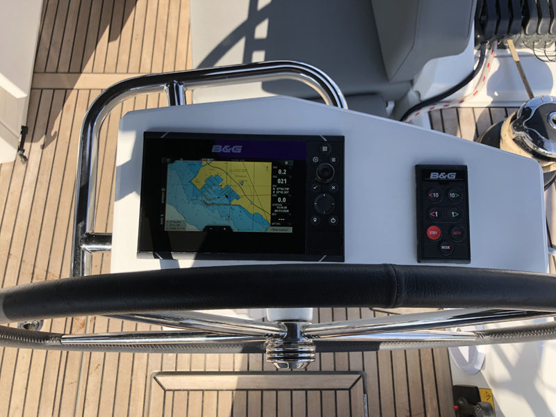 | Navigation | Echolot, GPS mit Kartenplotter im Cockpit, GPS mit Kartenplotter im Salon, Navigationsbesteck, Seekarten, Sumlog, Windmesser |