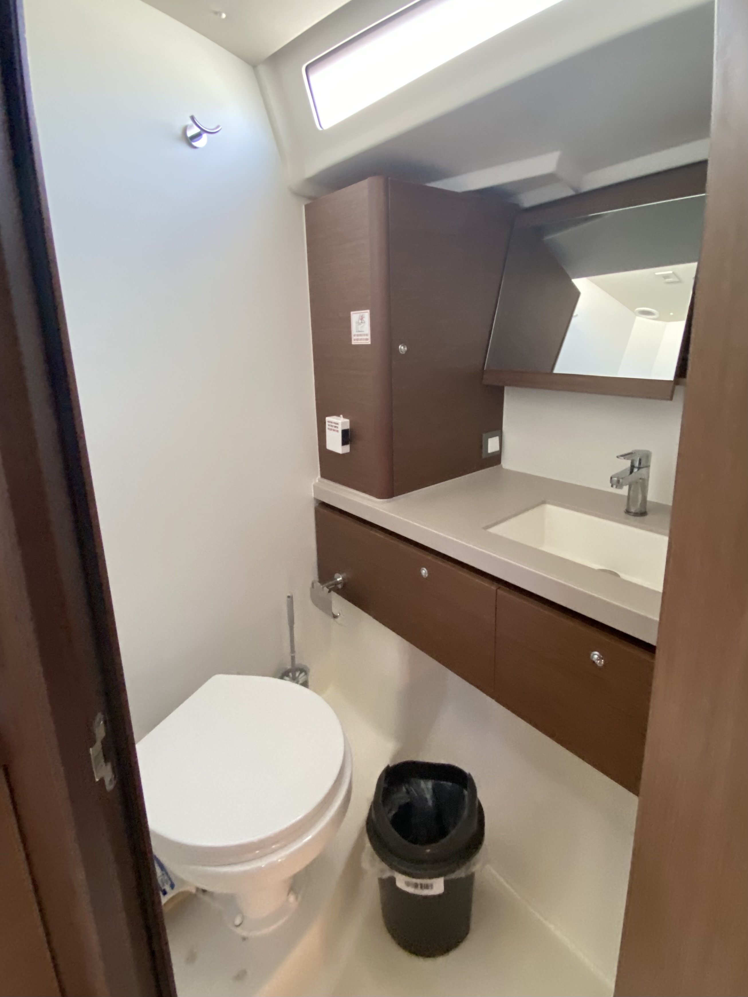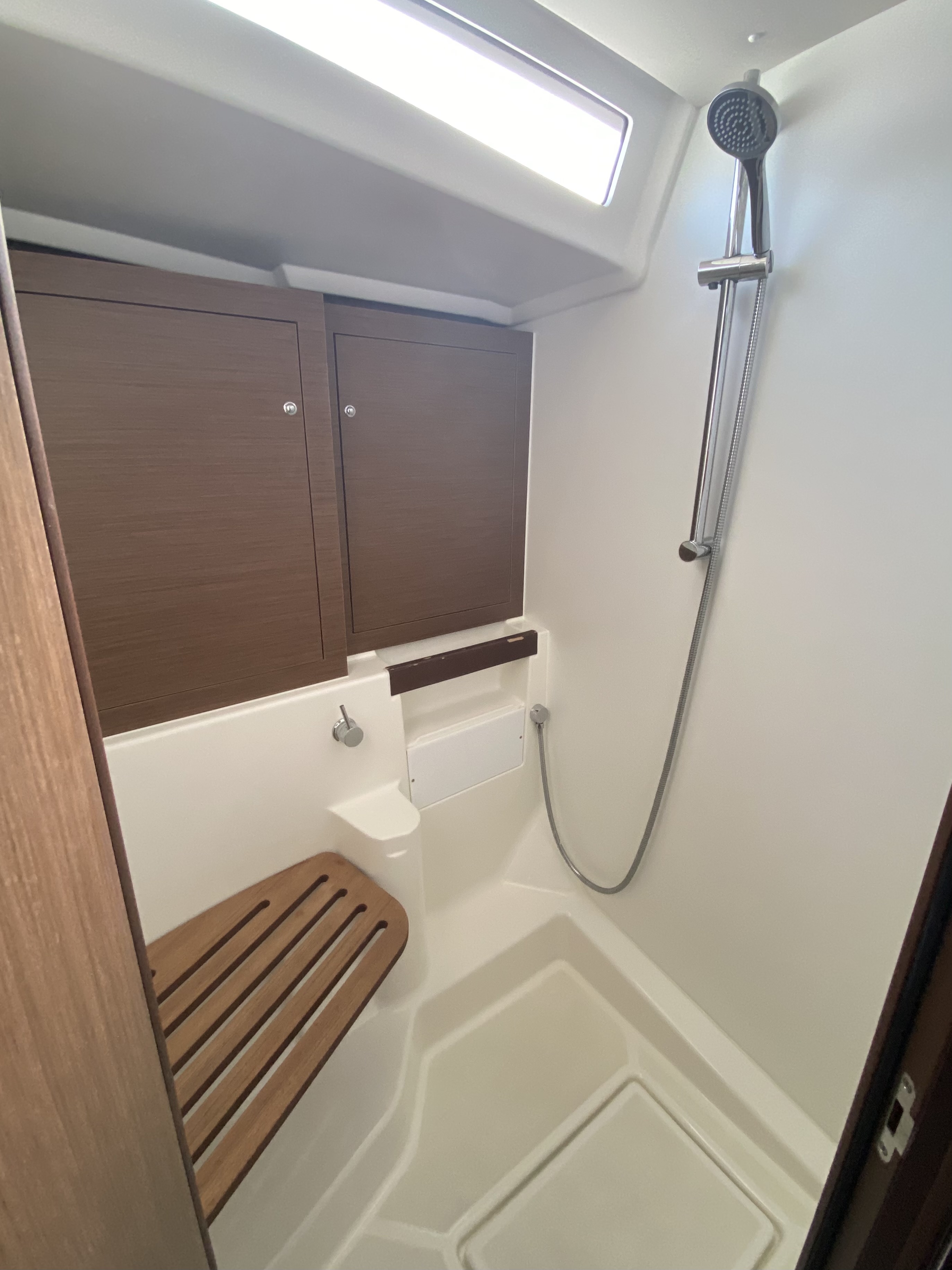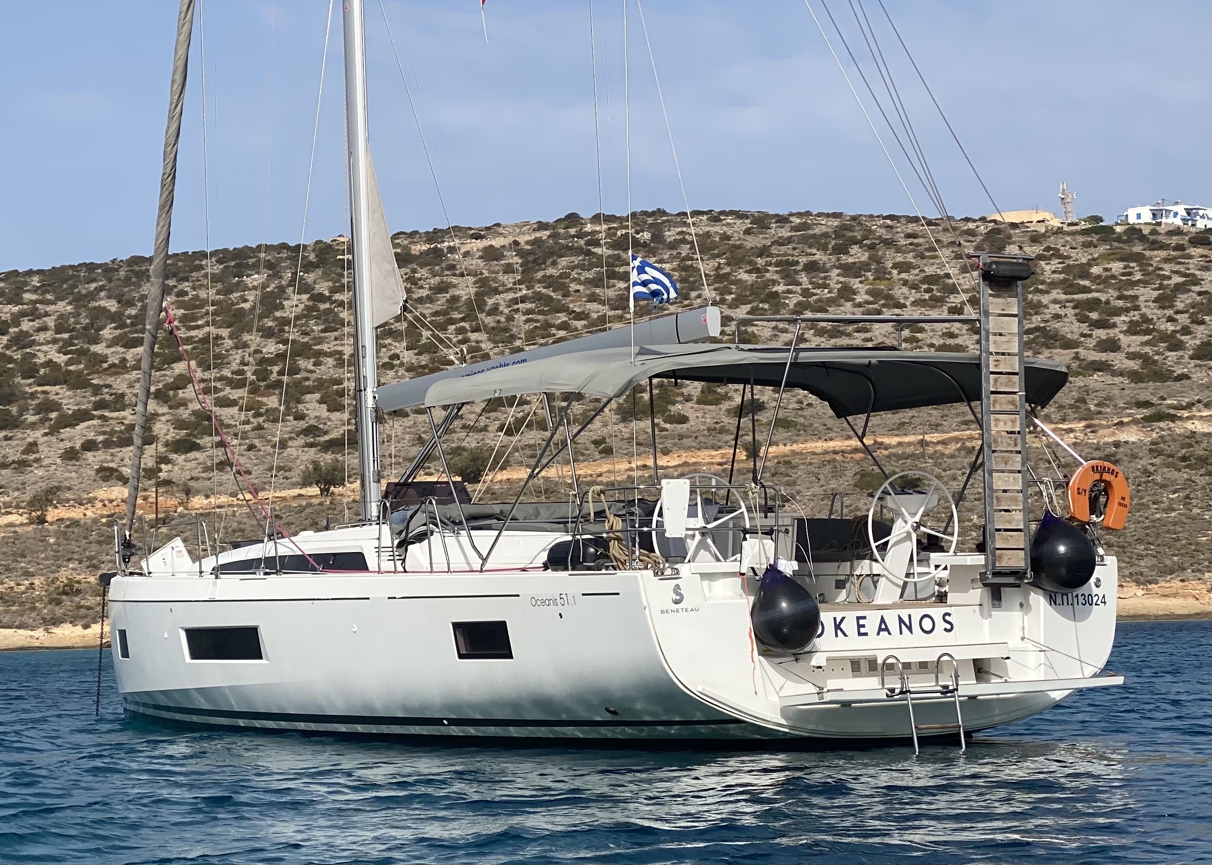 | Outside | 220 V-Landanschluss, Anker mit Kette, Badeleiter, Badeplattform, Biminitop, Bootshaken, Cockpitlautsprecher, Cockpitleuchte, Cockpitpolster, Deckbürste, elektr. Ankerwinsch, Fender, Festmacherleinen, Gangway, Kunststoff-Eimer (Pütz), Segel-Flickwerkzeug, Solaranlage, Sprayhood, Treibanker, Wantenschneider, Wasserschlauch, Winschen |