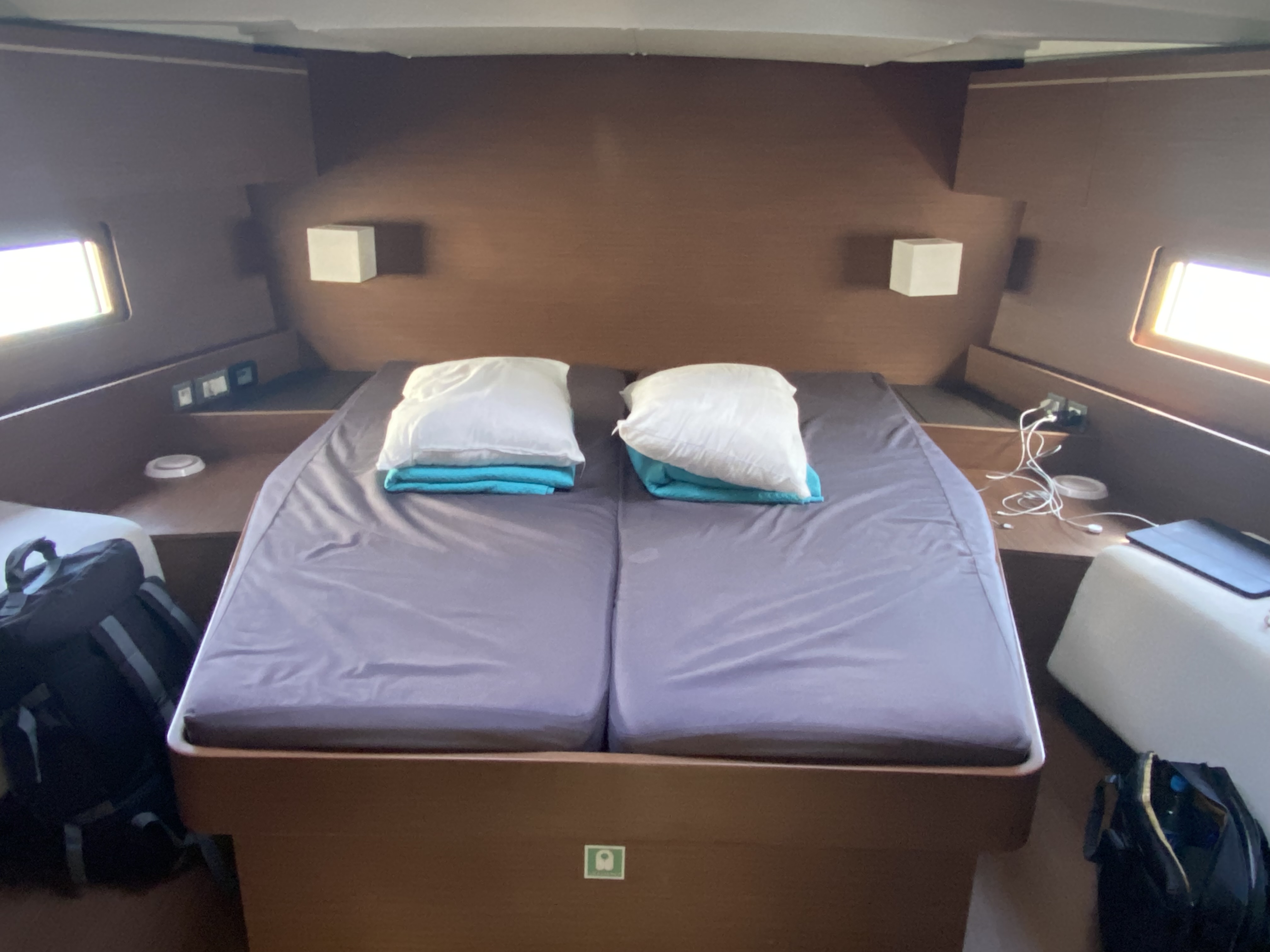 | Safety | Autopilot, Bordapotheke, Bordwerkzeug, Bugstrahlruder, Feststoffschwimmwesten, Feuerlöscher, Flaggen, Navigationslichter, Nebelhorn, Notpinne, Notsignale, Radarreflektor, Reparaturset für Beiboot, Reserve-Motoröl, Rettungsinsel, Rettungskragen, Sicherheitsgurt, Signalspiegel, Taschenlampe, UKW-Funk |