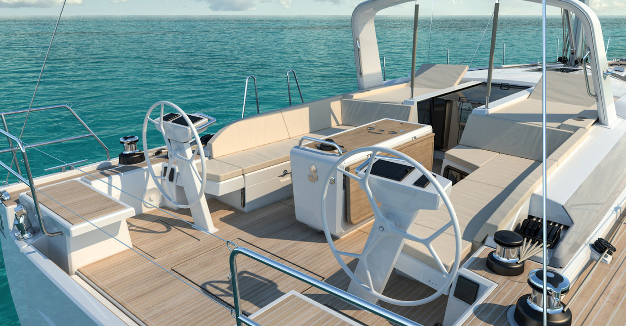 | Outside | 220 V-Landanschluss, Anker mit Kette, Badeleiter, Badeplattform (hydr.), Biminitop, Bootshaken, Cockpitlautsprecher, Cockpitleuchte, Cockpitpolster, Cockpittisch, Deckbürste, elektr. Ankerwinsch, Fender, Festmacherleinen, Gangway, Kunststoff-Eimer (Pütz), Segel-Flickwerkzeug, Solaranlage, Sprayhood, Treibanker, Wantenschneider, Wasserschlauch, Winschen |