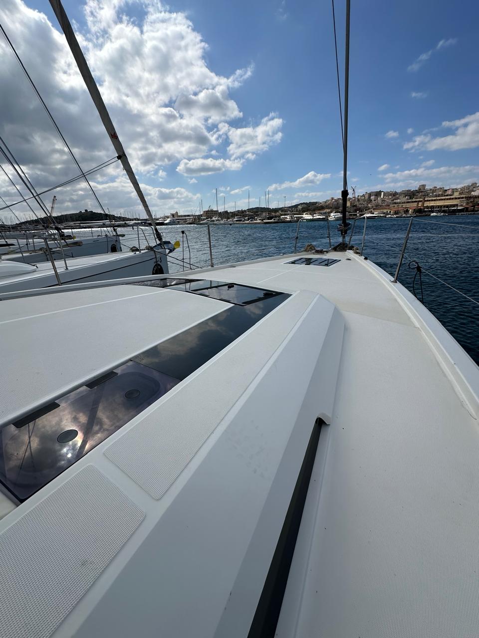 Outside Anker mit Kette, Badeplattform, Biminitop, Cockpitdusche, Cockpitleuchte, Cockpitpolster, Cockpittisch, elektr. Ankerwinsch, Schnorchelausrüstung, Sonnendeck, Sprayhood, Winschen