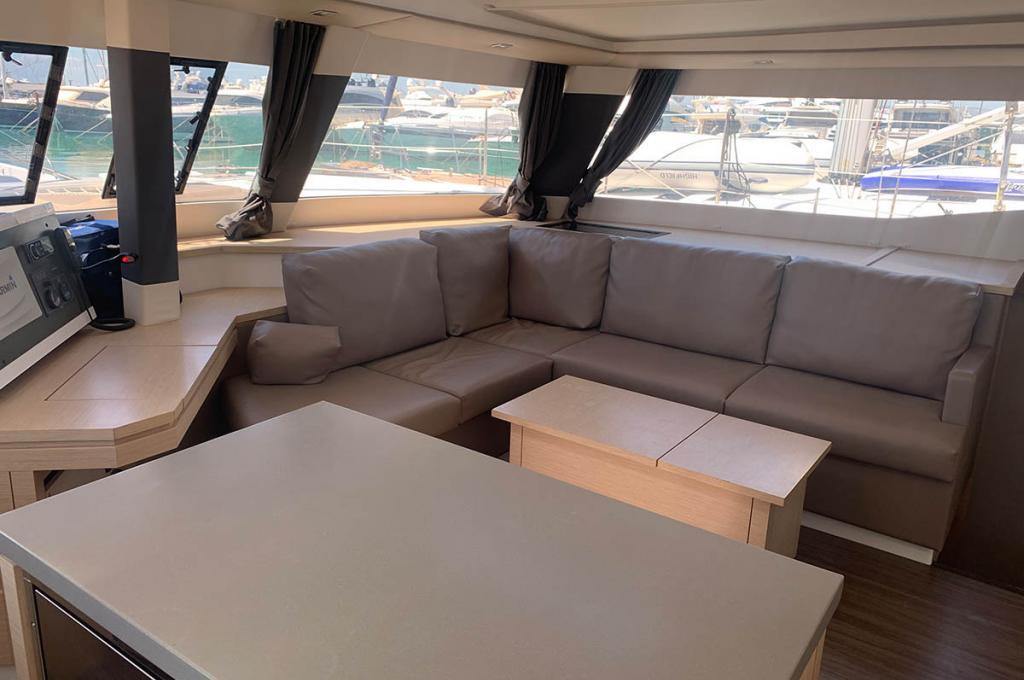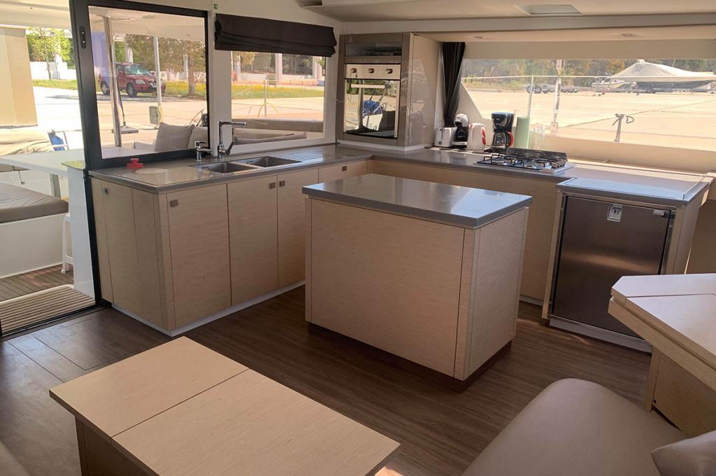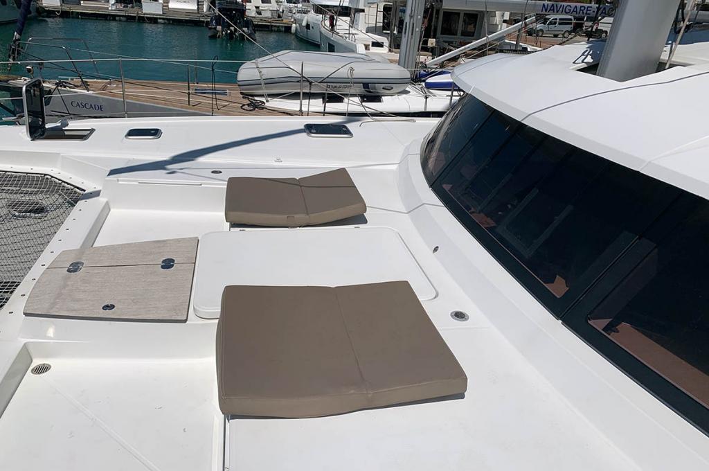 | Inside | Fäkalientank, FUSION Sound System, Gasherd, Gefrierschrank, Generator, Geschirrspüler, Heizung, Inverter 12V/220V, Kaffeemaschine, Klimaanlage (ohne Landstrombedarf), Kühlschrank, Ladegerät, Landstromkabel, Lautsprecher im Salon, Mokkakanne, Pantryausstattung, Radio mit CD, Ventilatoren in Kabinen, Wasserkocher, WC (elektr.) |
