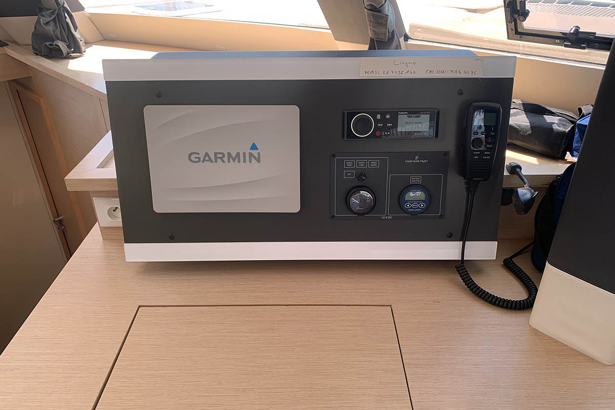 | Safety | Autopilot, Bootsmannstuhl, Bordapotheke, elektr. Bilgepumpe, Navigationslichter, Rettungswesten, UKW-Funk m. DSC |