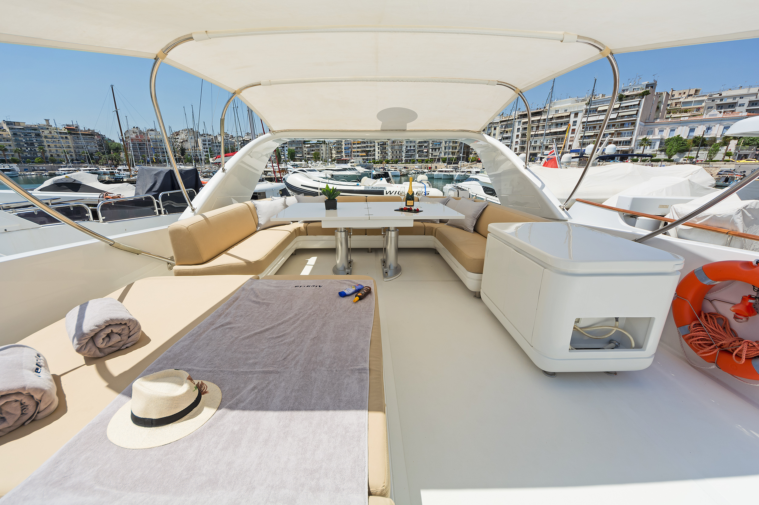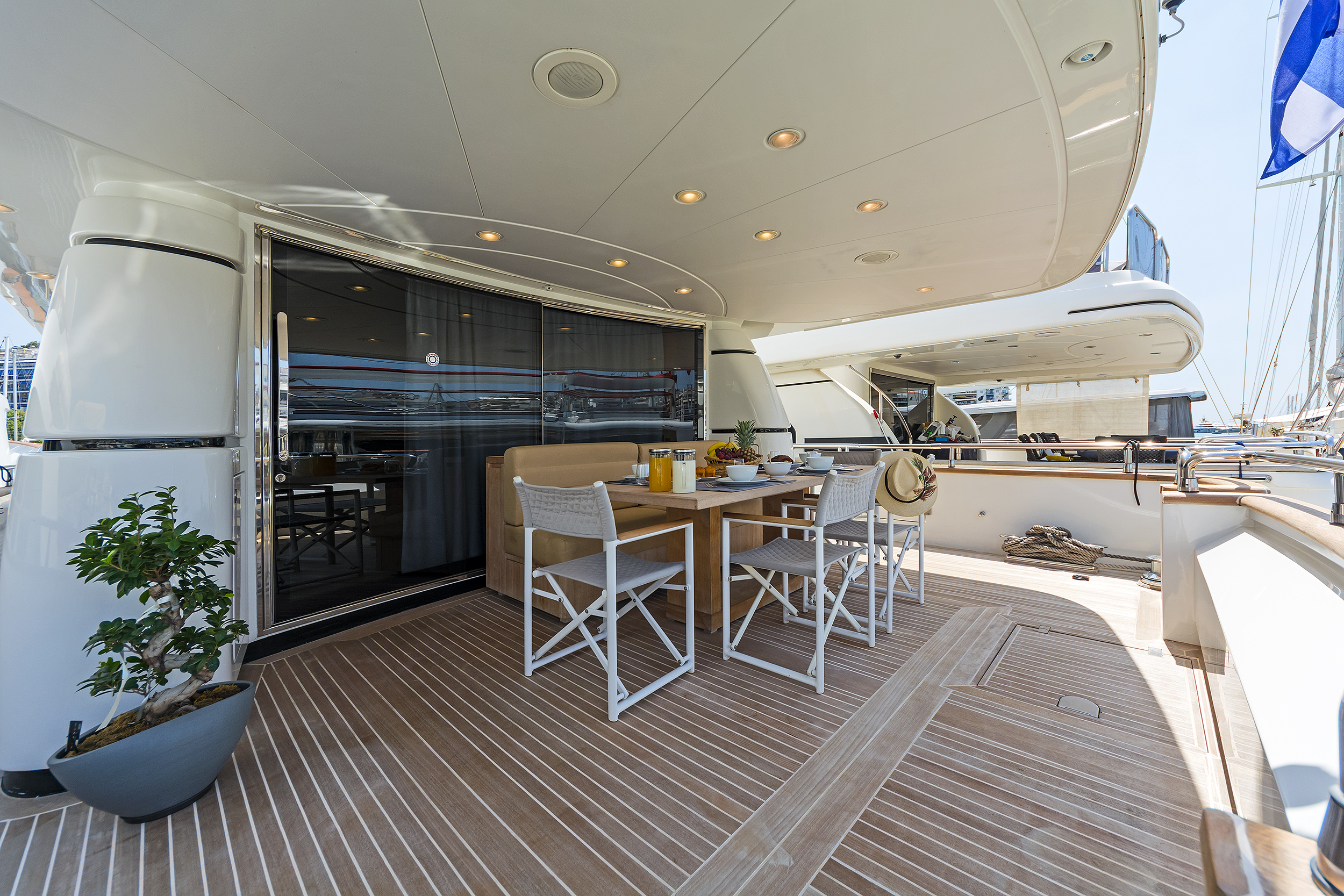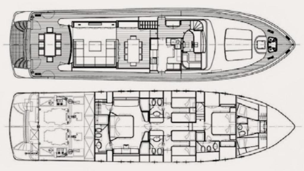 | Outside | Badeplattform, Flybridge, Grill, Jetski, Schnorchelausrüstung, Unterwasserbeleuchtung |