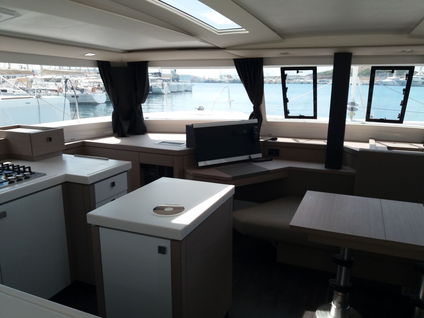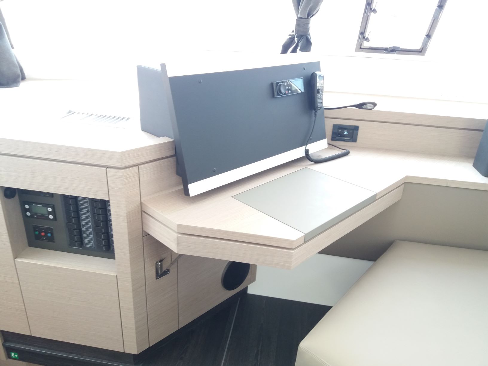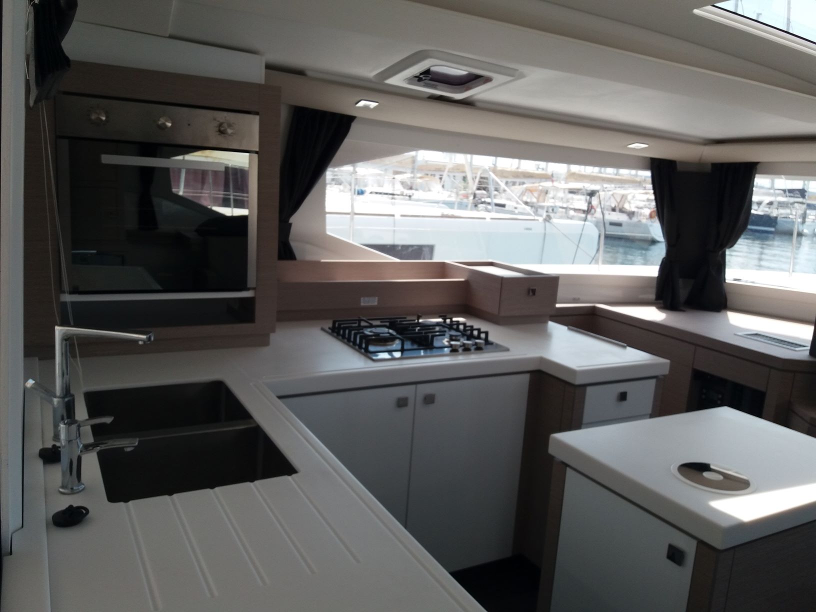 | Inside | Backofen, Gasherd, Generator, Inverter 12V/220V, Klimaanlage (ohne Landstrombedarf), Kühlschrank, Radio mit Bluetooth, Ventilatoren in Kabinen, Watermaker, WC (elektr.) |