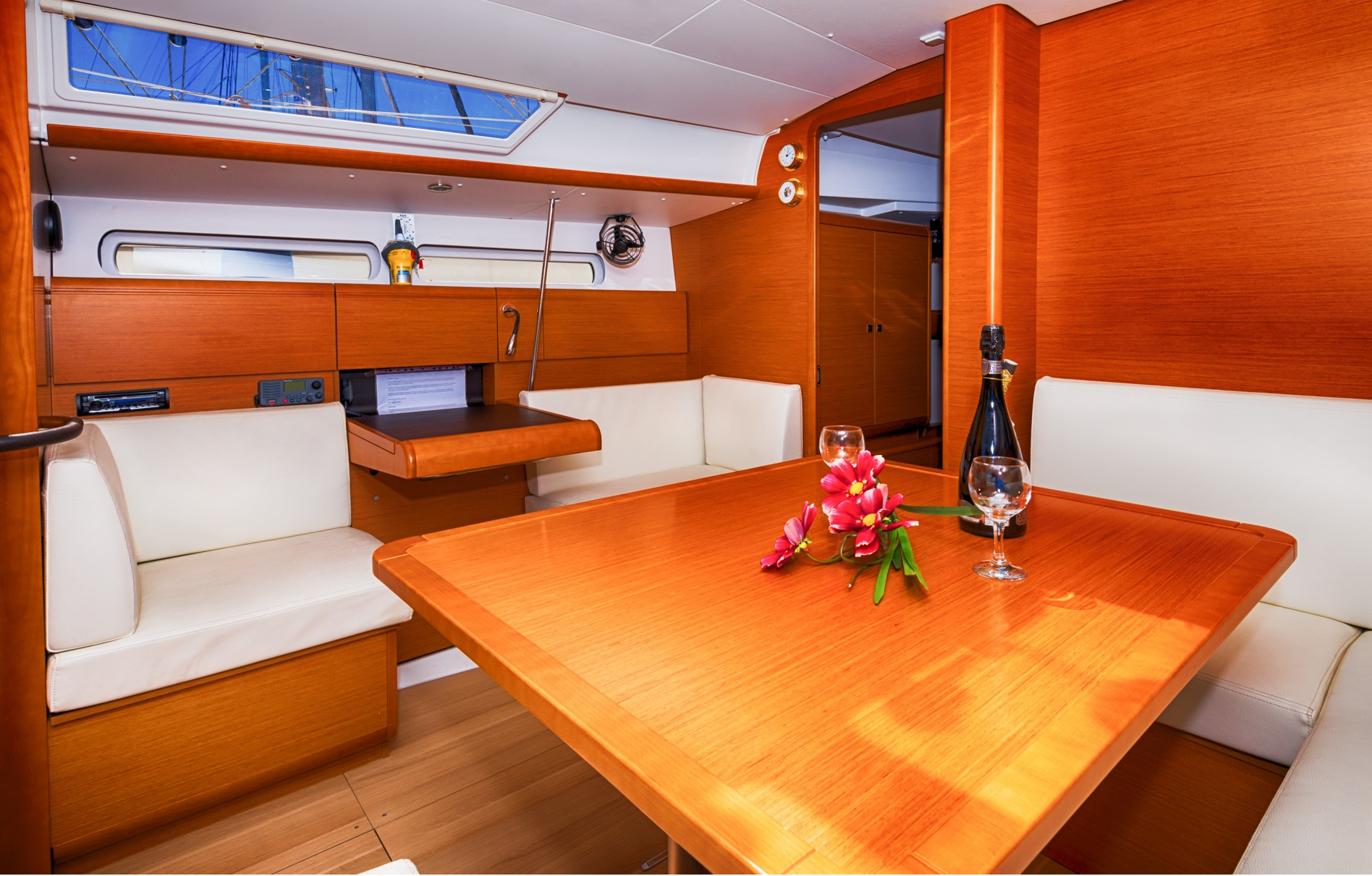 | Outside | Biminitop, Cockpitdusche, Cockpitpolster, Cockpittisch, elektr. Ankerwinsch, Sprayhood |