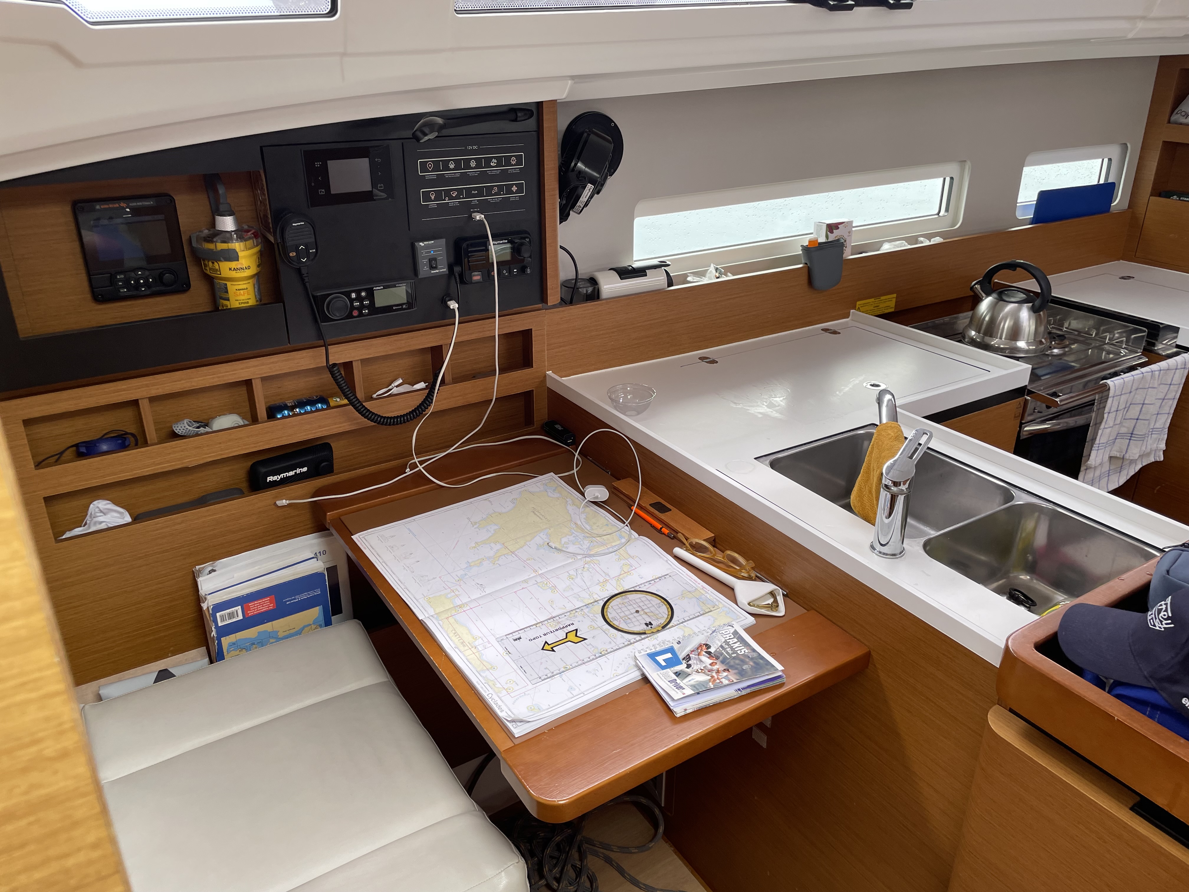 - Bremse der Ankerwinsch erst nach mehrmaligem öffnen und schließen halbwegs in Funktion; bei stärkerem Wind war ankern nur mit Hahnepot möglich; Ausrüstung dafür natürlich nicht vorhanden