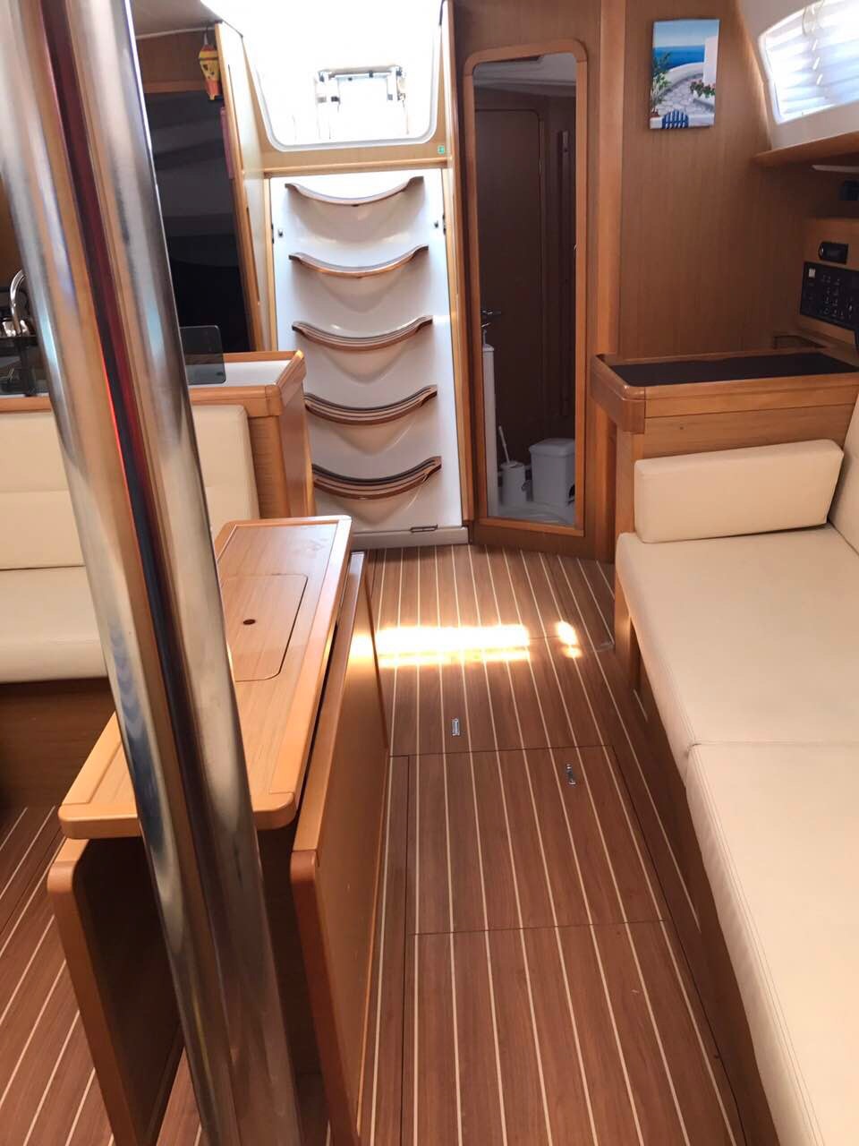 | Outside | 220 V-Landanschluss, Badeleiter, Biminitop, Cockpitdusche, Cockpitpolster, Cockpittisch, elektr. Ankerwinsch, elektr. Großwinsch, hydraul. Gangway, Solaranlage, Sprayhood, Windex |