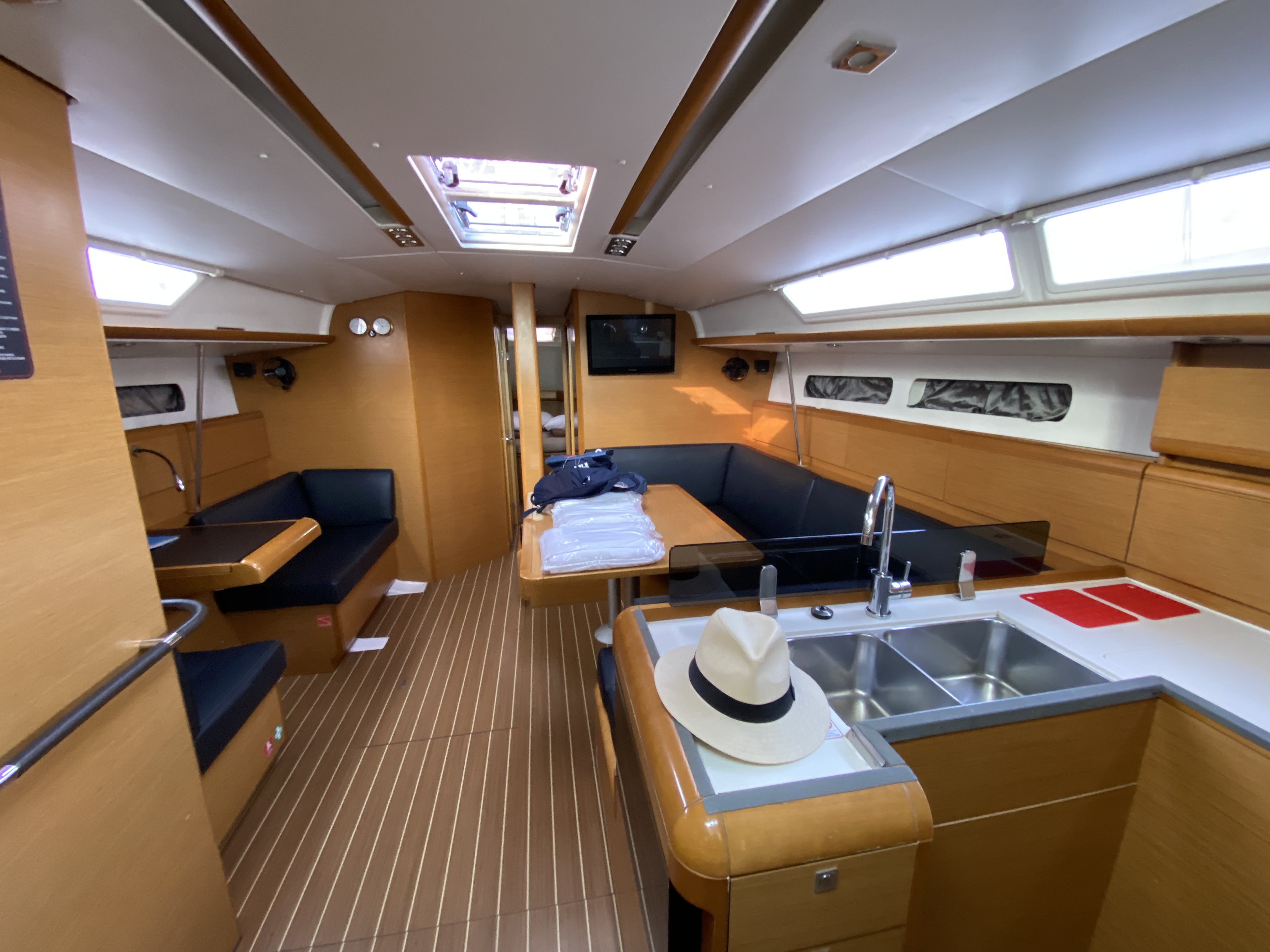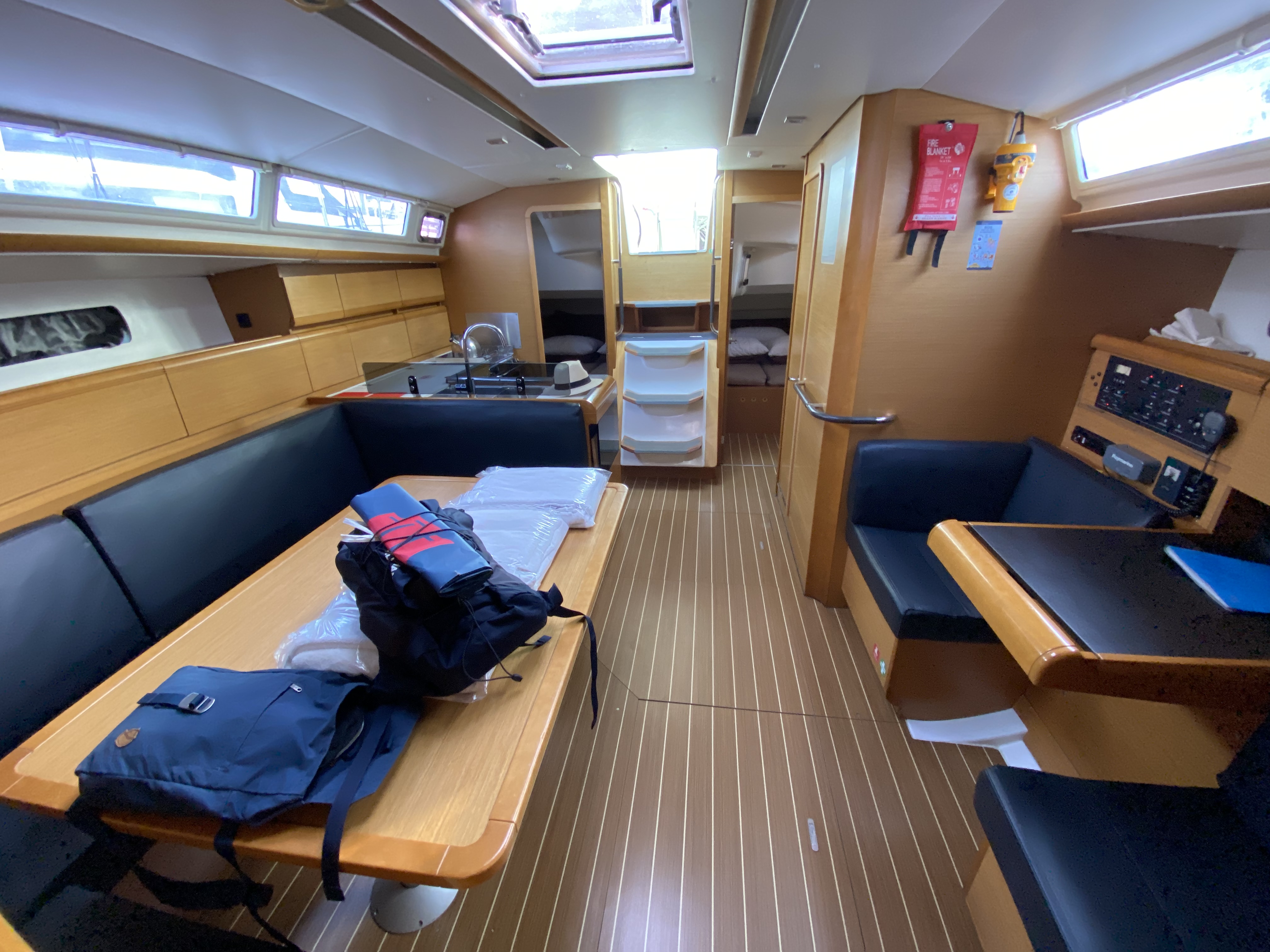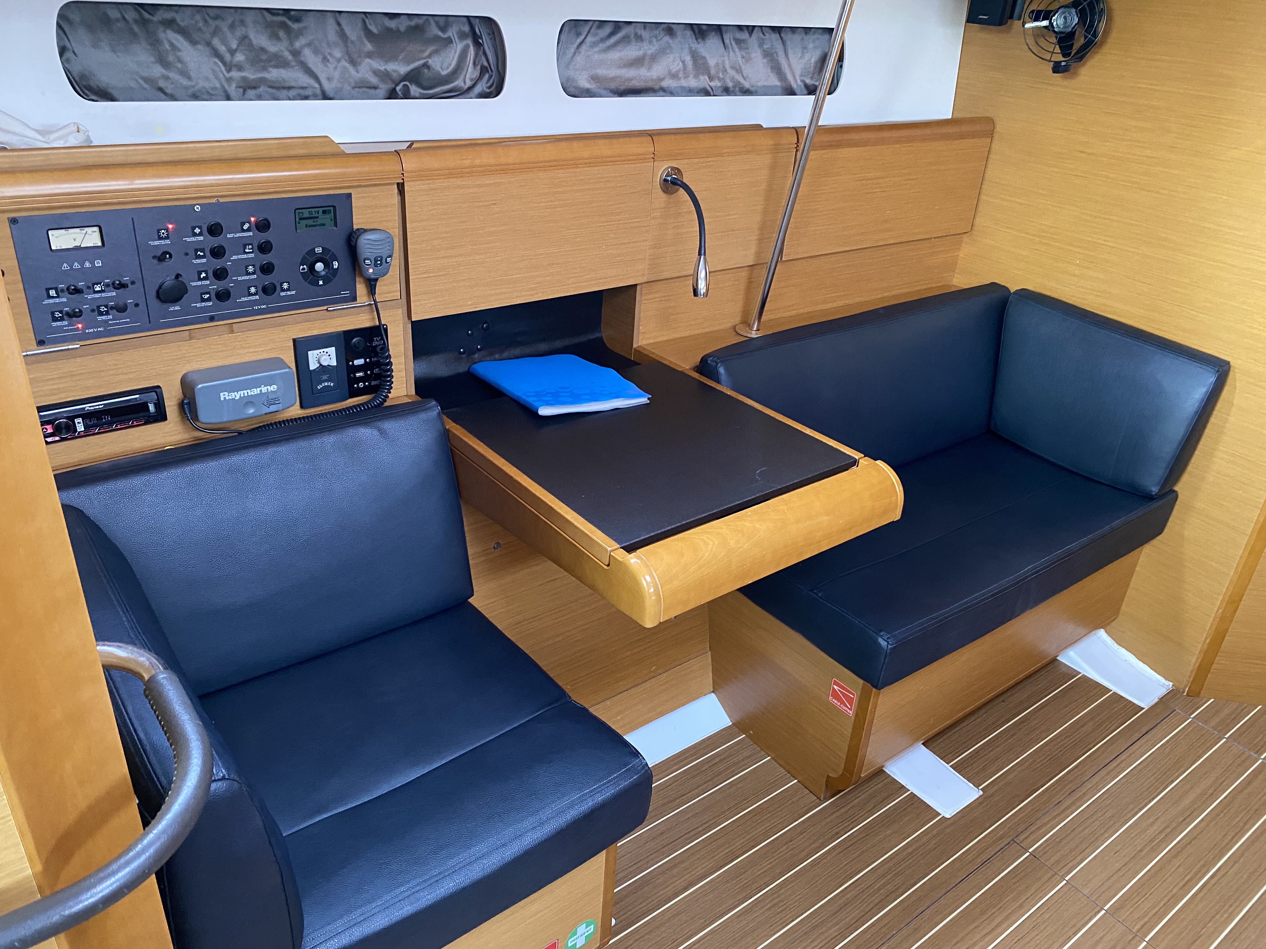 | Outside | Biminitop, Cockpitlautsprecher, elektr. Ankerwinsch, Solaranlage, Sprayhood |
