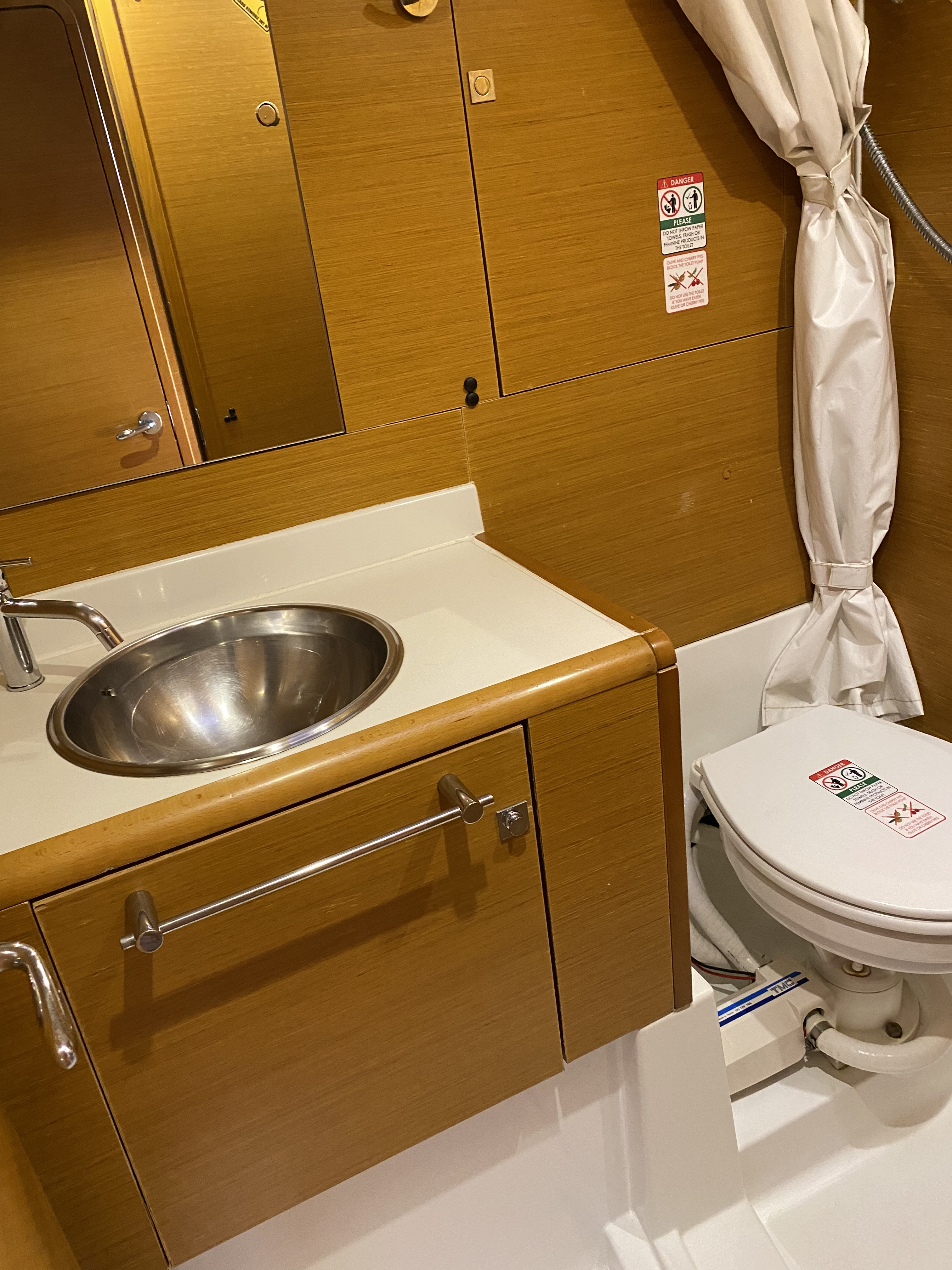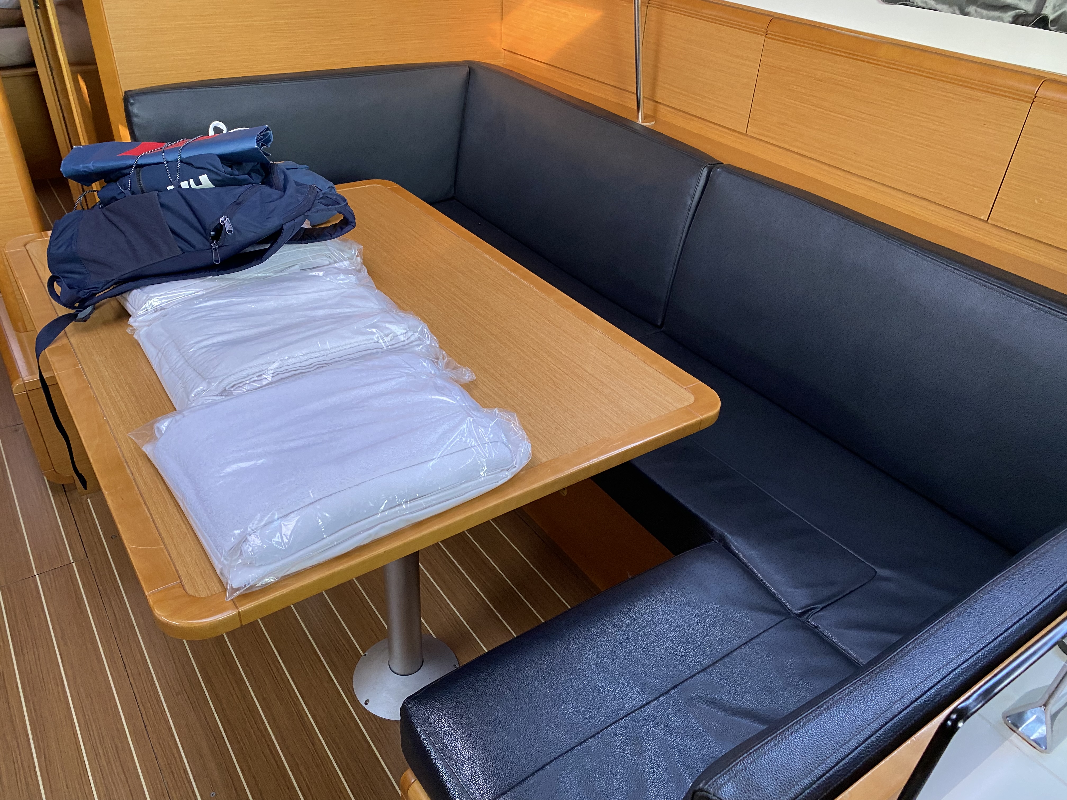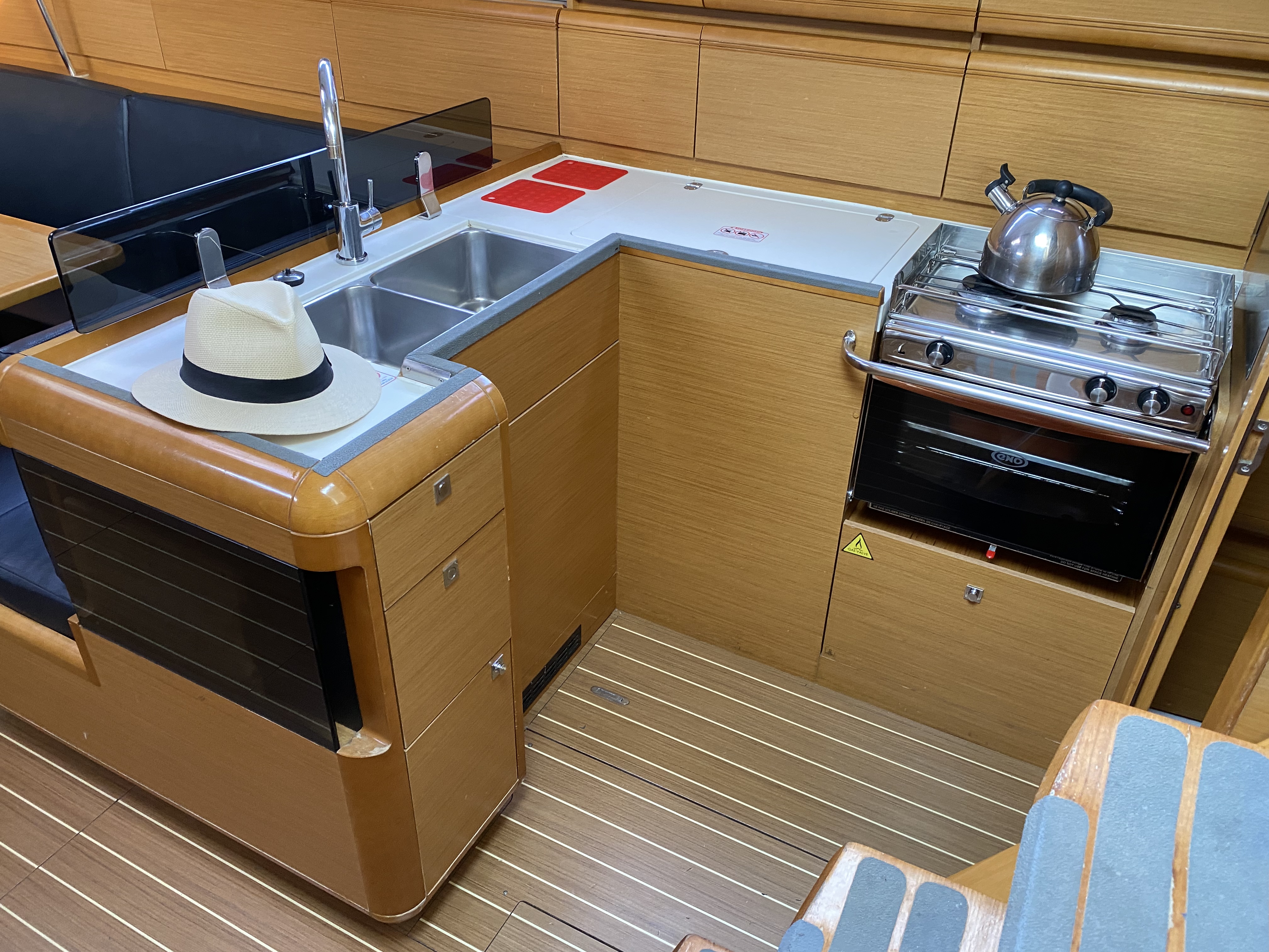 | Outside | Biminitop, Cockpitlautsprecher, elektr. Ankerwinsch, Solaranlage, Sprayhood |