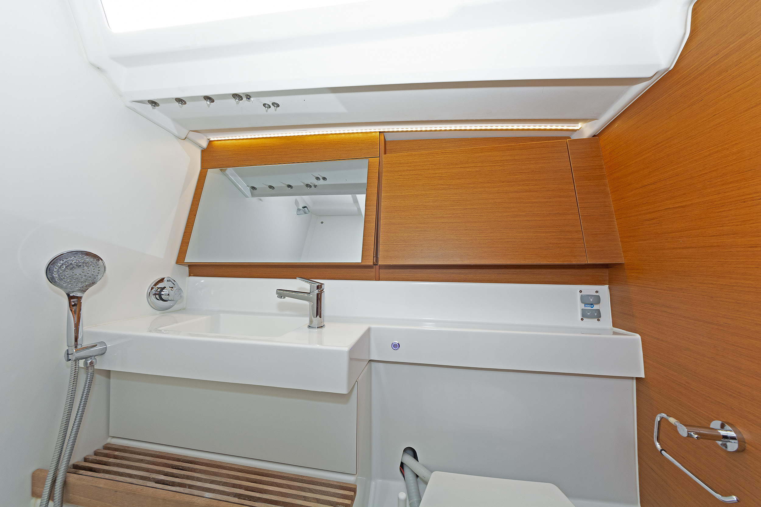 | Outside | Biminitop, Bootshaken, Cockpitdusche, Cockpitlautsprecher, Cockpitpolster, elektr. Winsch, Gangway, Solaranlage, Sprayhood, Teakdeck, Winschen |