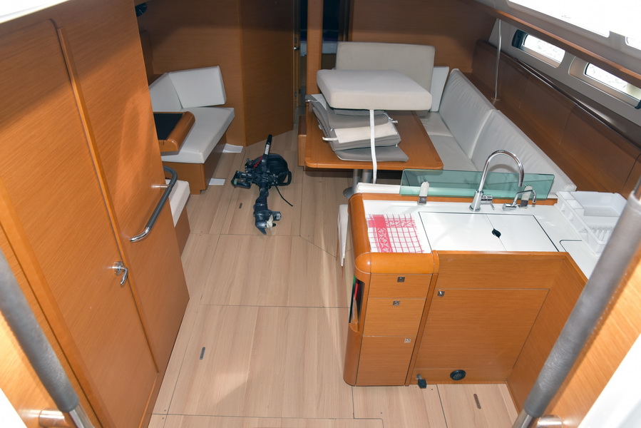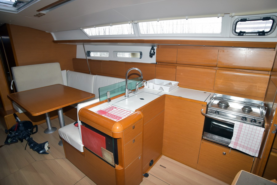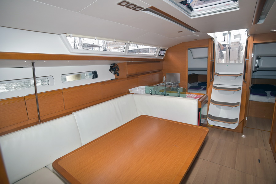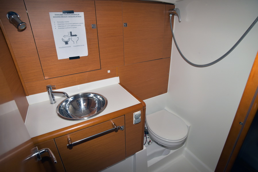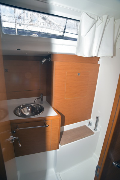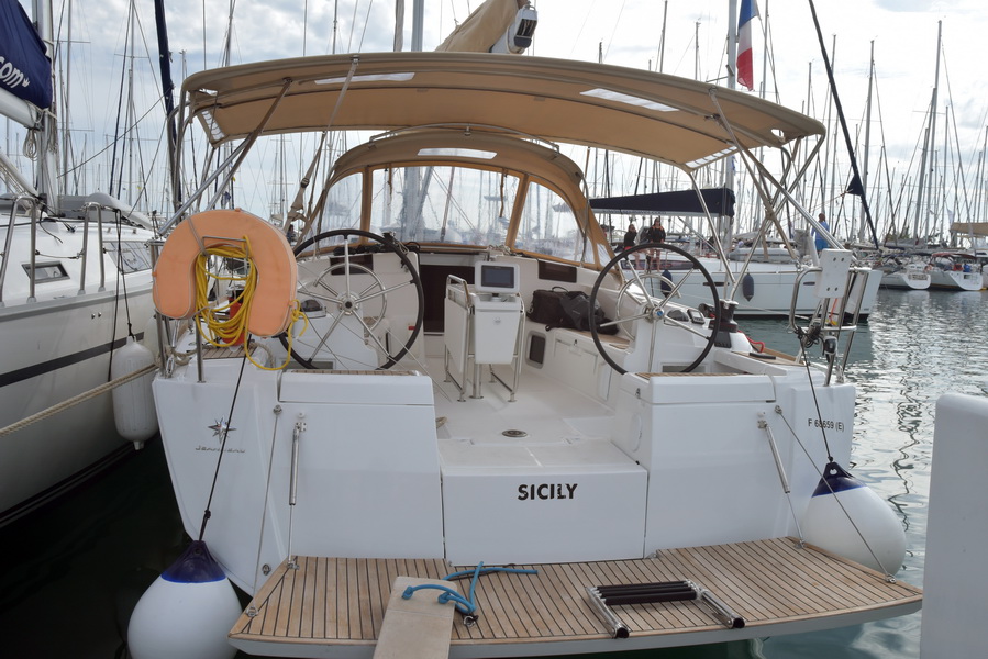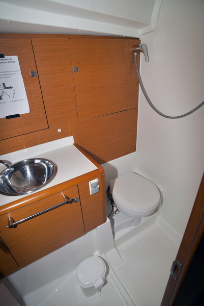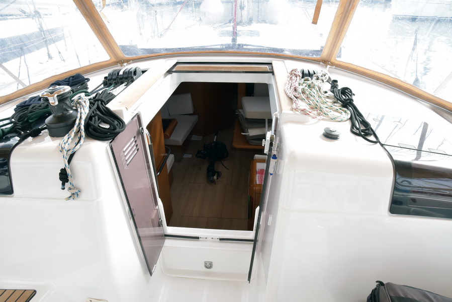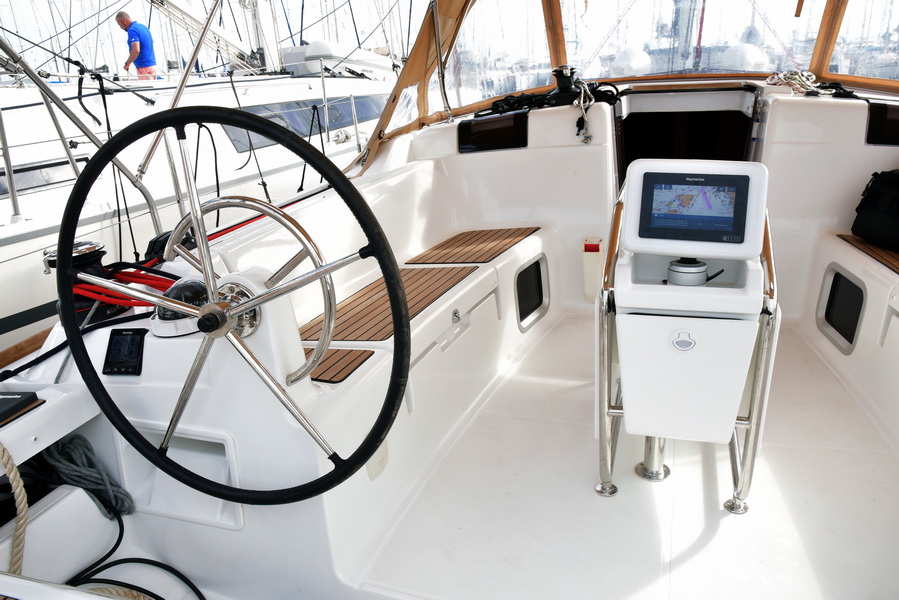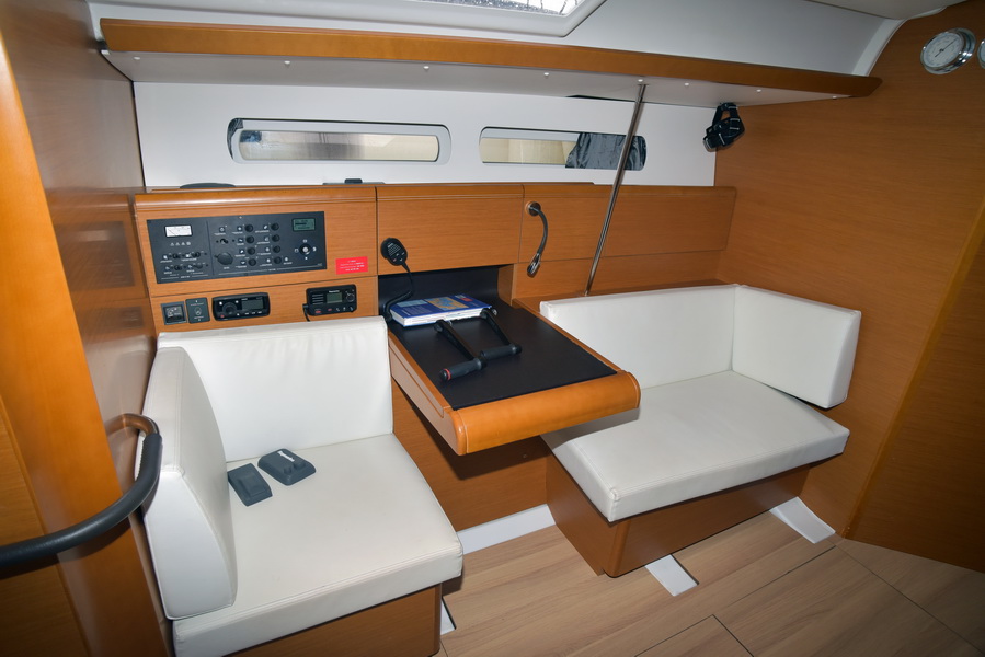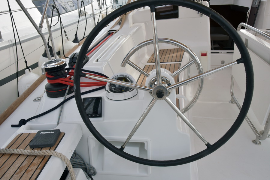 | Outside | 220 V-Landanschluss, Biminitop, Cockpitdusche warm/kalt, Cockpitlautsprecher, Cockpitpolster, Cockpittisch, elektr. Ankerwinsch, Selbstholende Winschen, Sprayhood |